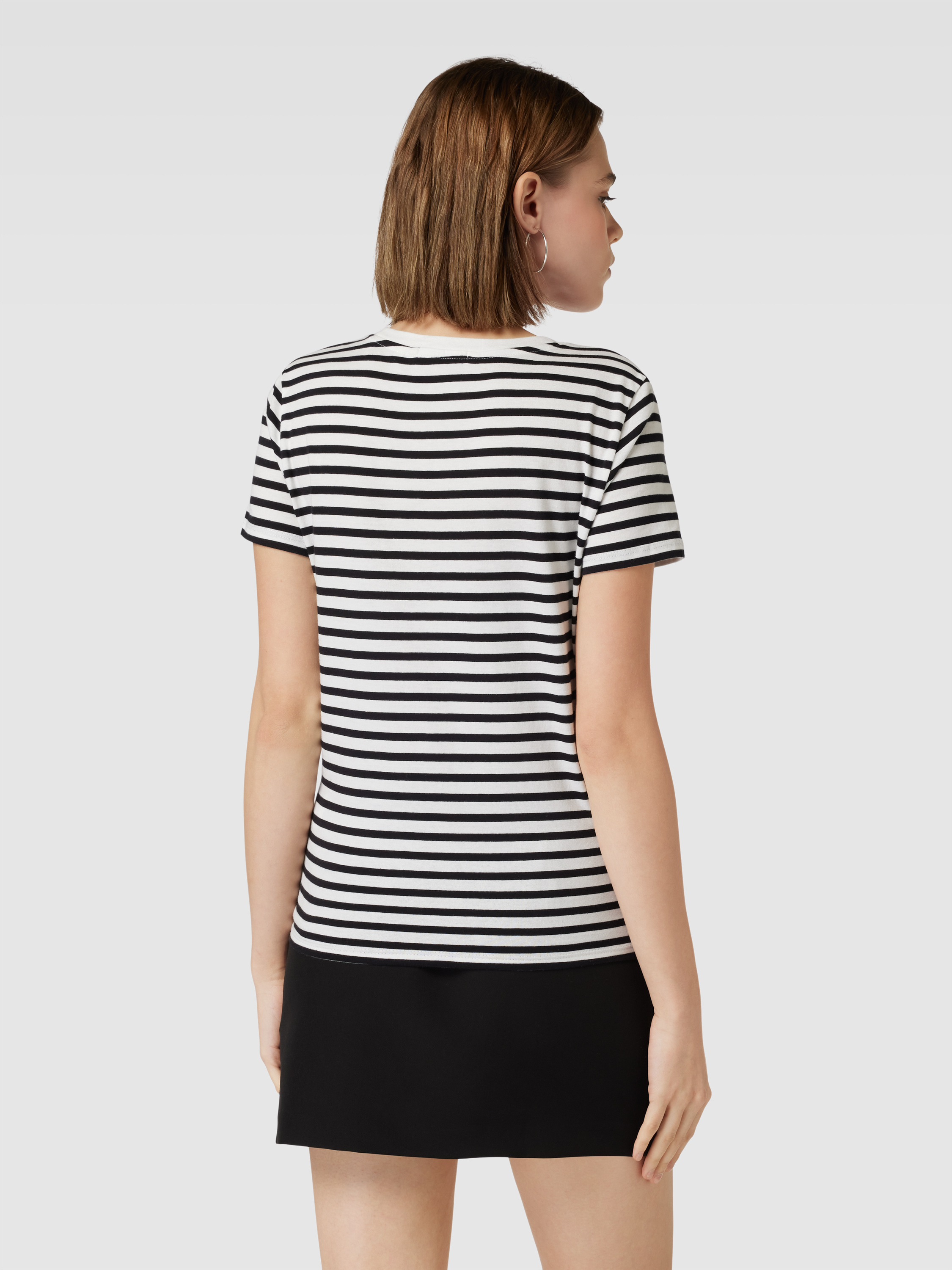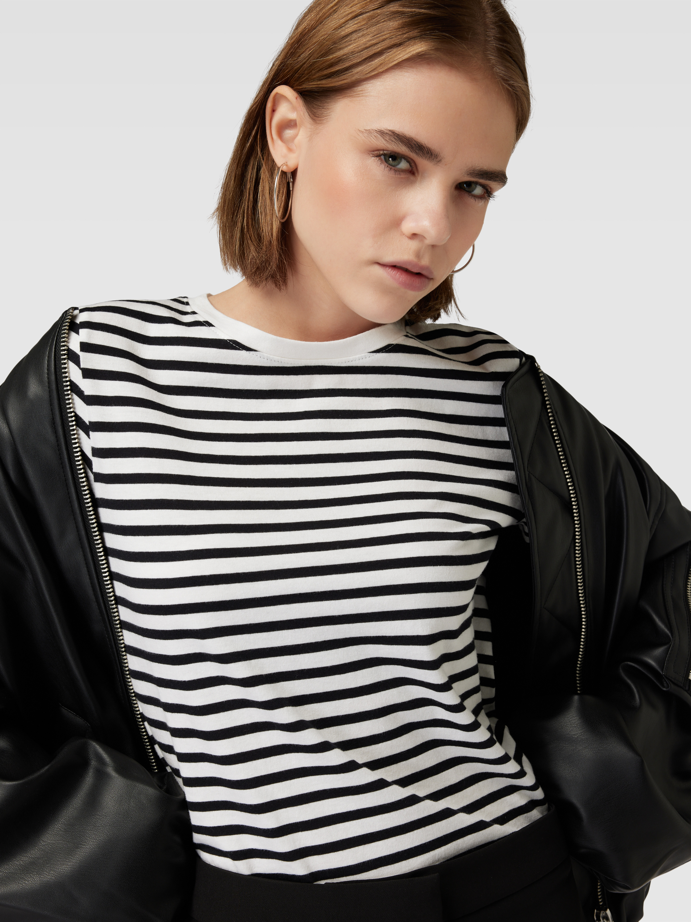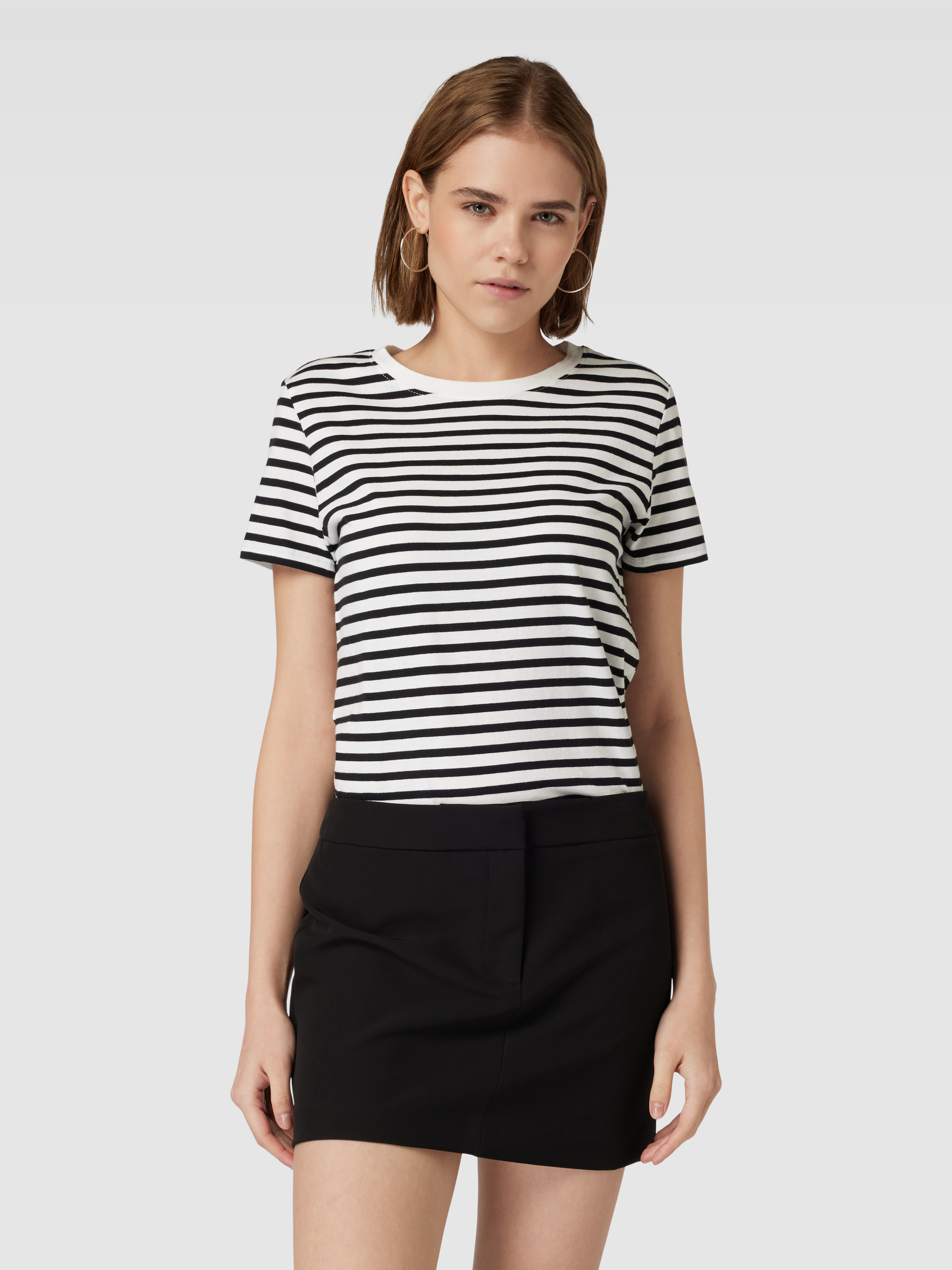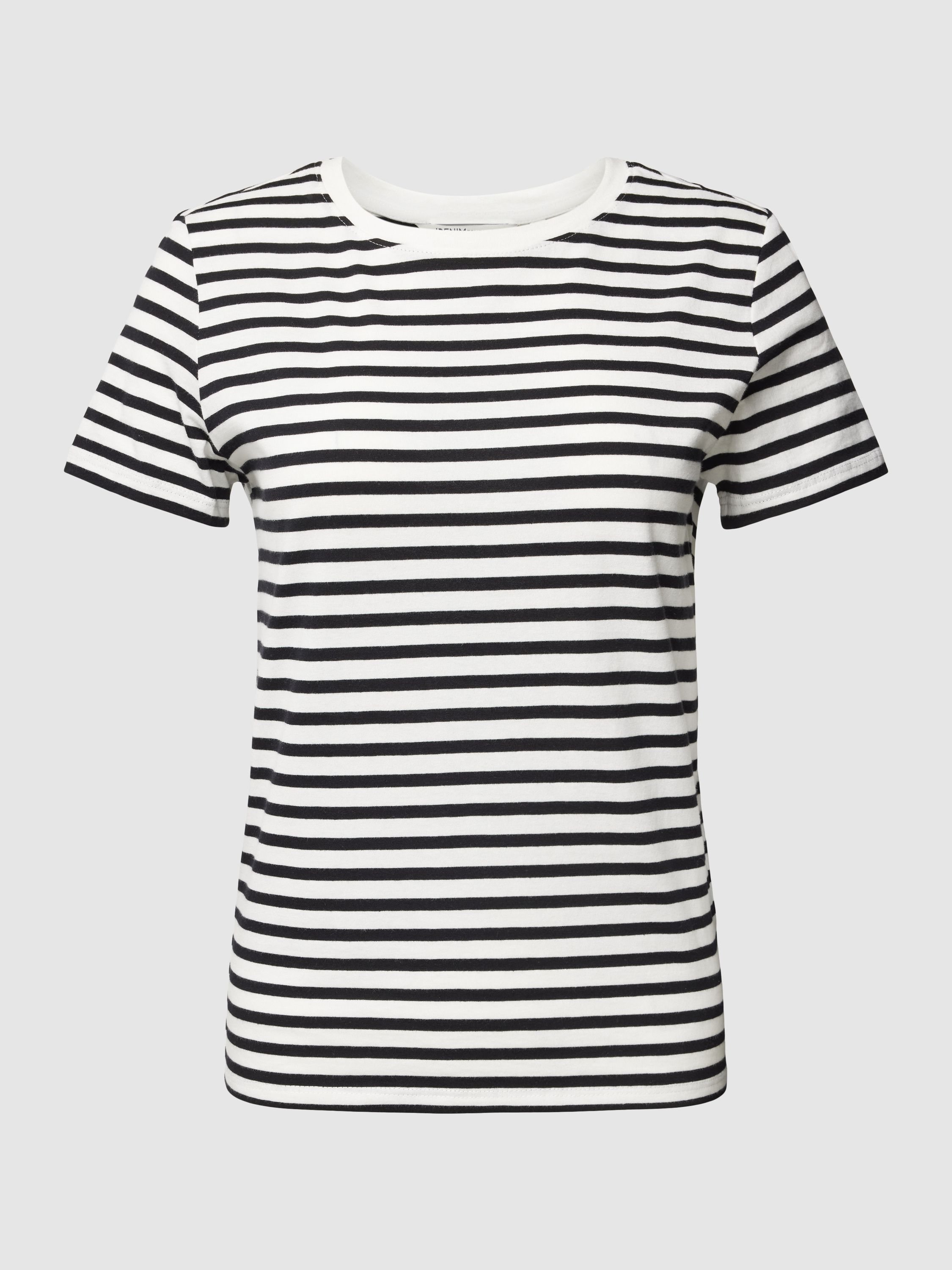 Das Damen T-Shirt von TOM TAILOR Denim kombiniert einen geraden Schnitt mit einem klassischen Rundhalsausschnitt, der sich angenehm trägt. Gefertigt aus reiner Baumwolle, punktet es mit einem zeitlosen Streifenmuster, das vielseitige Kombinationsmöglichkeiten eröffnet und sich für unterschiedlichste Anlässe eignet.