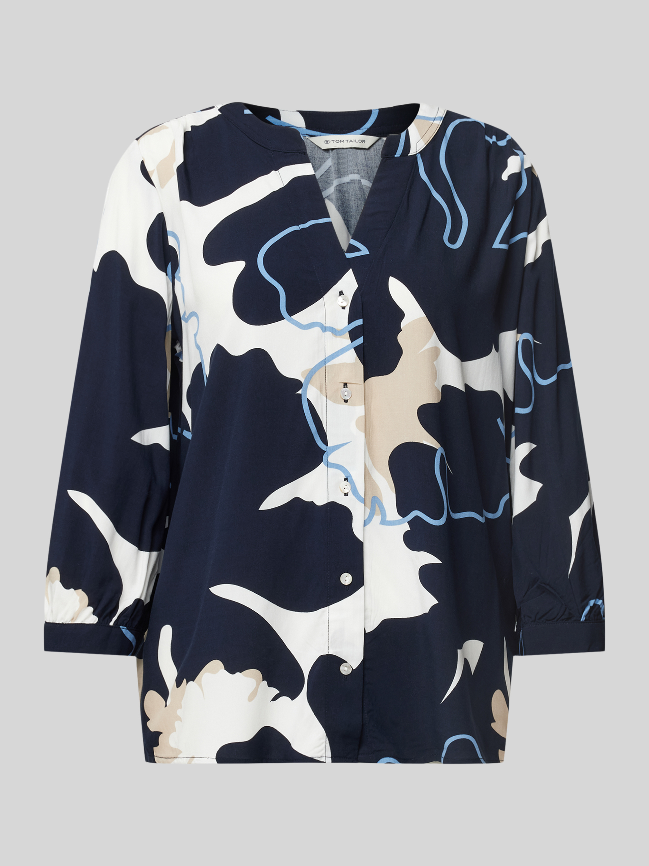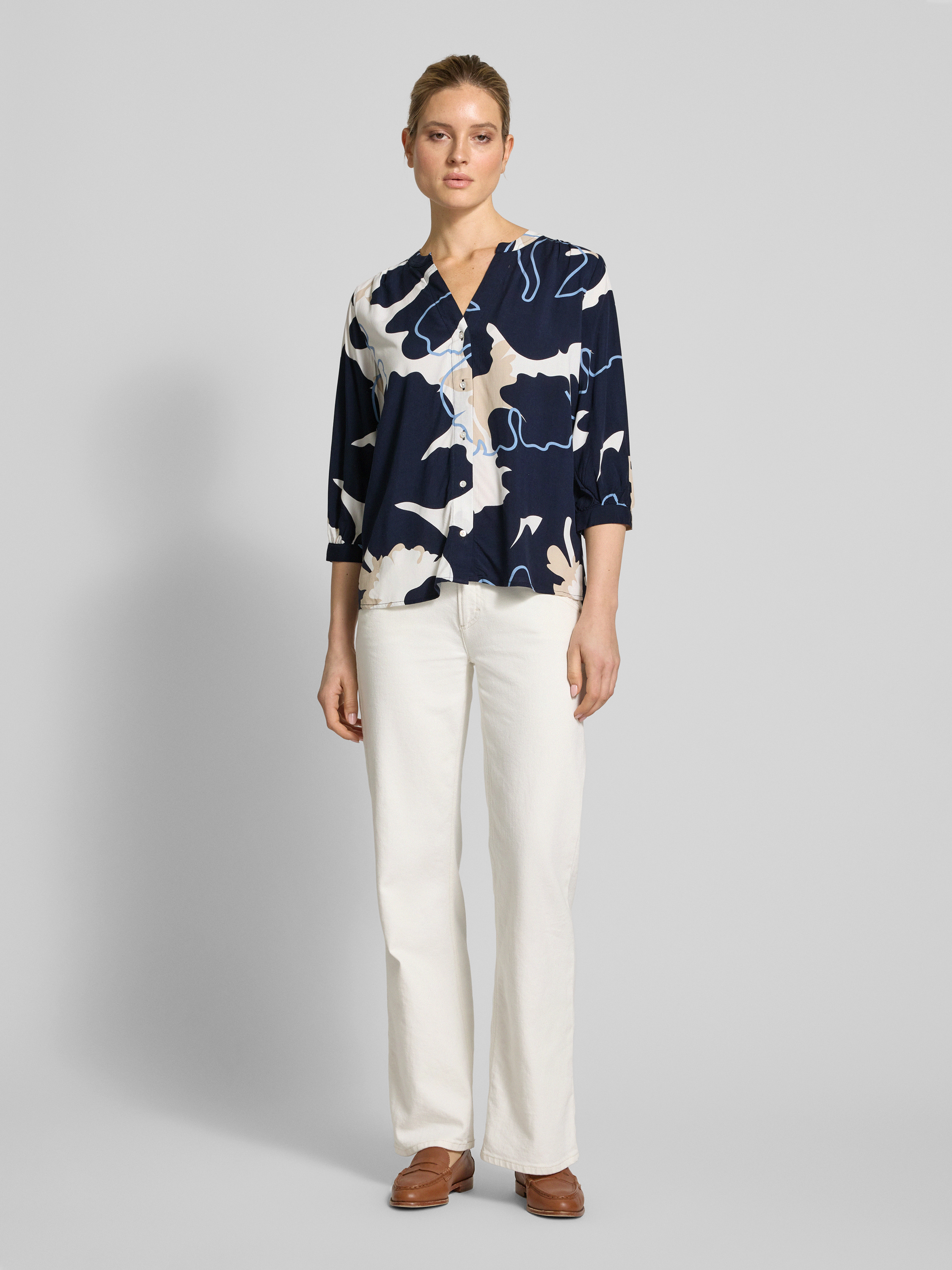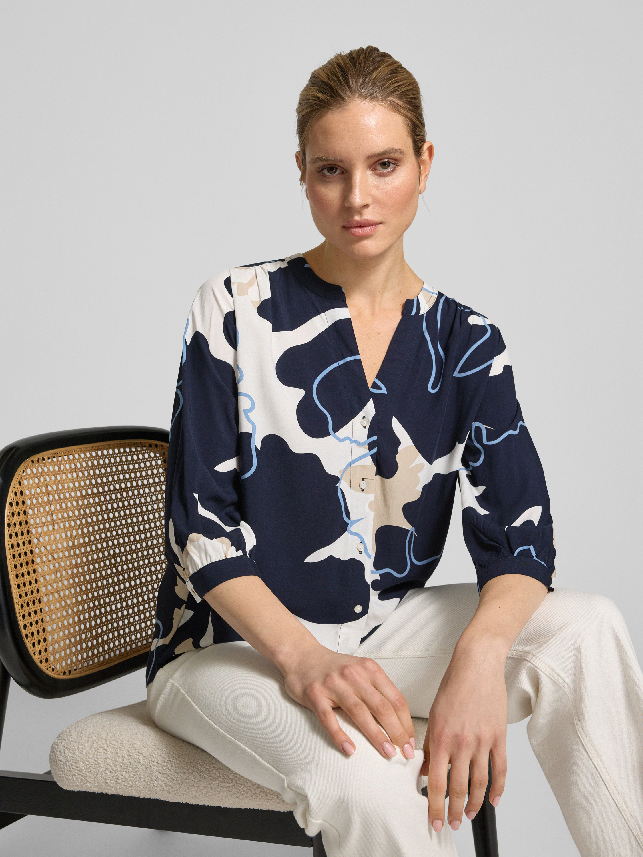 Tom TailorLoose Fit Kurzarmbluse aus reiner Viskose mit Allover-Muster in offwhite