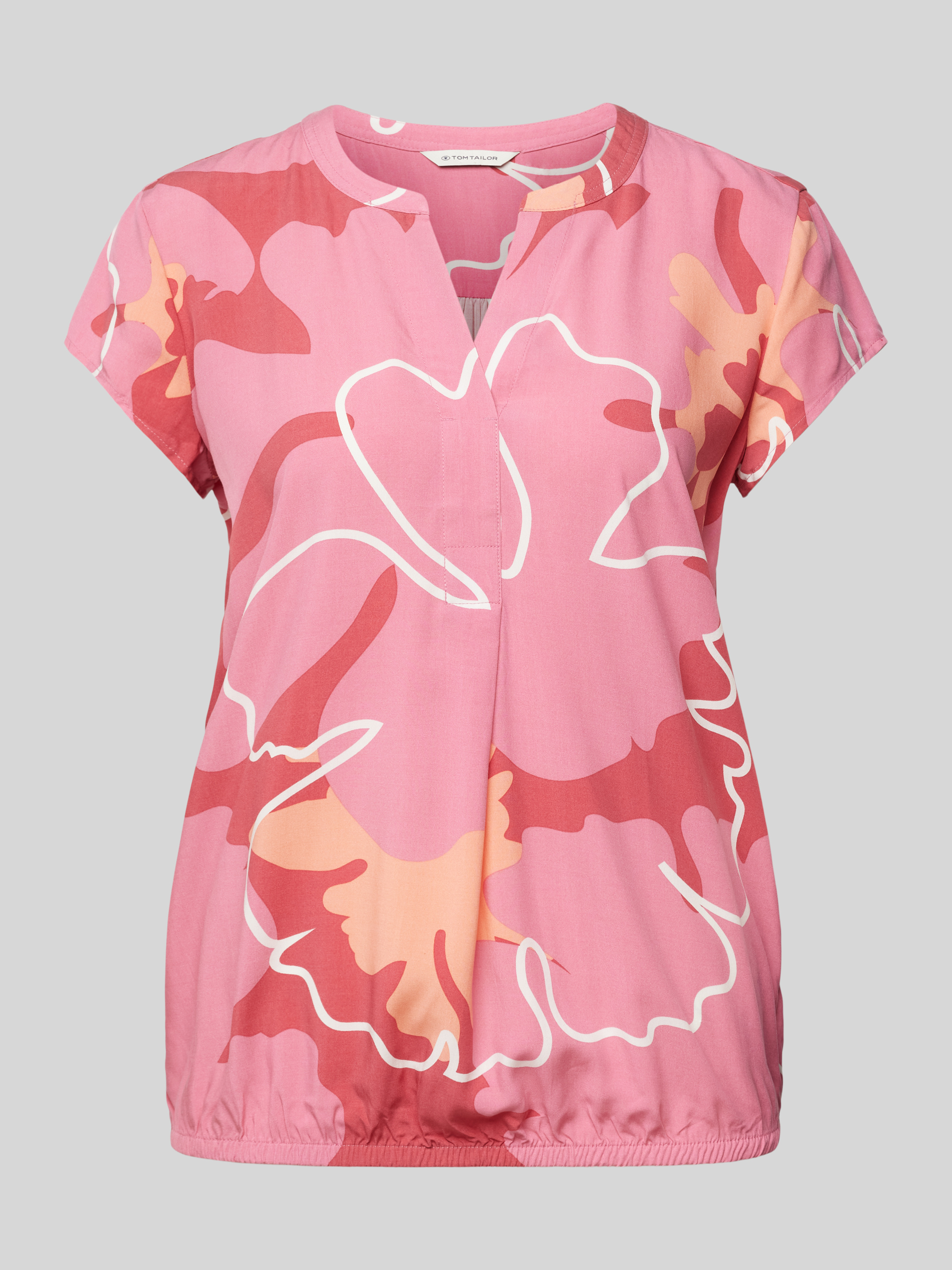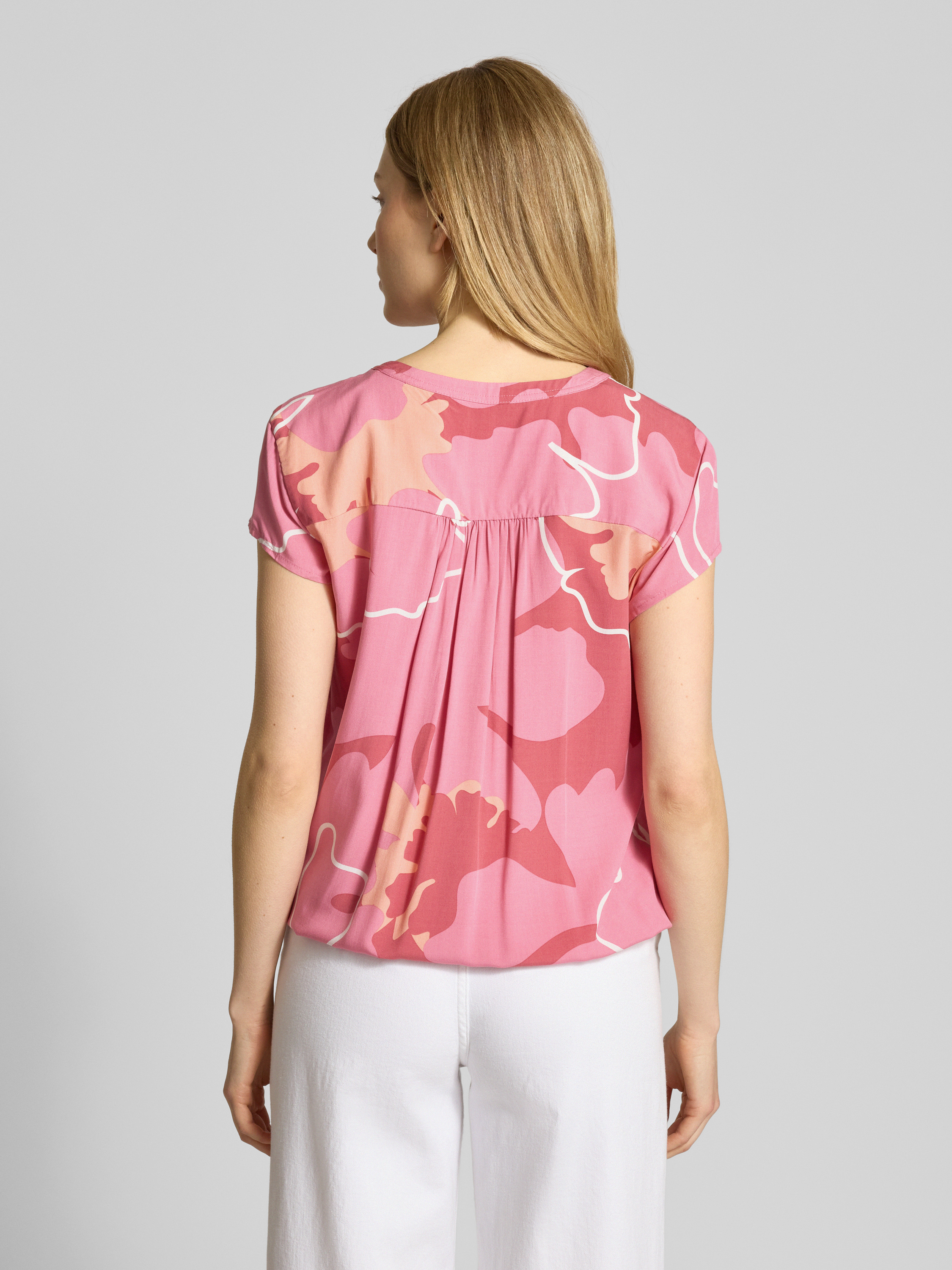 Tom TailorLoose Fit Kurzarmbluse aus reiner Viskose mit Tunikakragen in pink