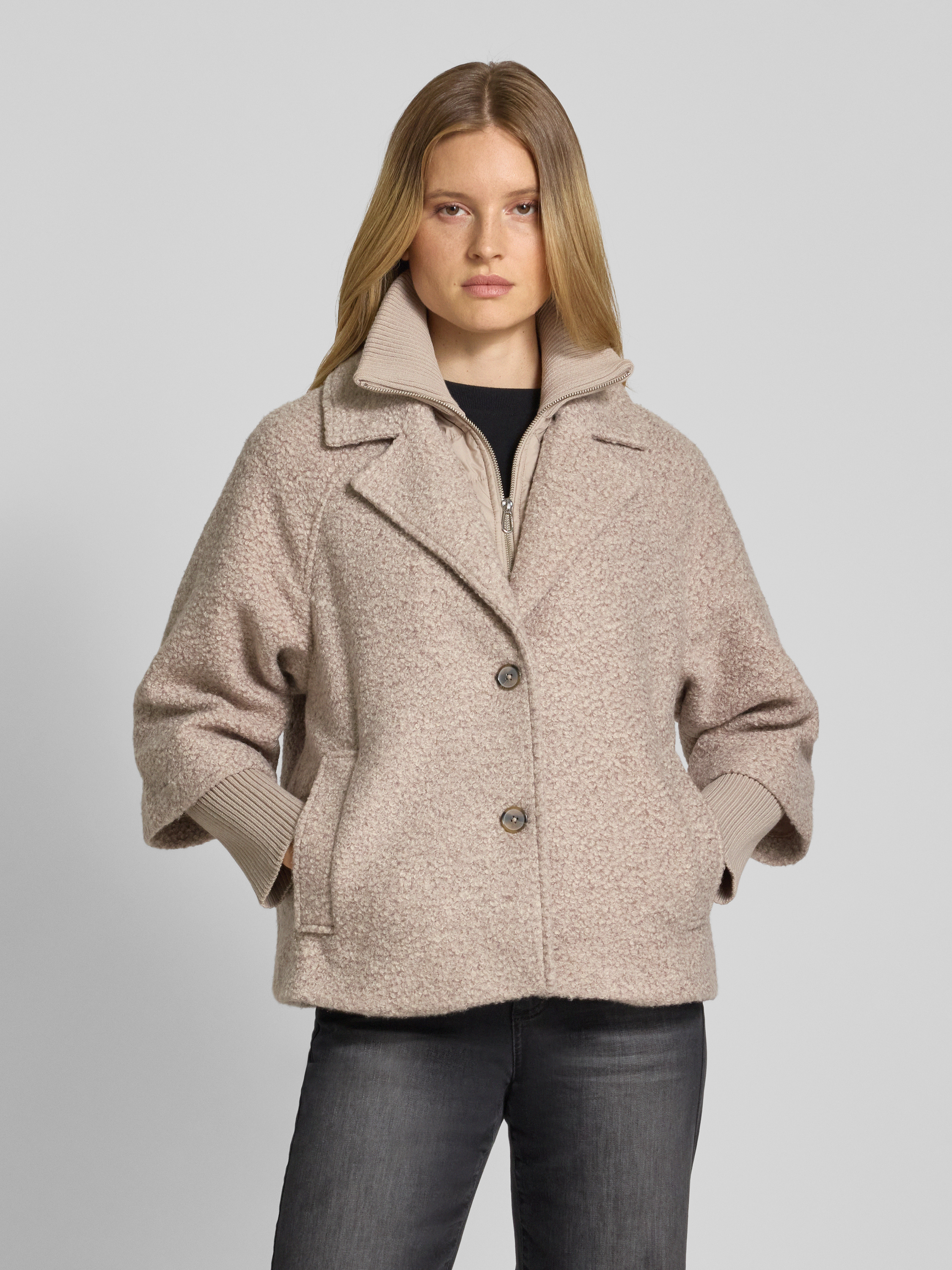 Die Damen Regular Fit Cape Jacke von Tom Tailor zeigt sich in einer unifarbenen Optik und fällt durch den Stehkragen angenehm auf. Durch den Cape-Look und die weiche Bouclé-Materialverarbeitung entsteht ein bequemer Schnitt, der Bewegungsfreiheit ermöglicht. Praktische Details wie lange Ärmel und seitliche Eingrifftaschen machen das Modell vielseitig einsetzbar.