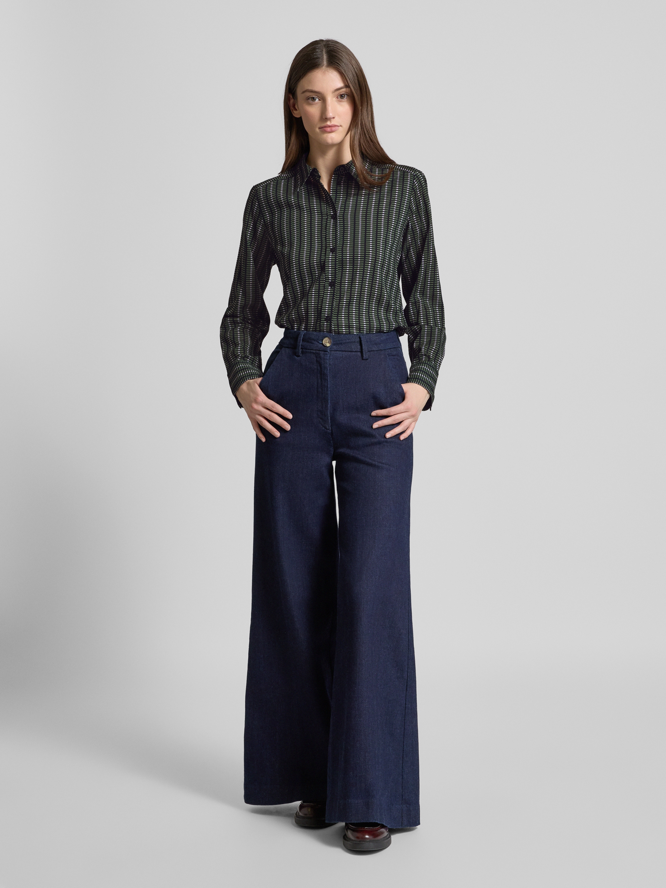 Die Damen Hemdbluse von Tom Tailor im Regular-Fit zeigt ein grafisches Allover-Muster und wirkt durch die lockere Schnittführung angenehm unkompliziert. Der Baumwoll-Modal-Mix sorgt für ein weiches Tragegefühl, während die Cacharelfalte am Rücken Bewegungsfreiheit ermöglicht. Durch die Turn-up-Option der Ärmel lässt sich der Look flexibel anpassen.