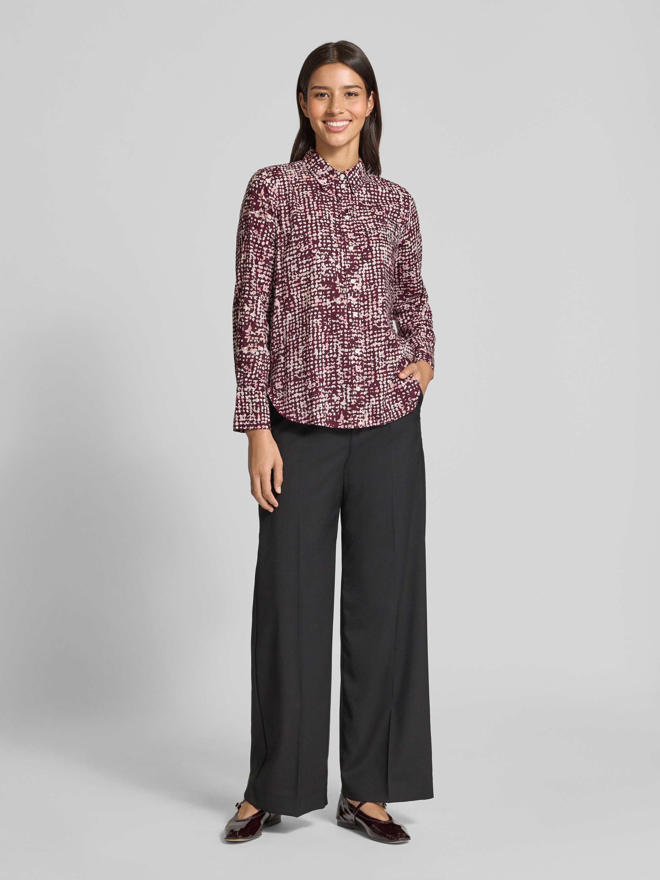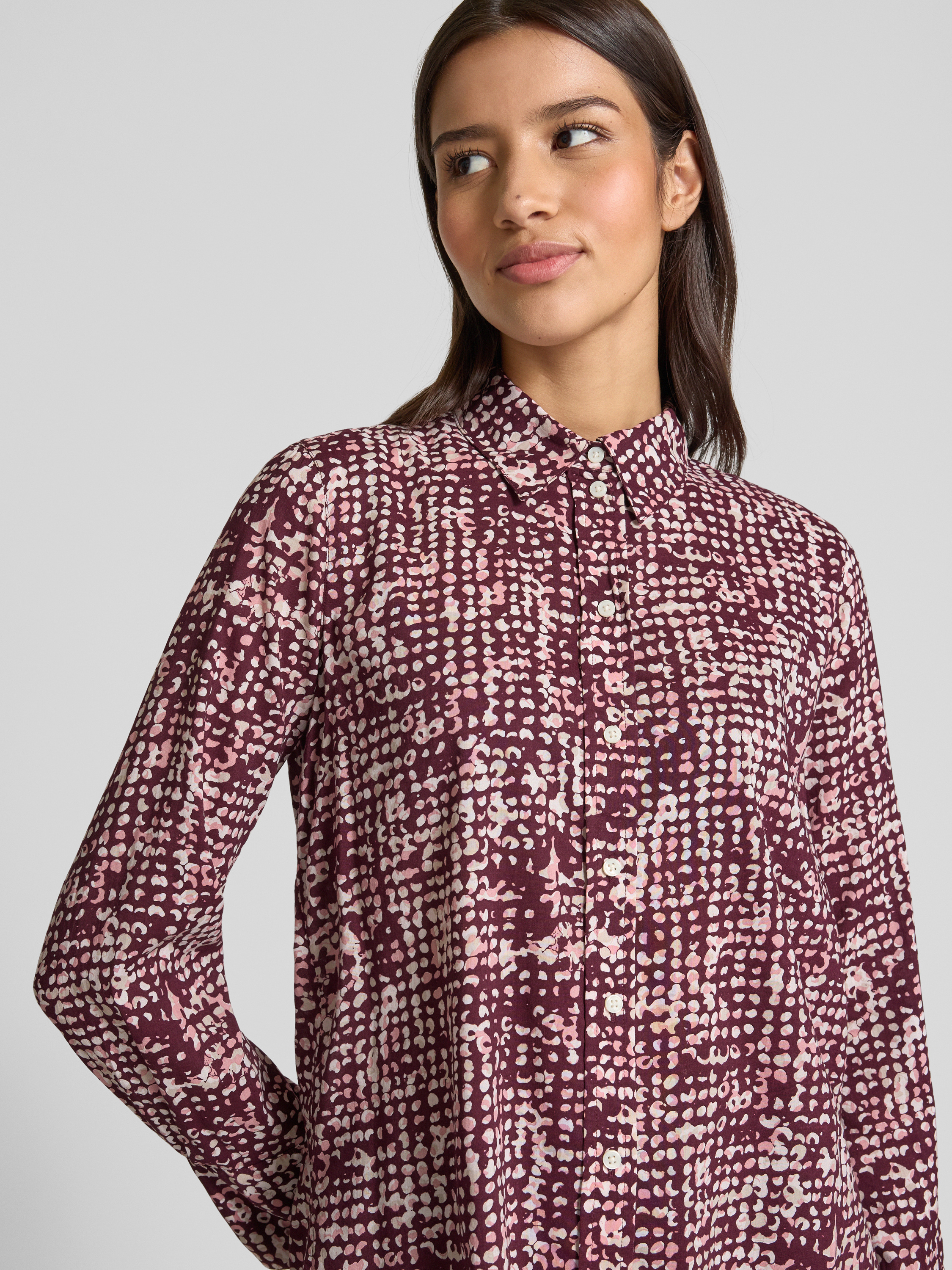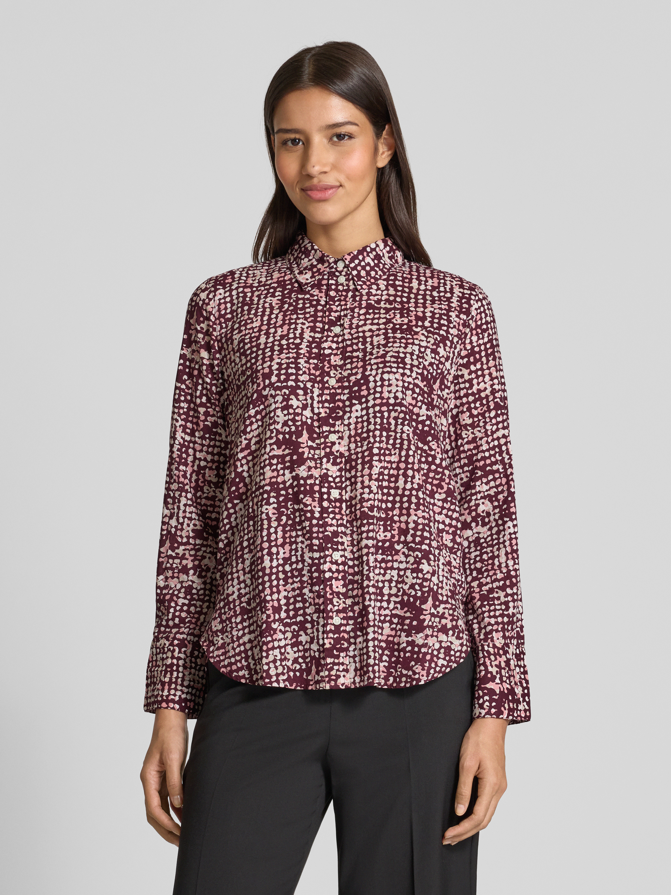Tom TailorRegular Fit Hemdbluse aus Baumwoll-Modal-Mix in bordeaux