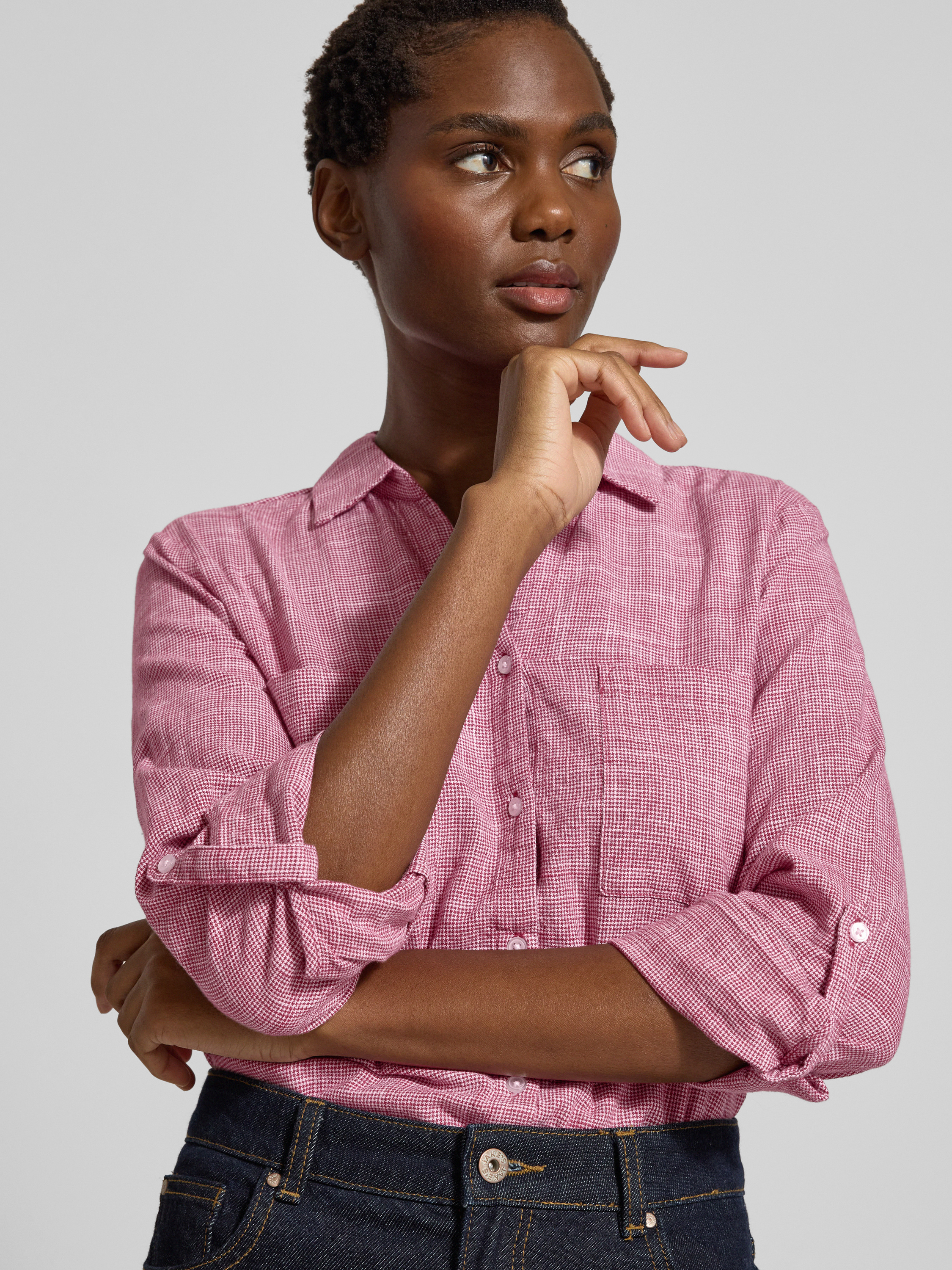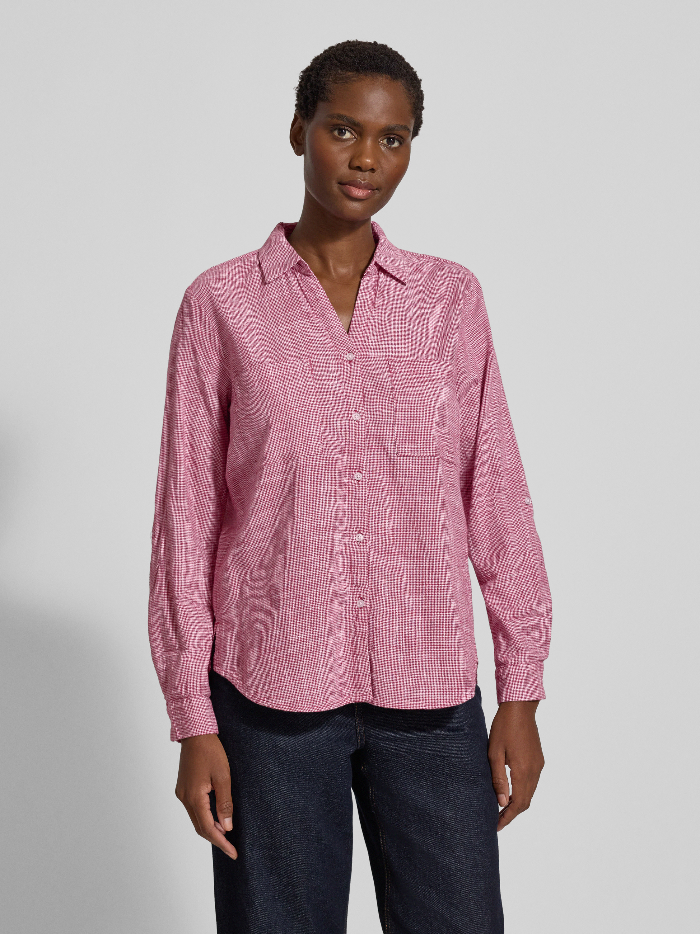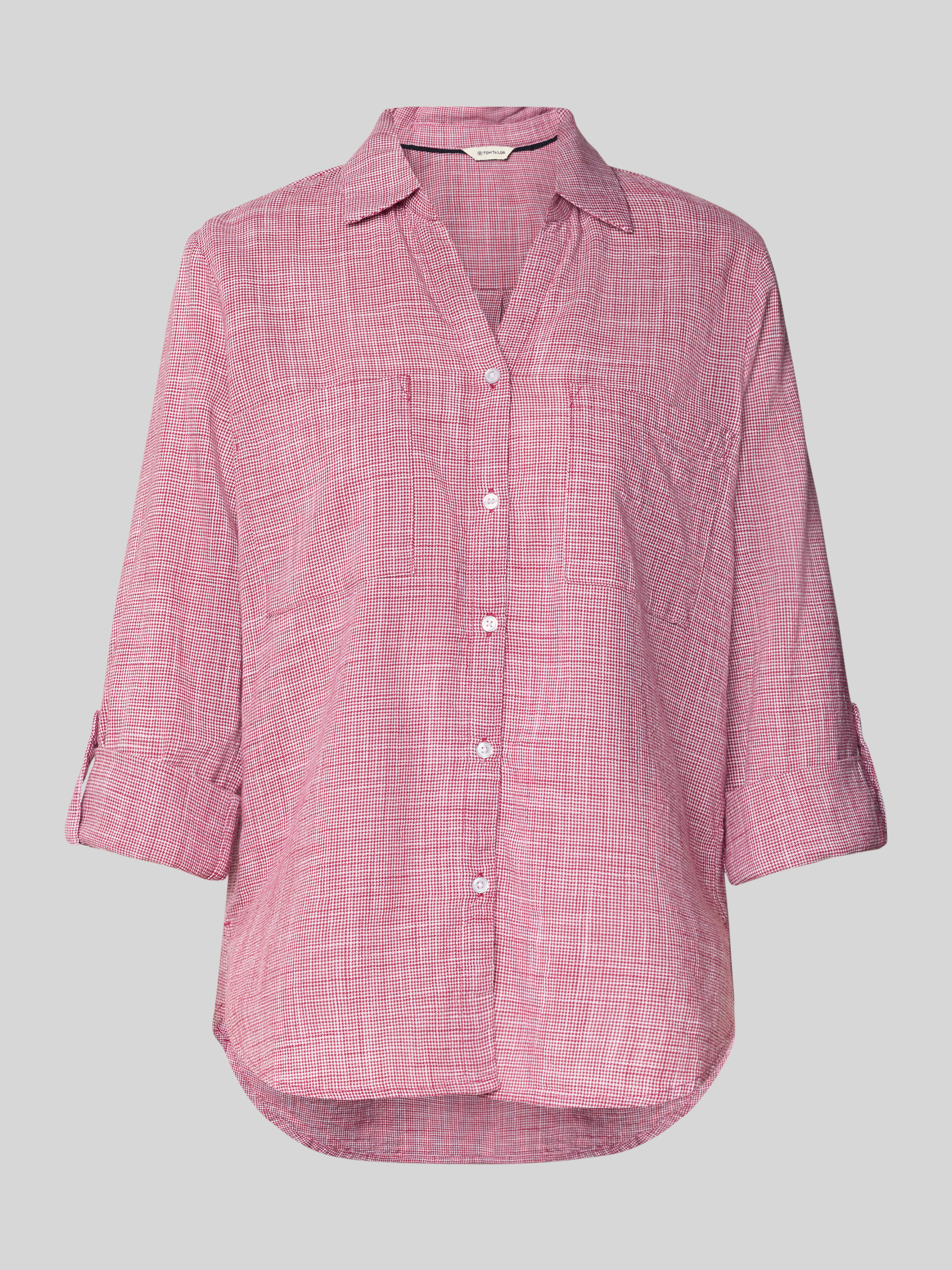 Die Damen Hemdbluse von Tom Tailor im Regular-Fit verbindet einen klassischen Kentkragen mit einem auffälligen Hahnentritt und Allover-Muster. Durch das längere Rückenteil fällt sie angenehm locker und sorgt für Bewegungsfreiheit. Reine Baumwolle macht das Modell atmungsaktiv, sodass man sich rundum wohlfühlen kann.