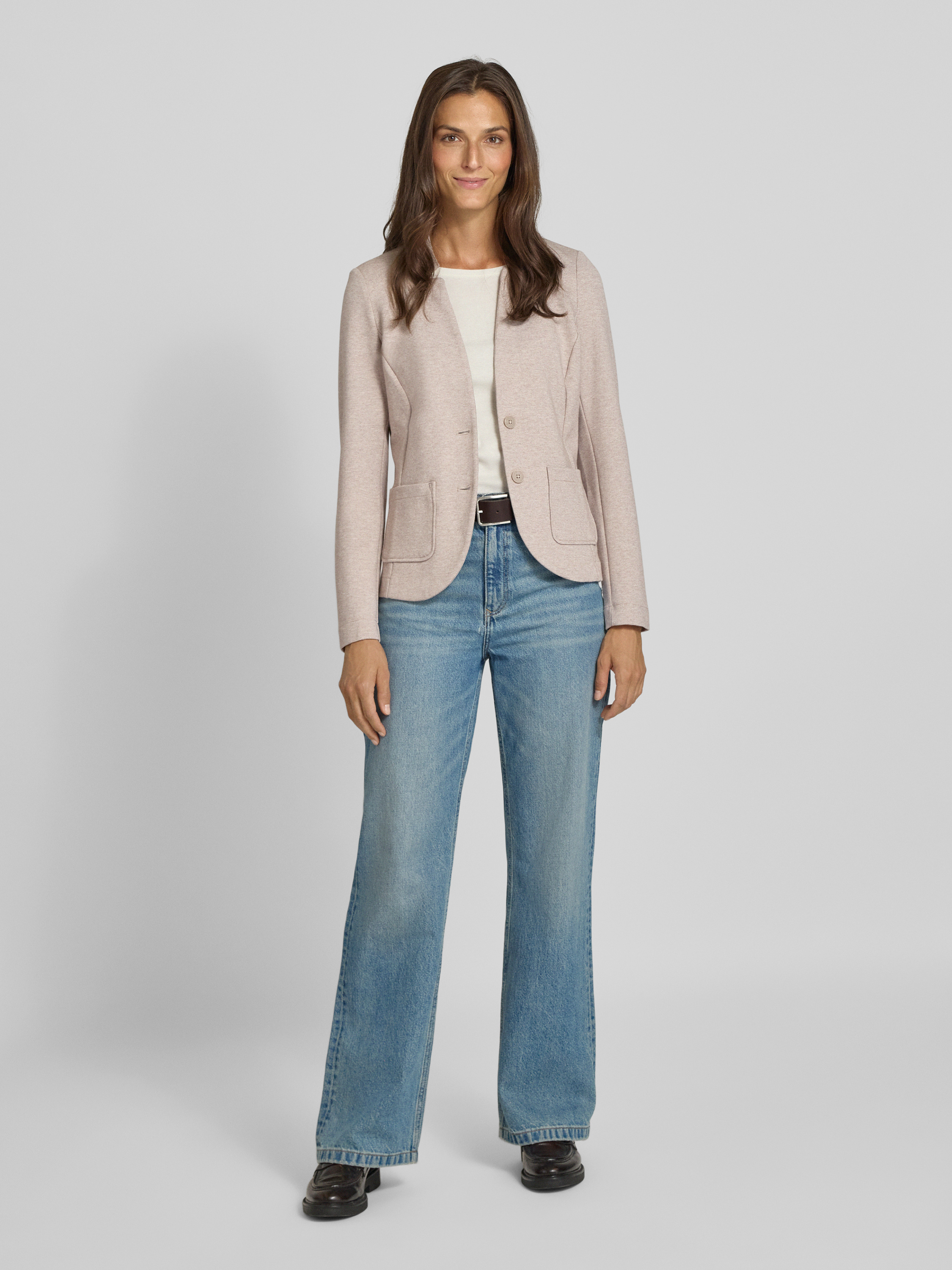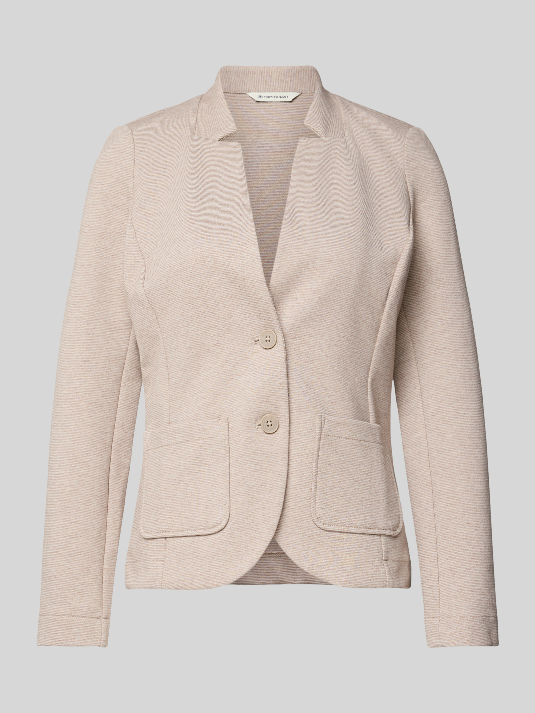 Der Tom Tailor Kurzblazer im Regular Fit kombiniert ein feines Strukturmuster mit der angenehmen Haptik eines Baumwoll-Mixes. Ein eleganter Reverskragen und aufgesetzte Eingrifftaschen verleihen dem Blazer eine zeitlose Note. Die Melange-Optik sorgt für eine vielseitige Einsatzmöglichkeit im Alltag.