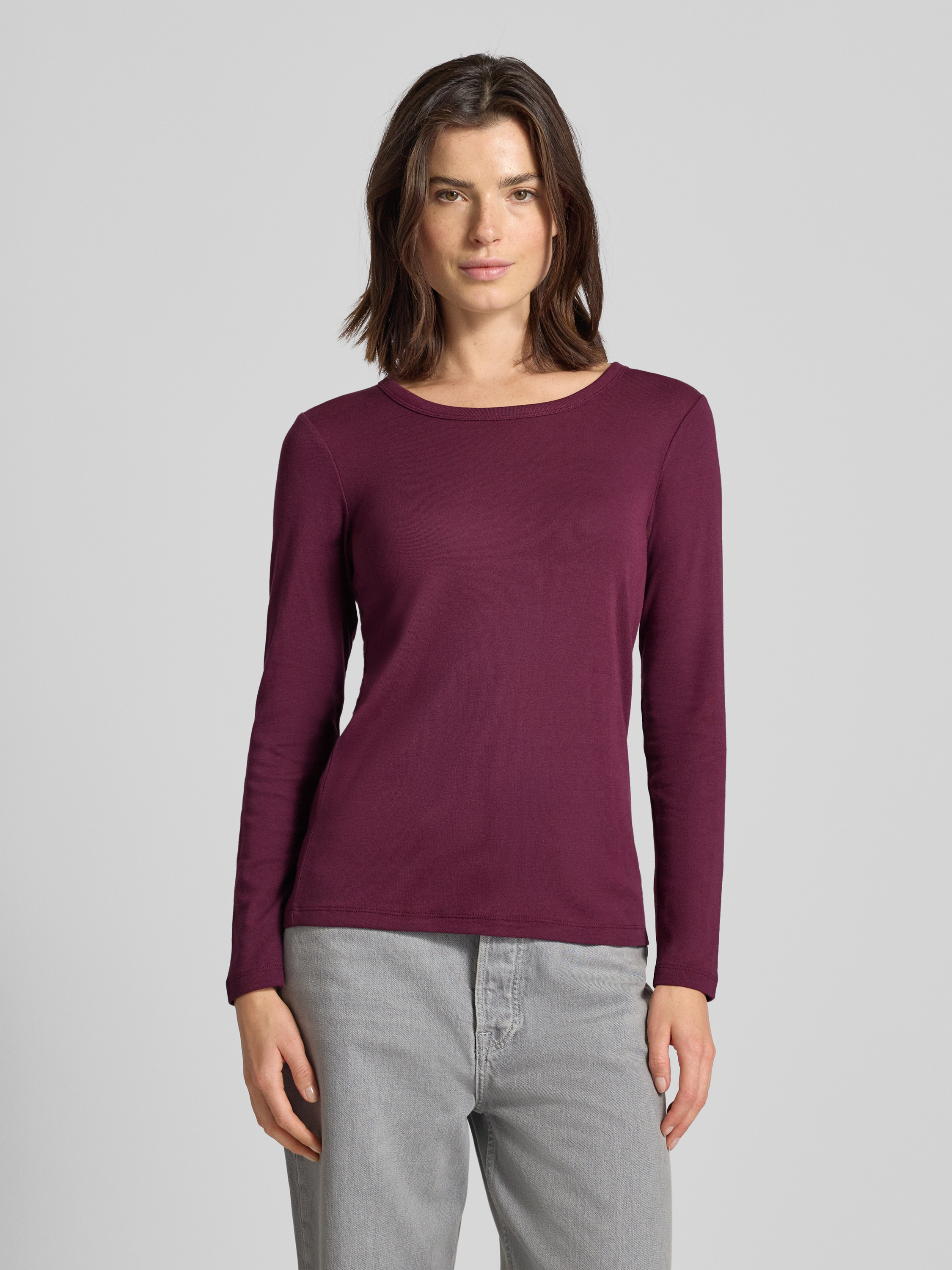 Tom TailorRegular Fit Langarmshirt aus Baumwoll-Mix in bordeaux