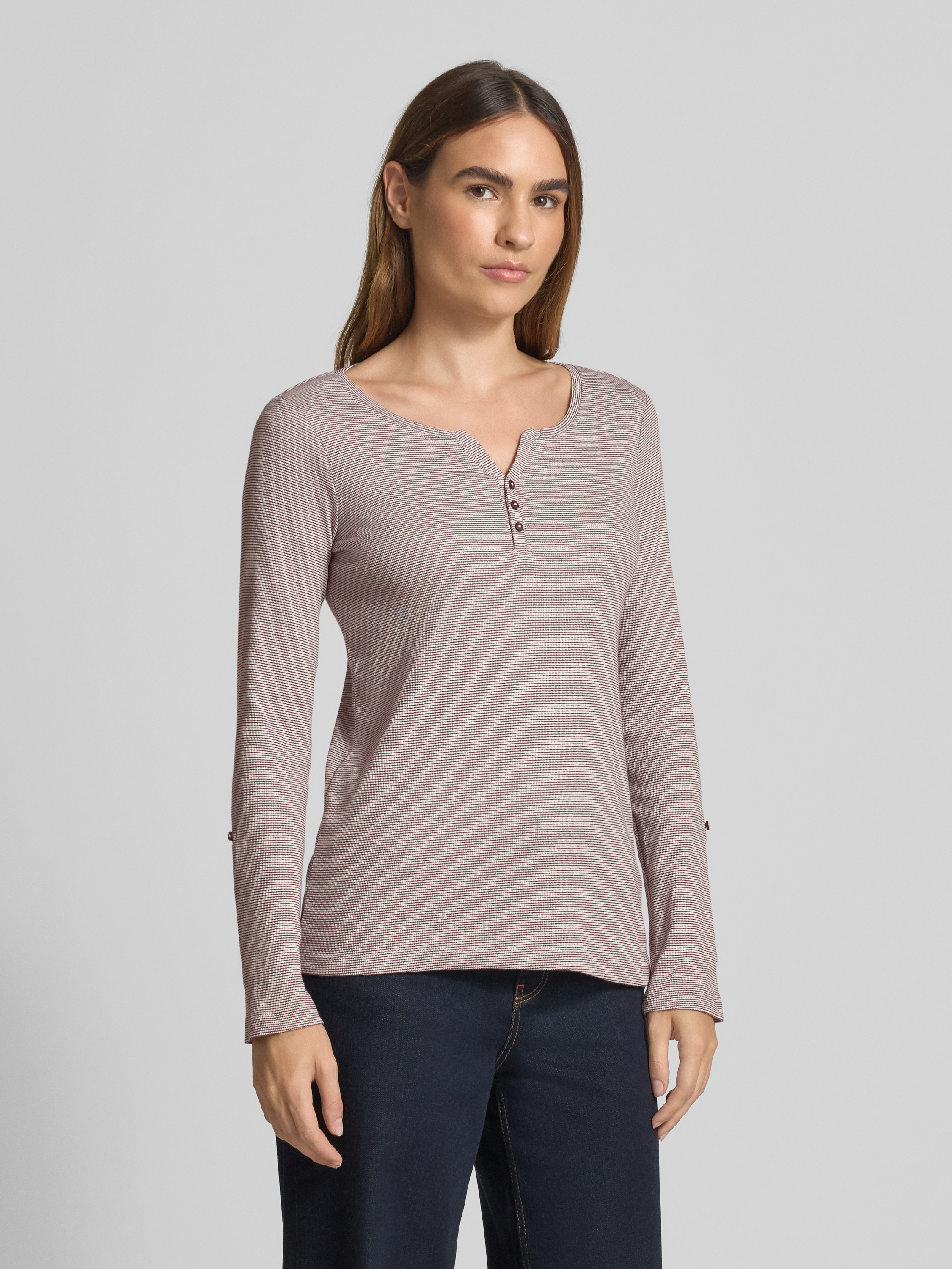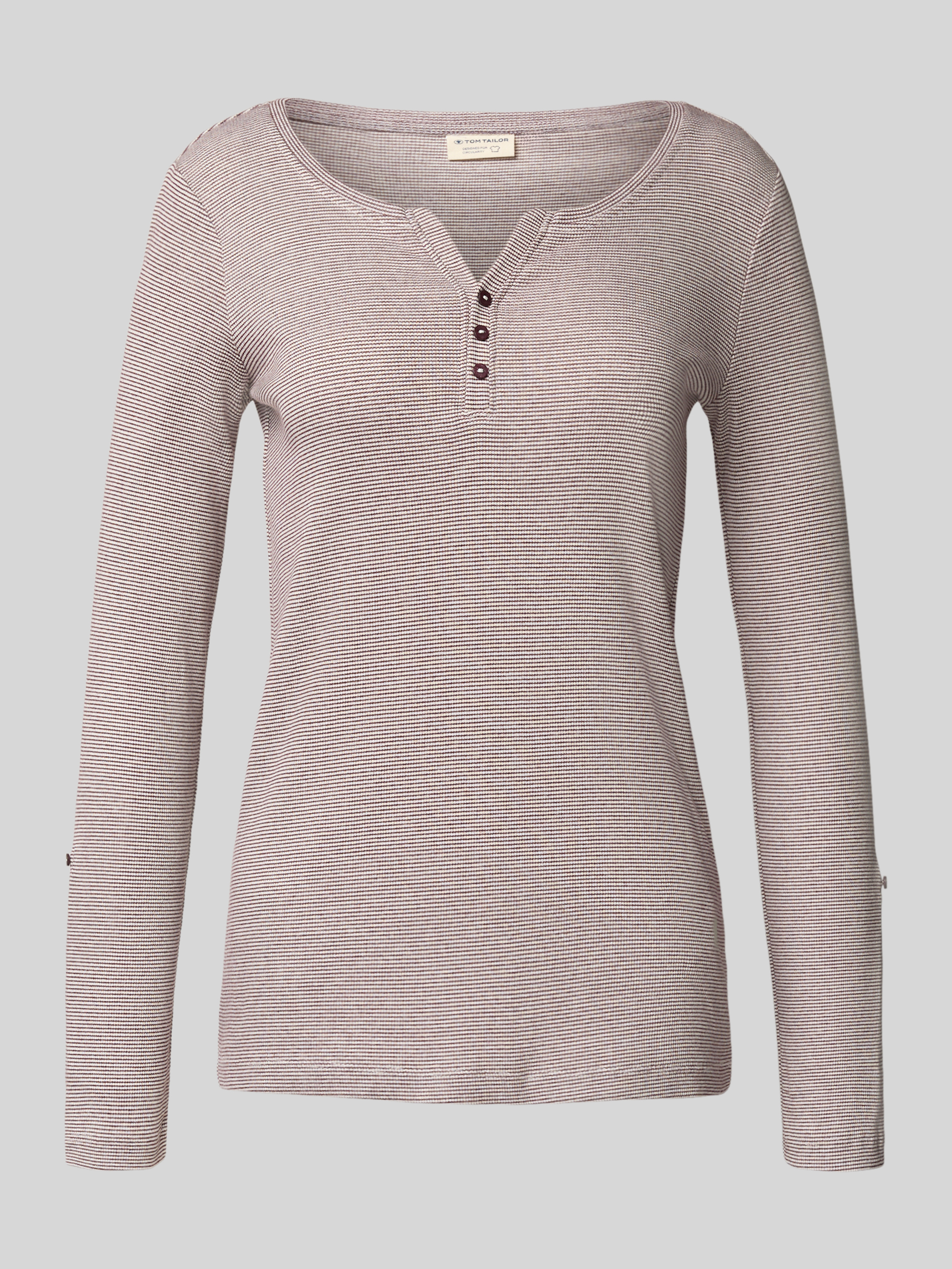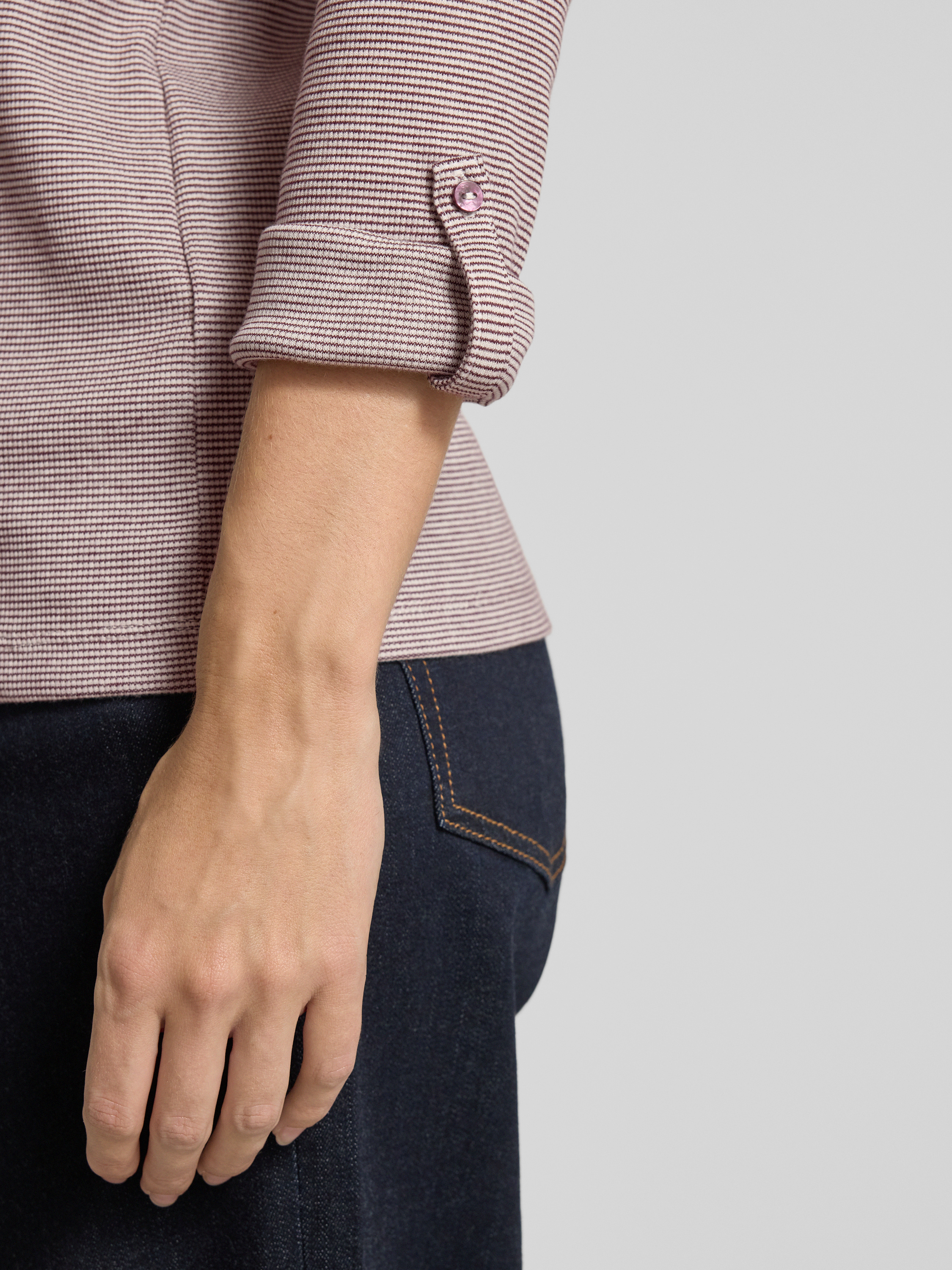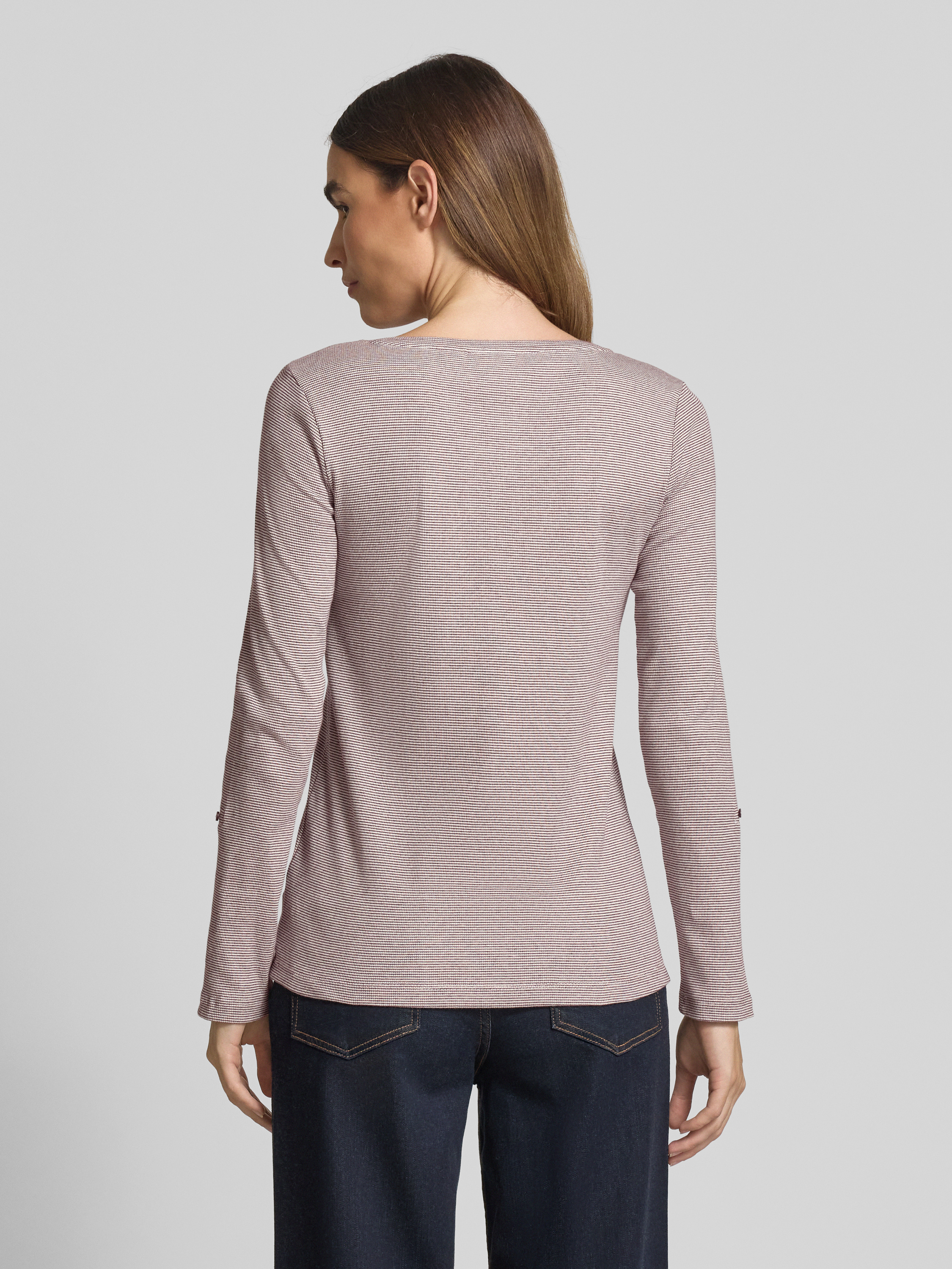 Das Damen Langarmshirt von Tom Tailor bringt mit seinem gestreiften Allover-Muster und dem unifarbenen Design Abwechslung in die Garderobe. Durch den Regular Fit sitzt das Shirt angenehm und lässt sich flexibel kombinieren, während der Rundhals mit V-Cut-Out einen dezenten Akzent setzt. Die langen Ärmel mit Turn-up-Option sorgen für Variabilität im Alltag.