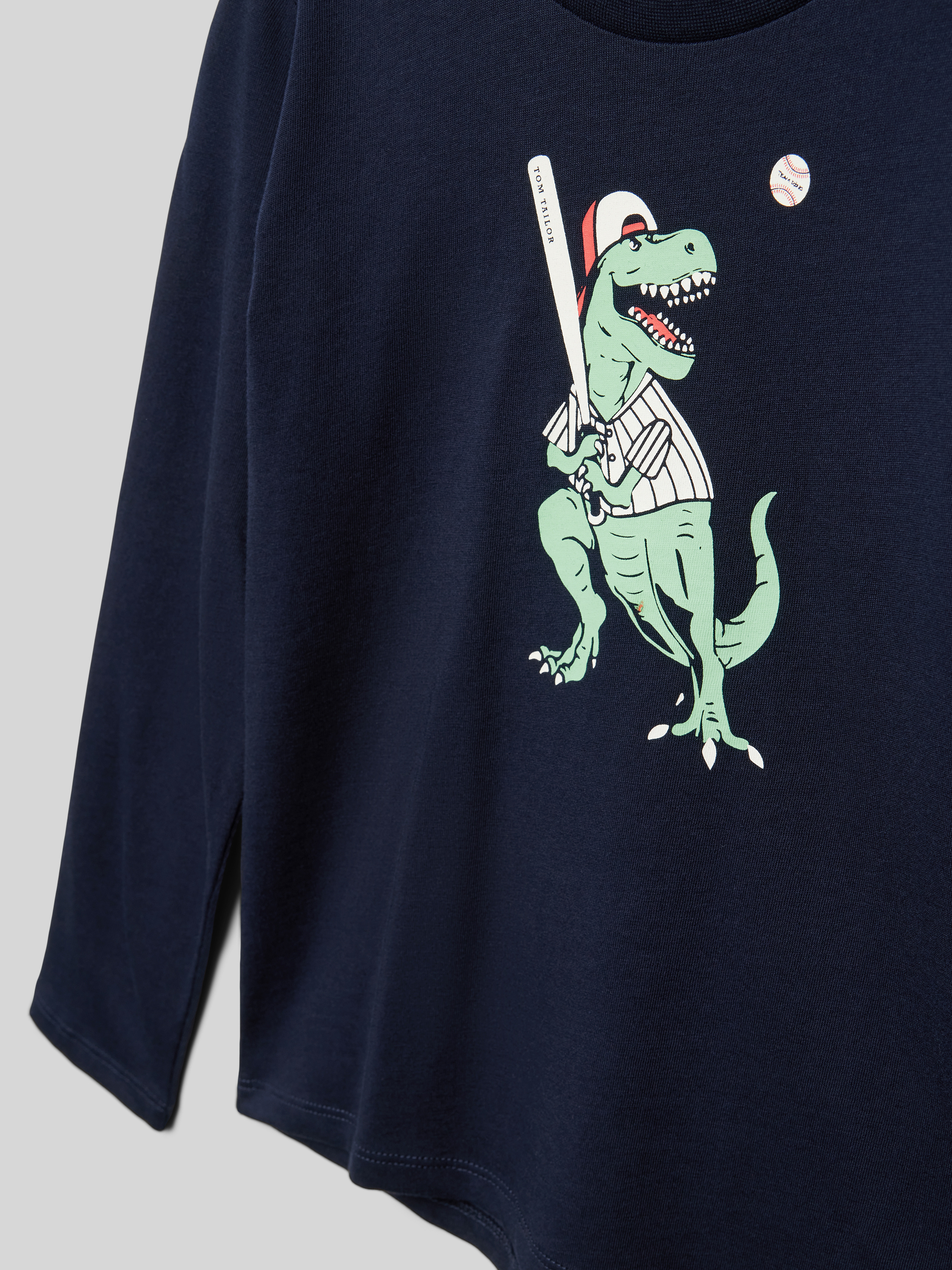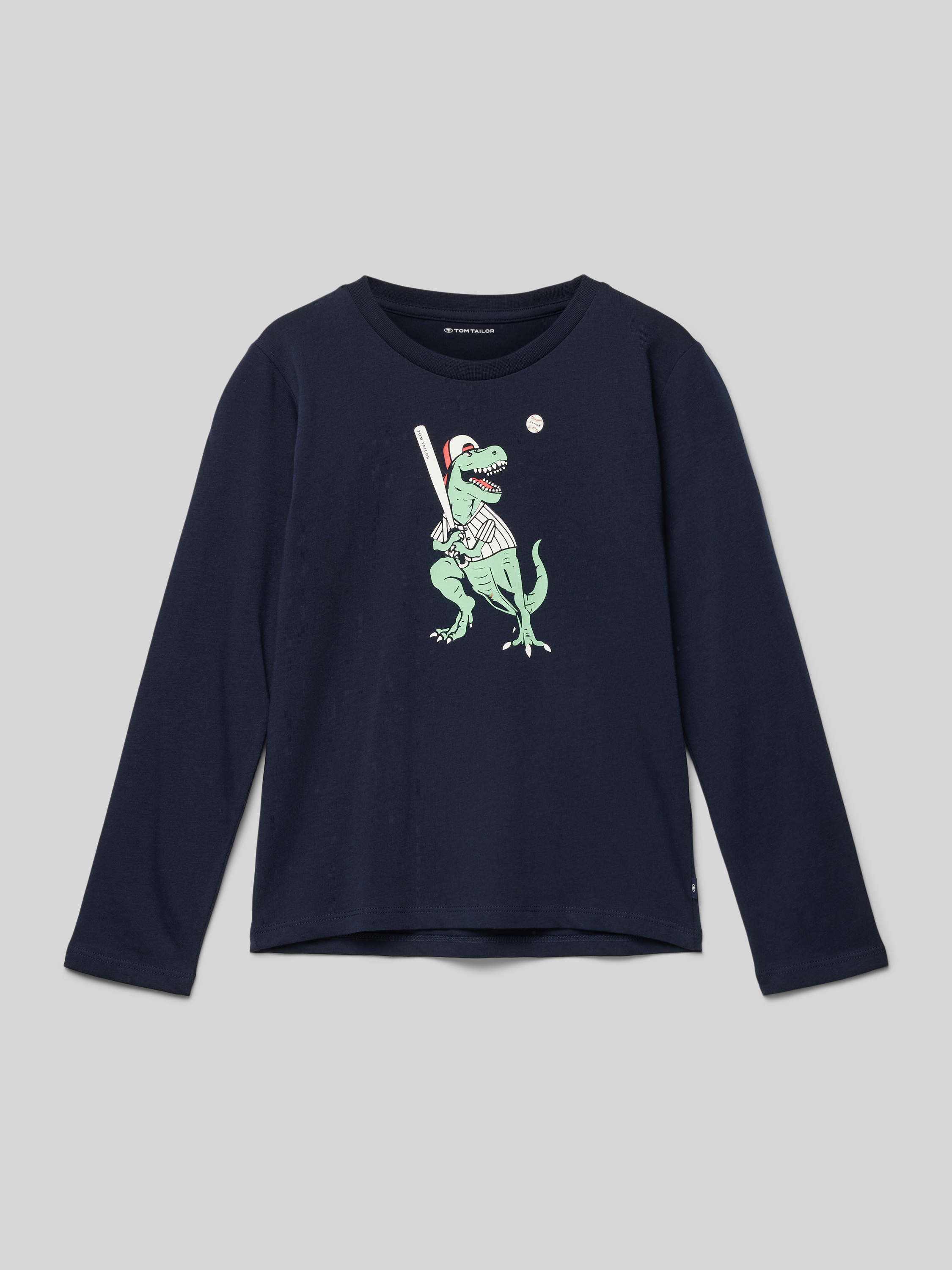 Tom TailorRegular Fit Langarmshirt mit Motiv-Print in marine