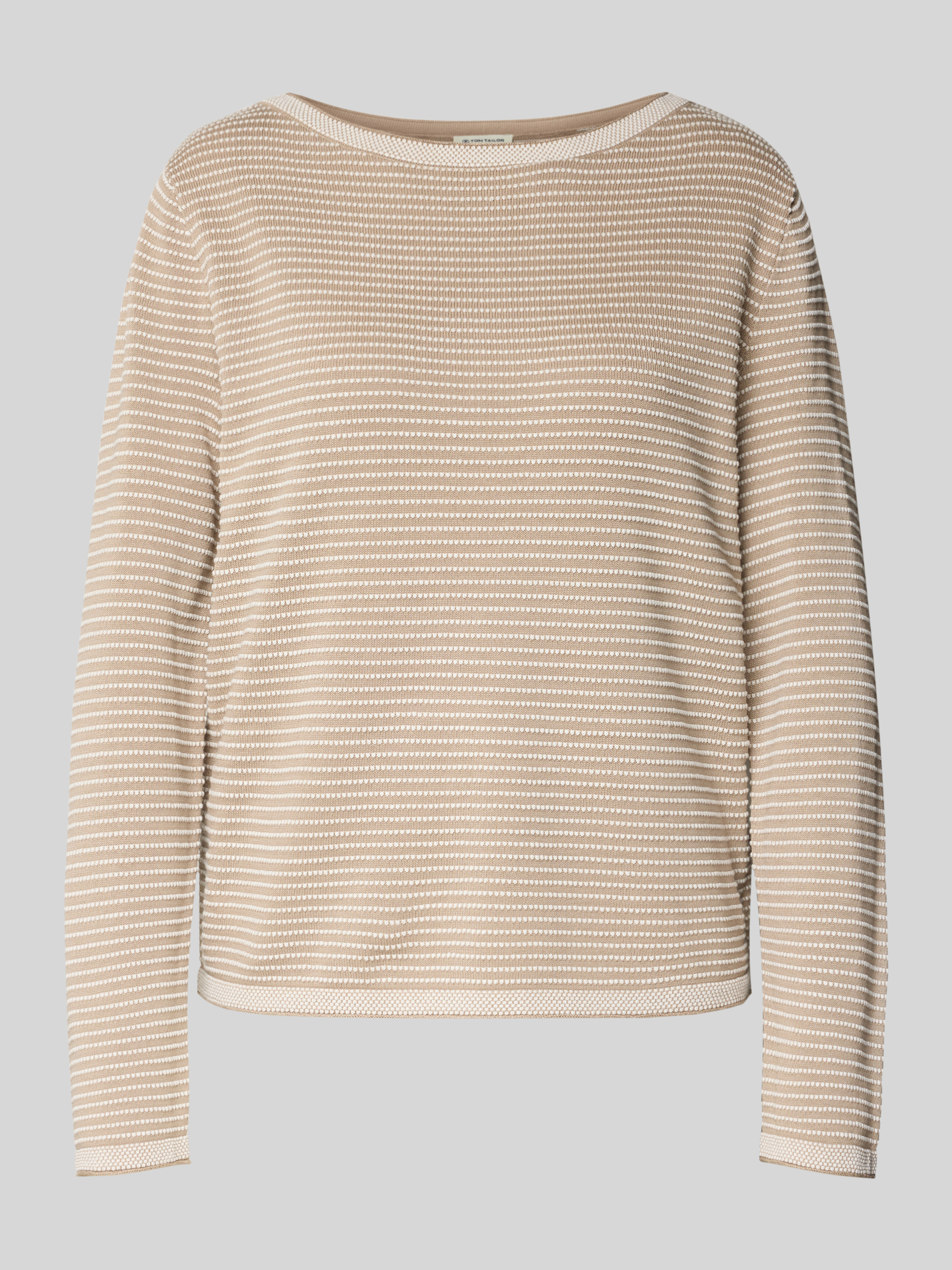 Der Damen Pullover von Tom Tailor im Regular-Fit zeigt ein gestreiftes Allover-Muster, das den Feinstrick aus reiner Baumwolle unterstreicht. Durch den U-Boot-Ausschnitt und gerollte Abschlüsse entsteht eine legere Silhouette, die vielseitig kombinierbar wirkt. So fühlt man sich im Alltag angenehm angezogen und bleibt flexibel.