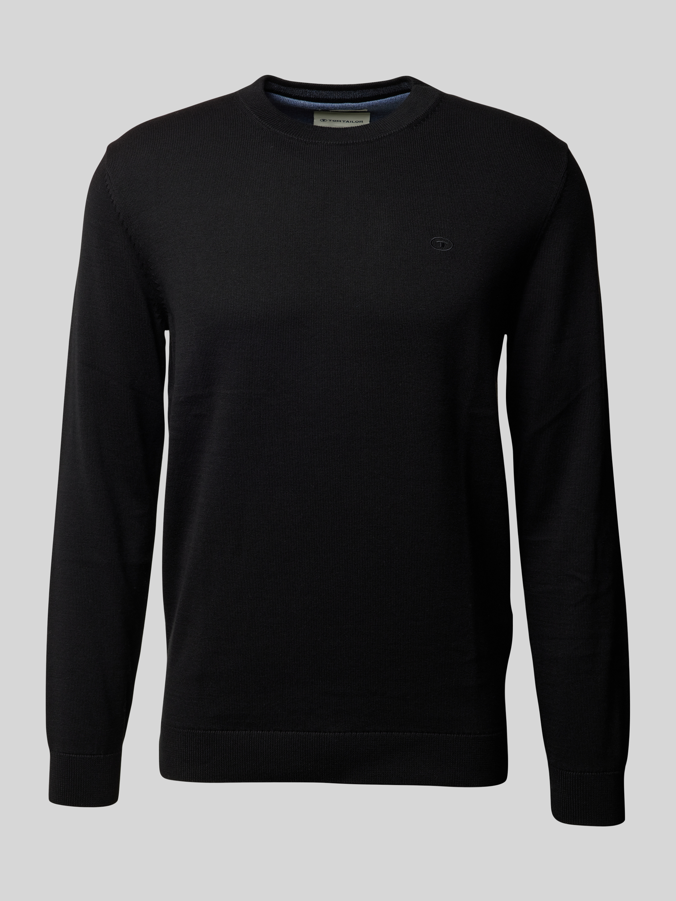 Regular Fit Strickpullover aus reiner Baumwolle mit Rundhalsausschnitt in black