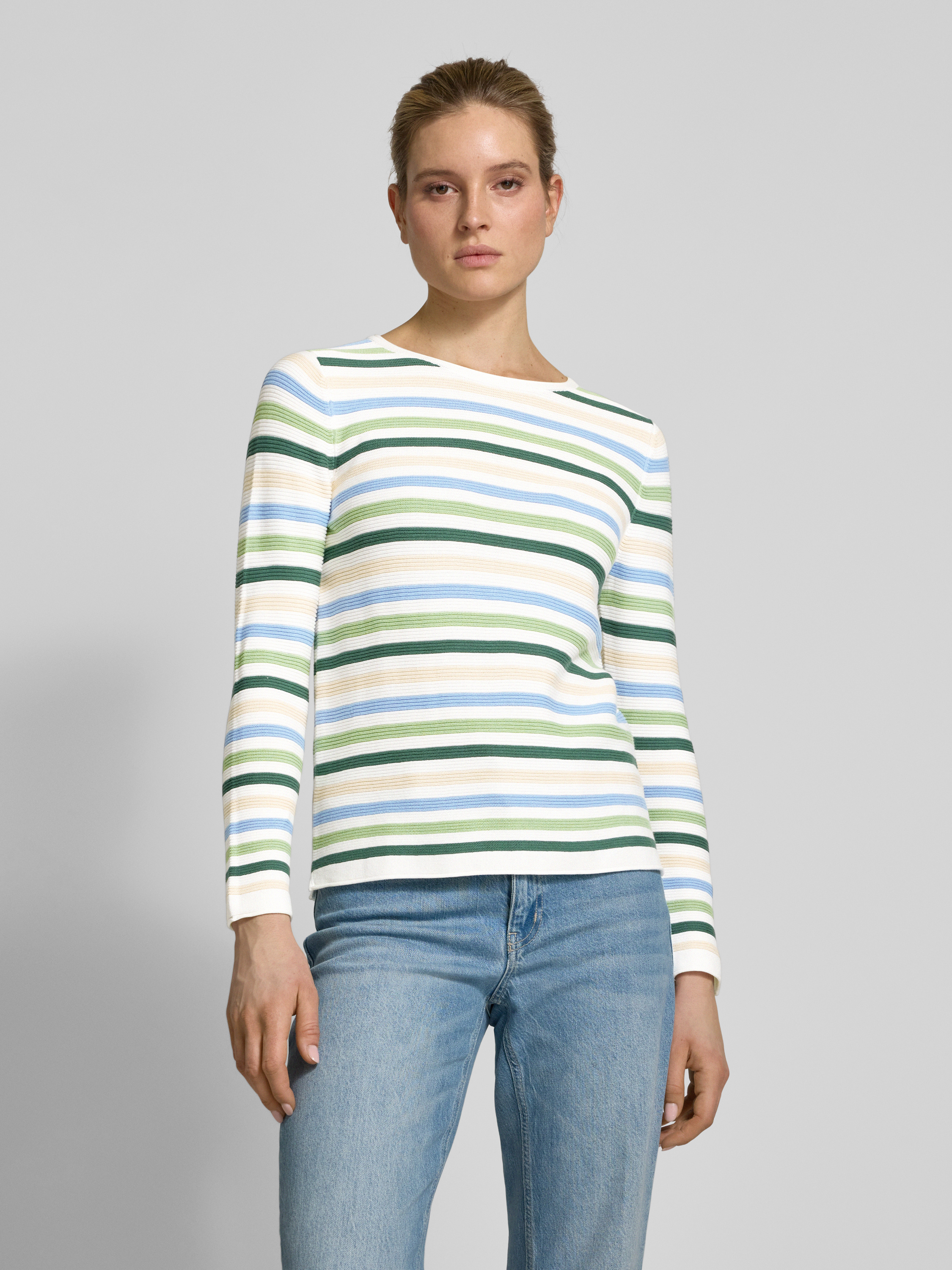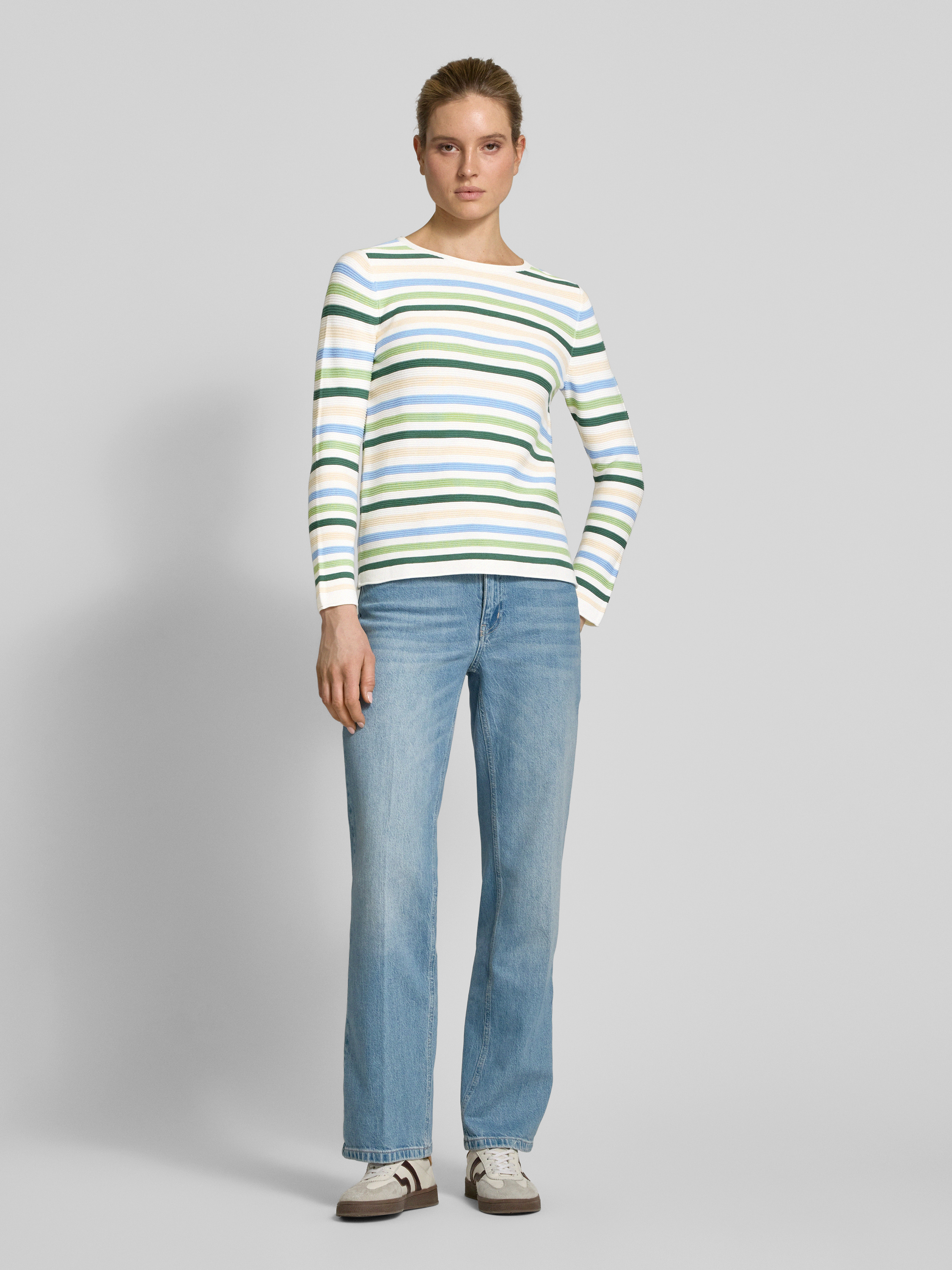 Tom TailorRegular Fit Strickpullover aus reiner Baumwolle mit Streifenmuster in hellgruen
