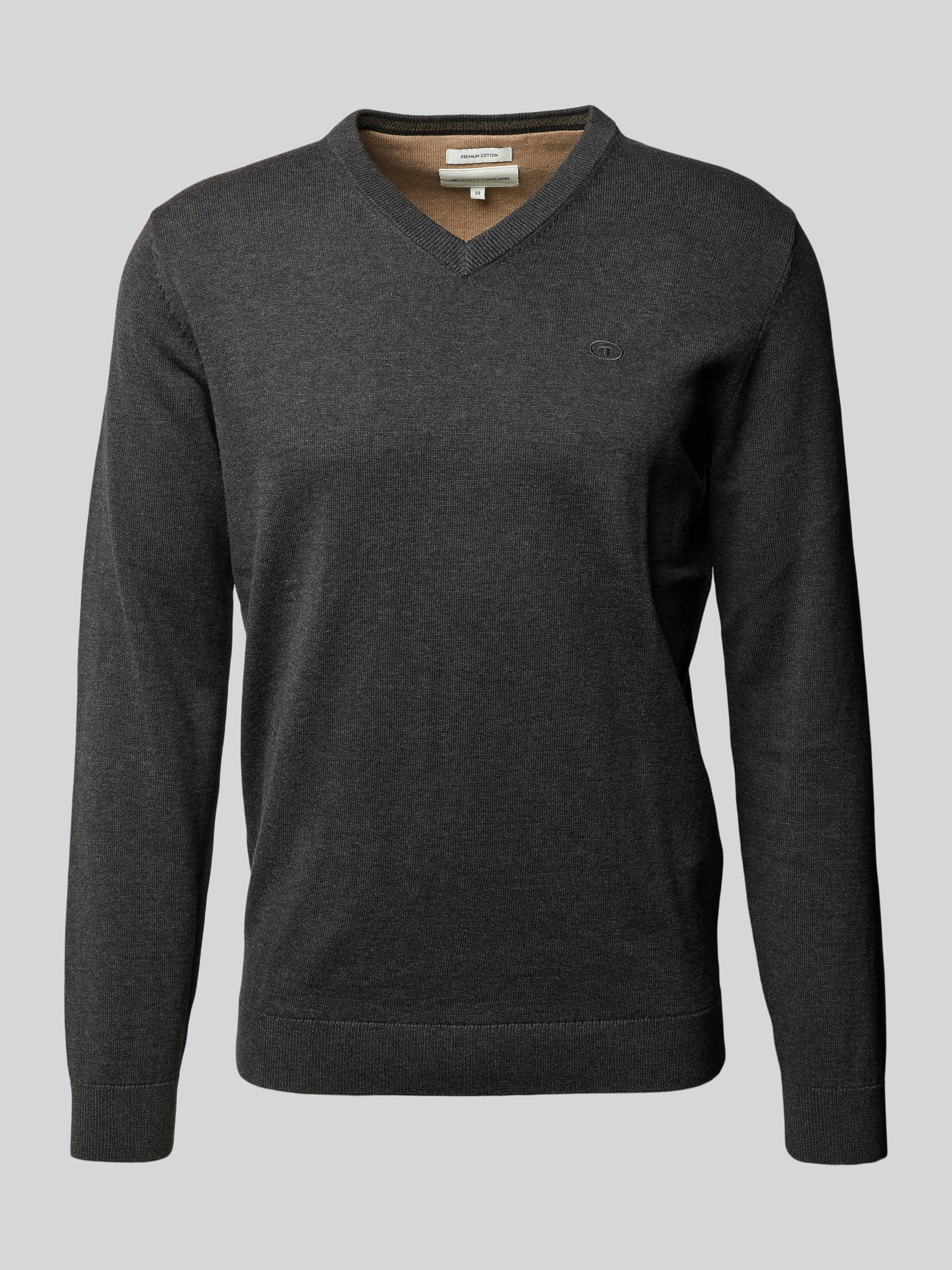 Regular Fit Strickpullover aus reiner Baumwolle mit V-Ausschnitt in anthrazit