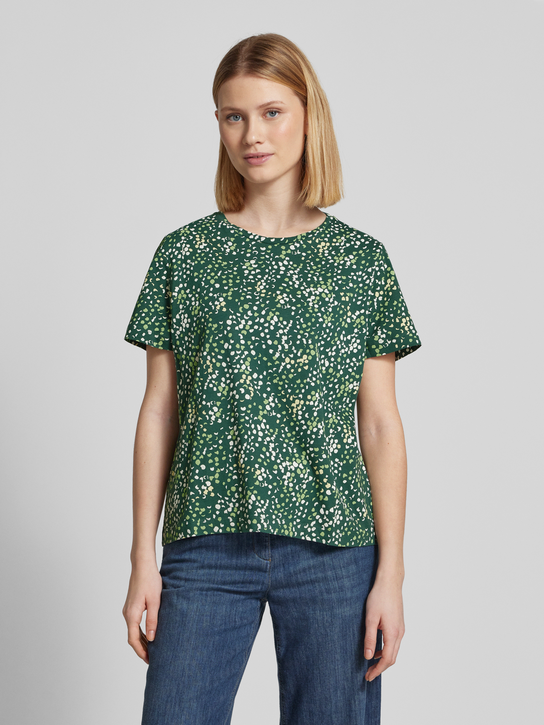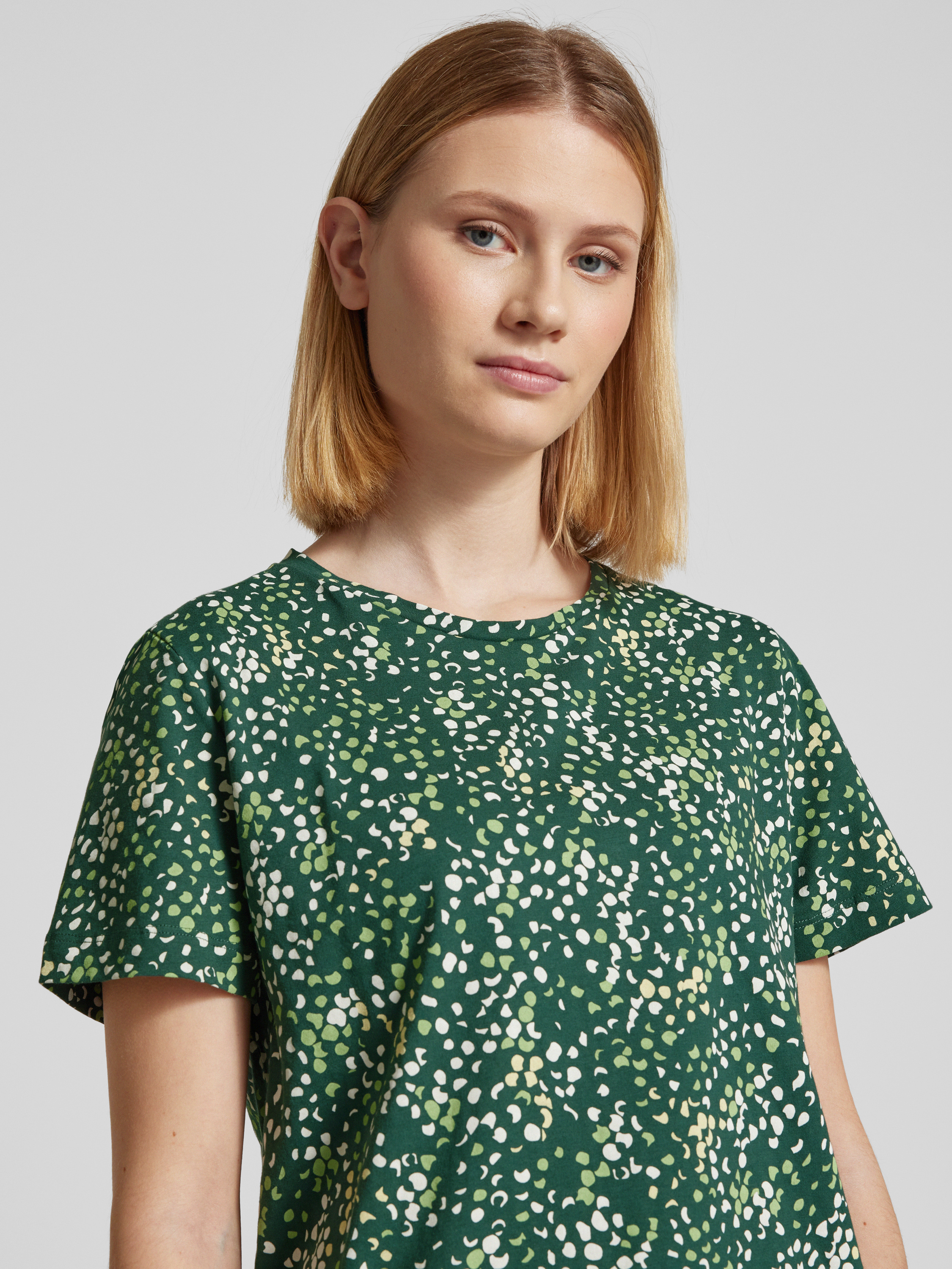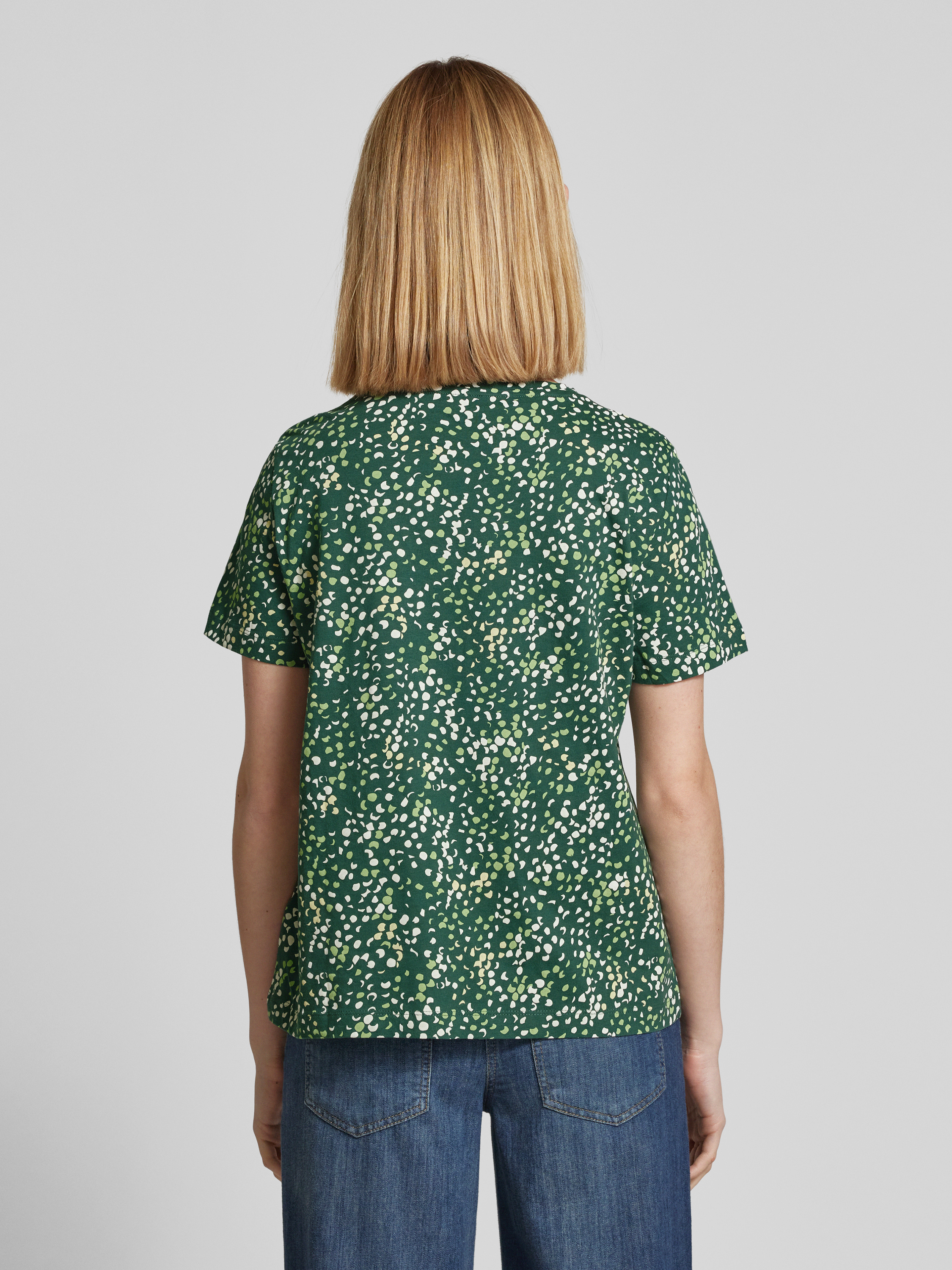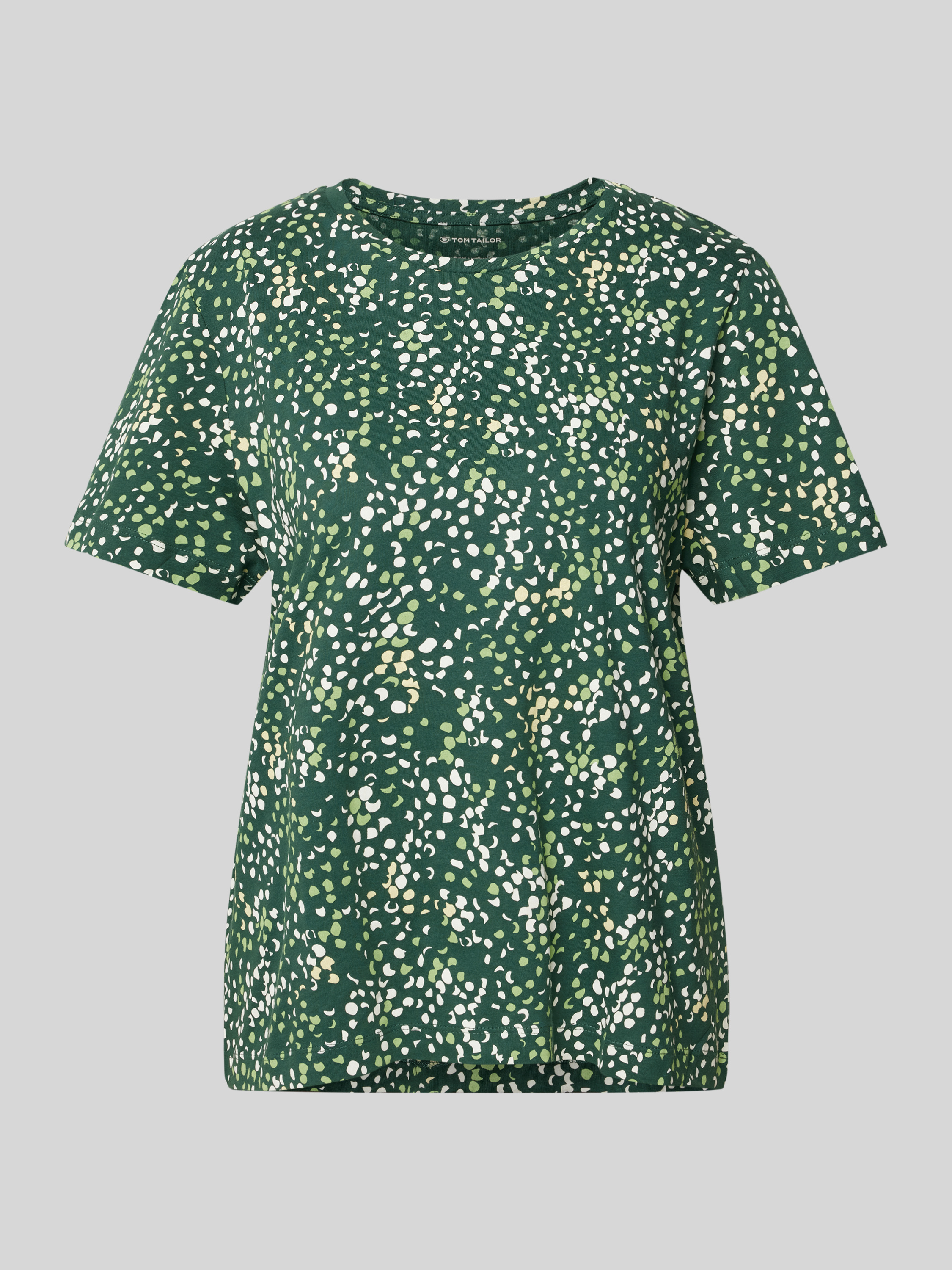 Das Damen T-Shirt von Tom Tailor kombiniert ein stilvolles Allover-Muster mit der angenehmen Passform des Regular Fit. Der Rundhalsausschnitt verleiht dem Modell einen klassischen Touch, während das weiche Jersey aus reiner Baumwolle hohen Tragekomfort gewährleistet. Ideal für vielseitige Outfits.