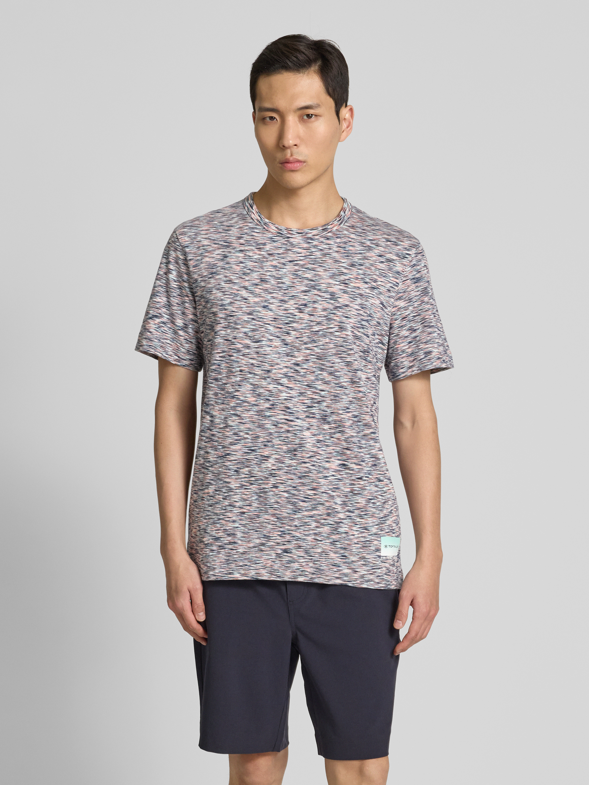 Das Tom Tailor T-Shirt aus reiner Baumwolle bietet mit seinem Regular Fit und dem Rundhalsausschnitt eine angenehme Passform für jeden Tag. Die melierte Optik und der dezente Label Print verleihen dem kurzärmeligen Shirt eine moderne Note. Dank des weichen Jersey-Materials fühlt es sich besonders komfortabel an.