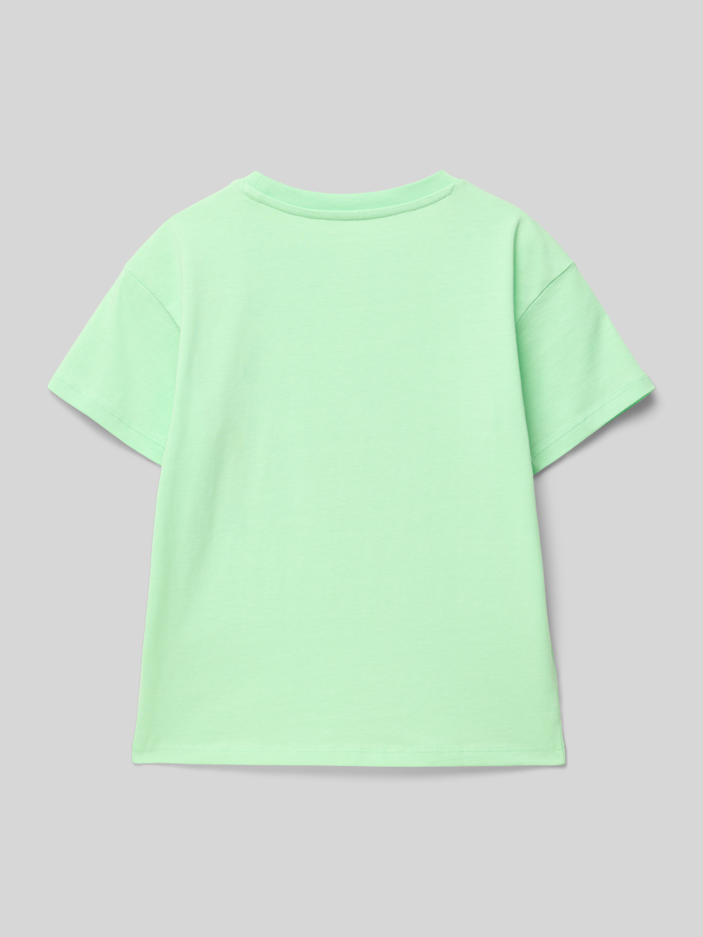 Das Tom Tailor Regular Fit T-Shirt für Kinder zeichnet sich durch seine angenehme Passform und den klassischen Rundhalsausschnitt aus. Gefertigt aus reiner Baumwolle, sorgt es für ein angenehmes Tragegefühl und Atmungsaktivität. Der dezente Motiv-Print verleiht dem unifarbenen Design eine frische Note.