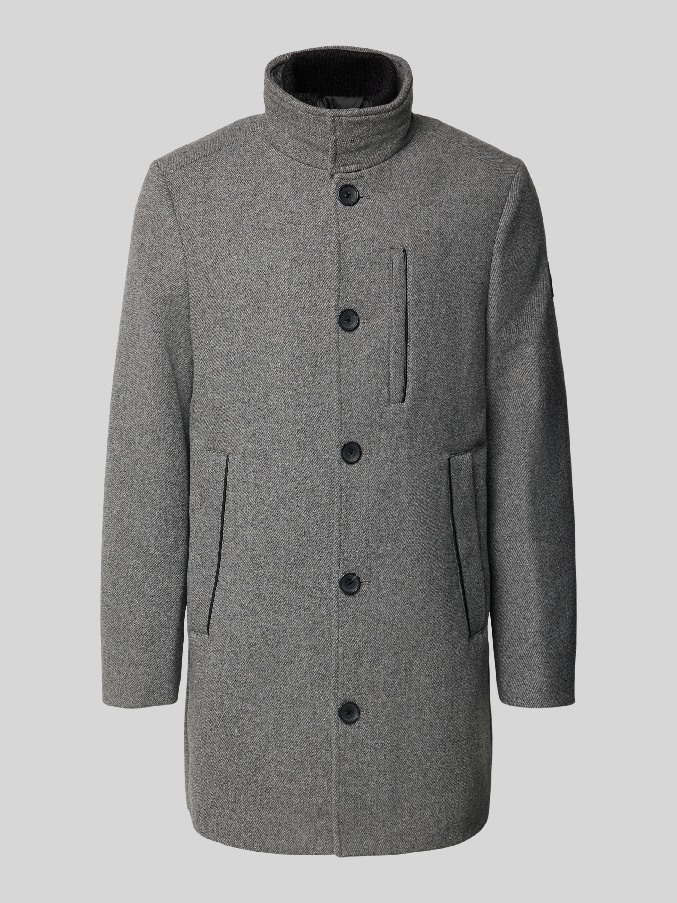Der Herrenmantel von Tom Tailor zeigt sich in klarer, unifarbener Optik und setzt mit dem Stehkragen einen modernen Akzent. Aus weicher Wolle gefertigt, sorgt der Regular Fit für angenehmen Tragekomfort im Alltag. Praktische Taschen bieten Platz für persönliche Kleinigkeiten.