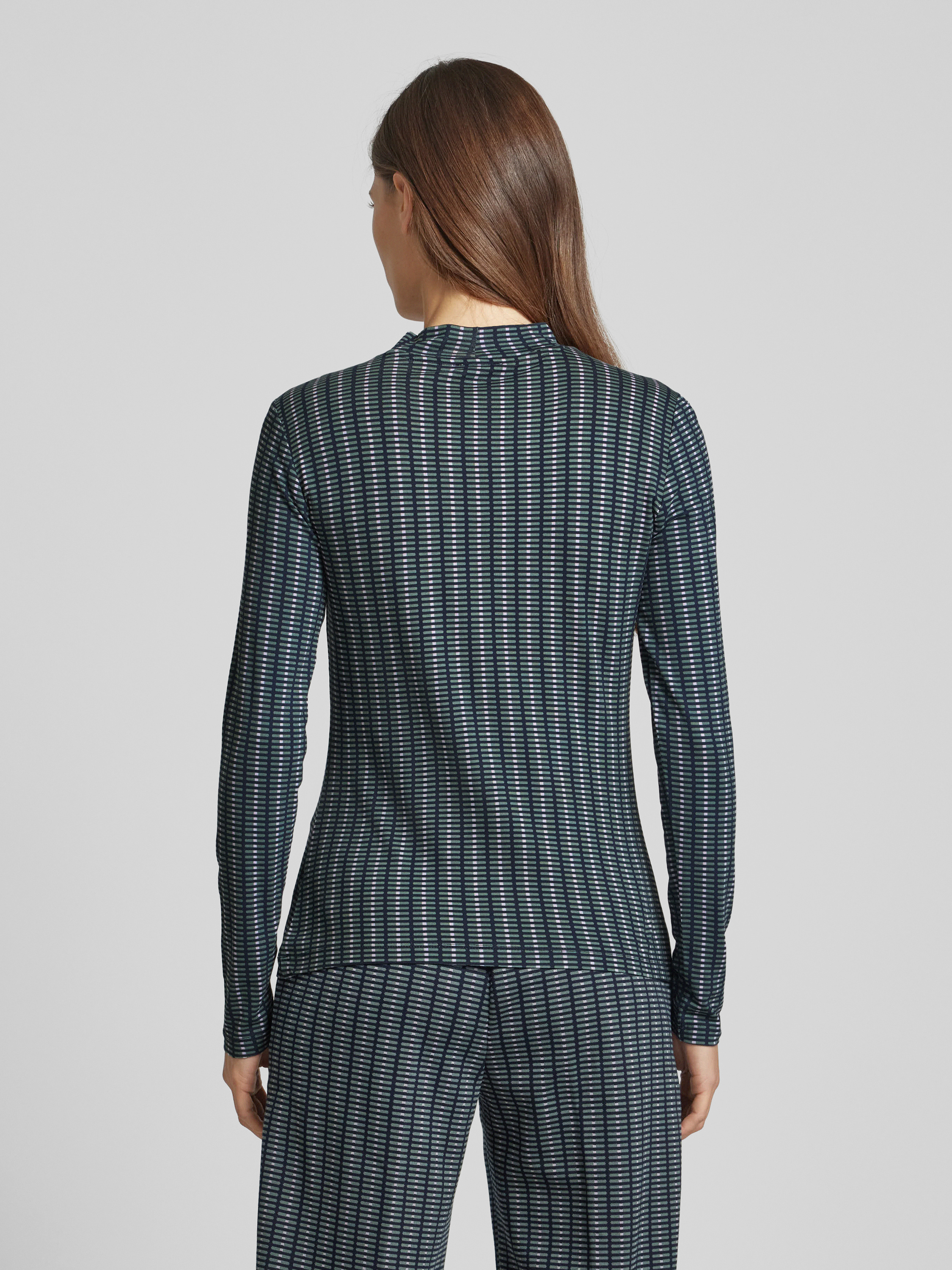 Tom TailorShaped Fit Langarmshirt aus Viskose-Mix mit Allover-Muster in dunkelgruen