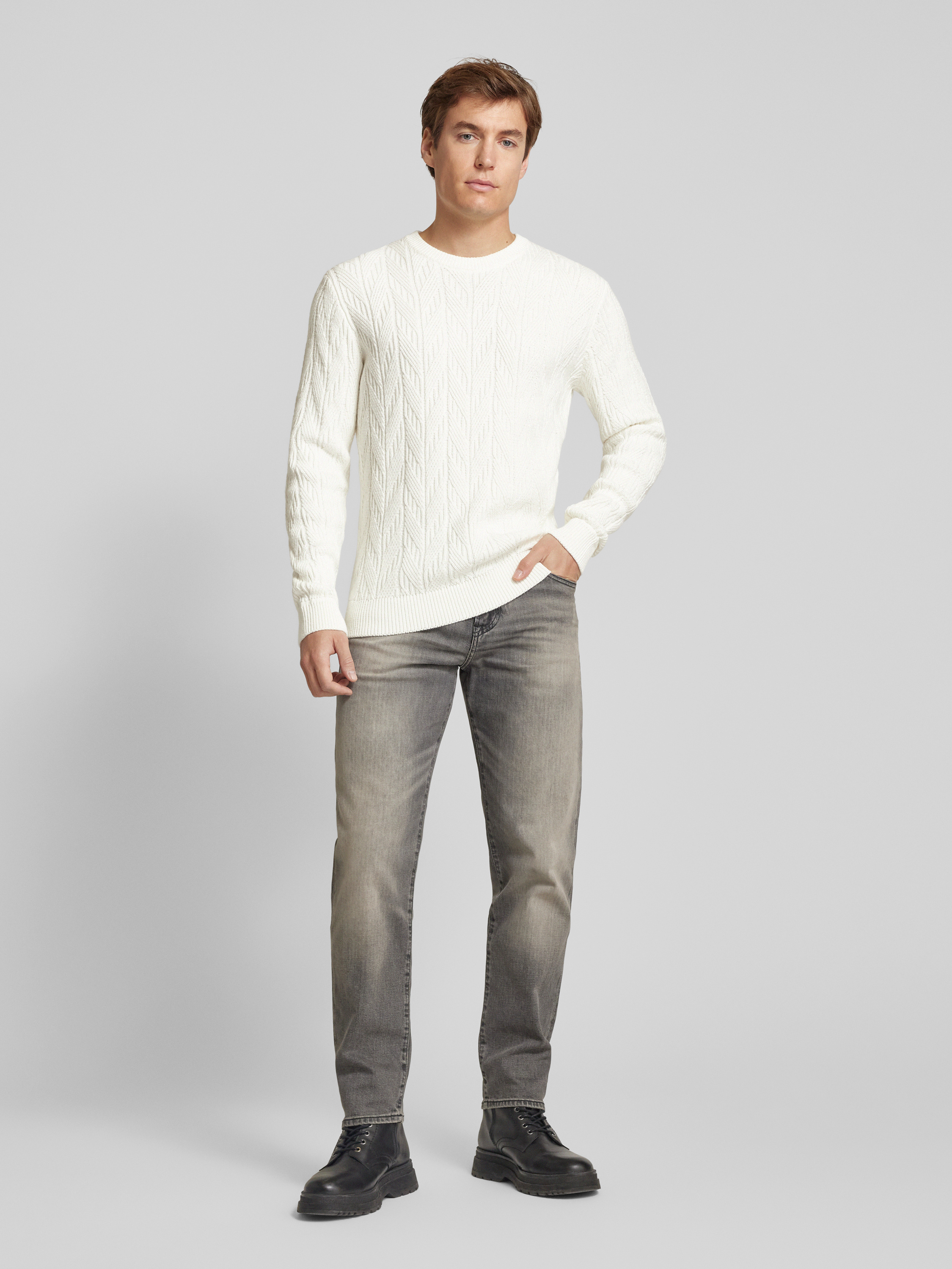 Tom TailorStrickpullover mit Rundhalsausschnitt in offwhite