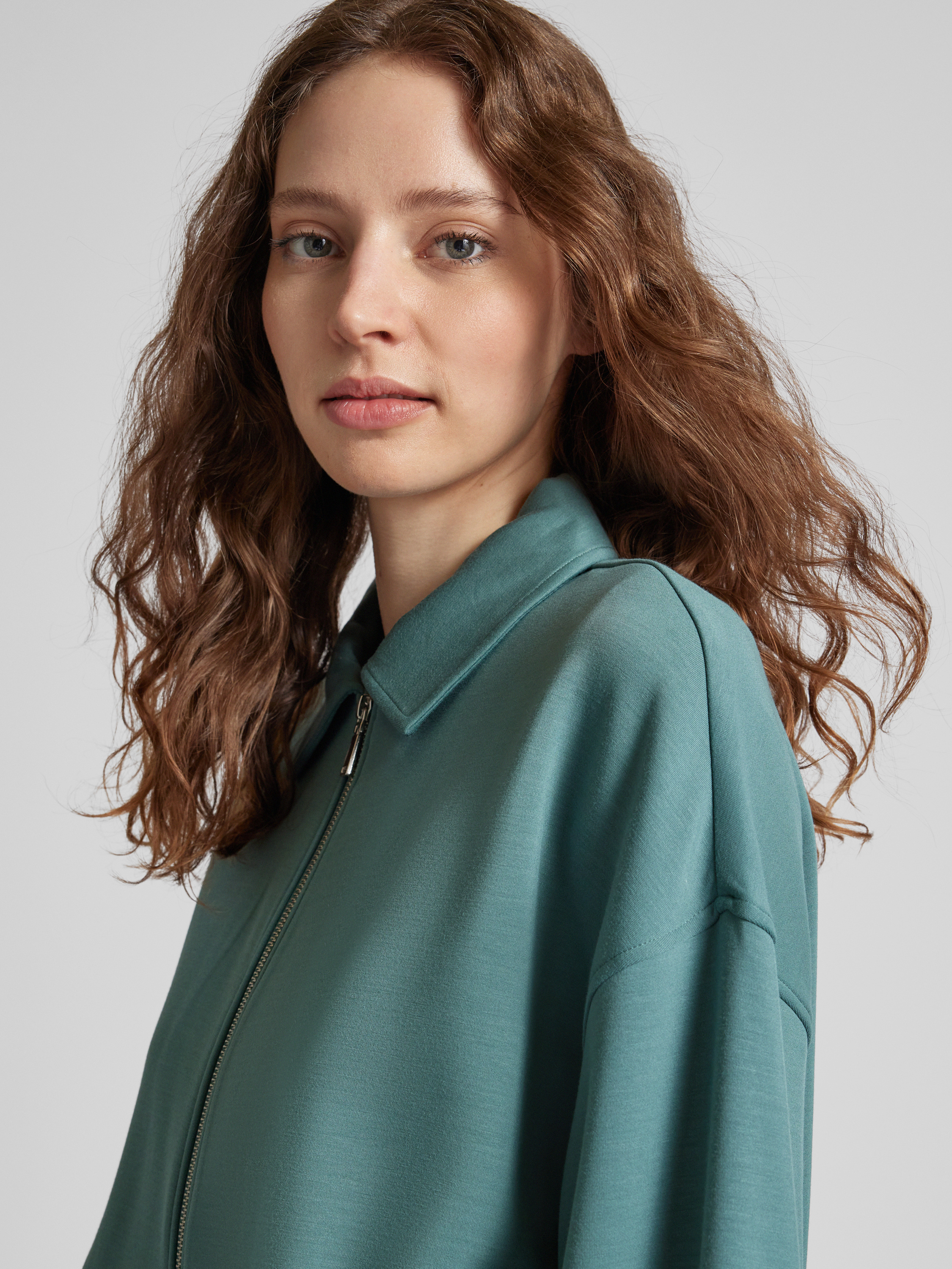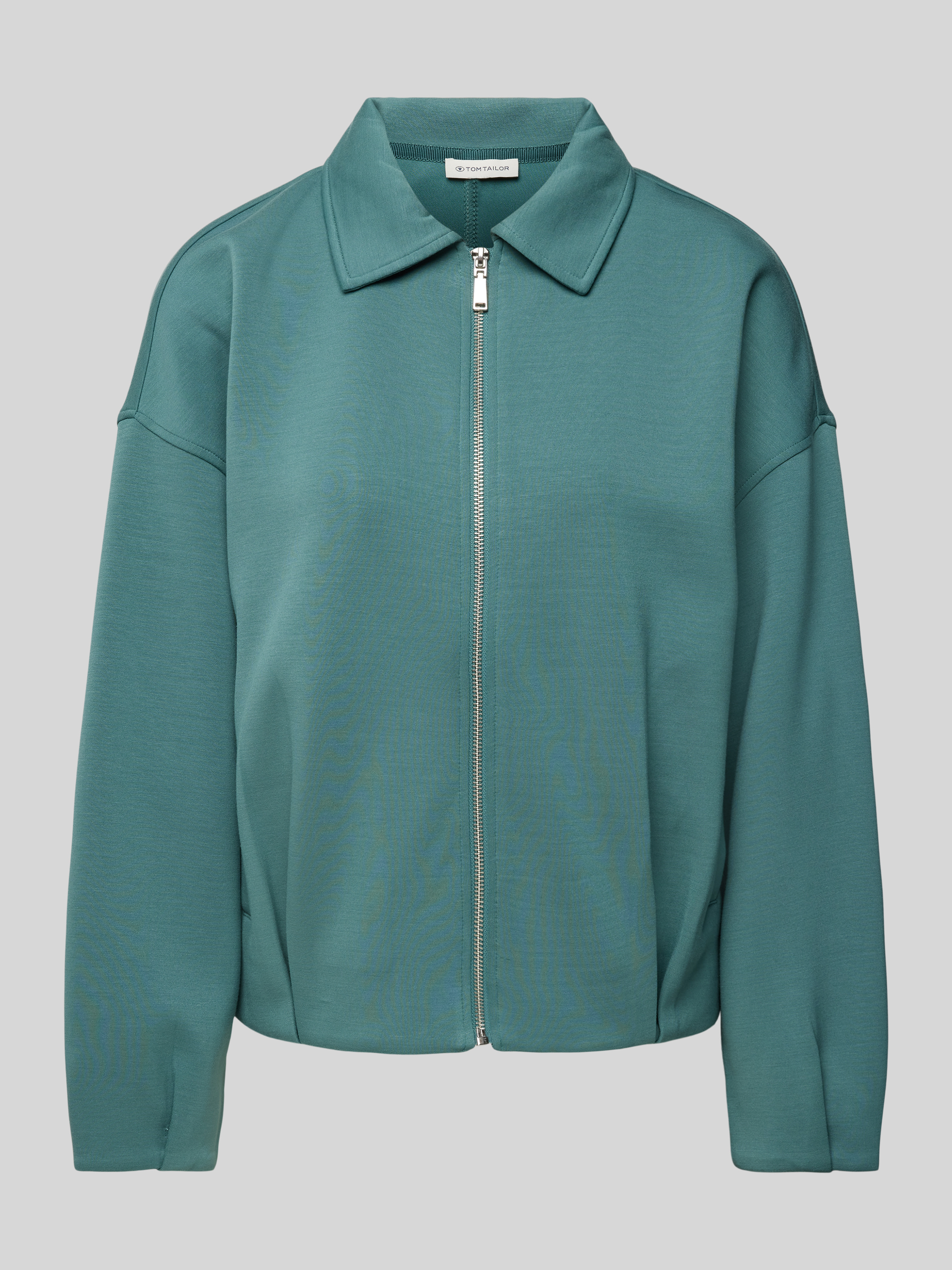 Tom TailorSweatjacke mit Viskose-Anteil und Umlegekragen in bottle