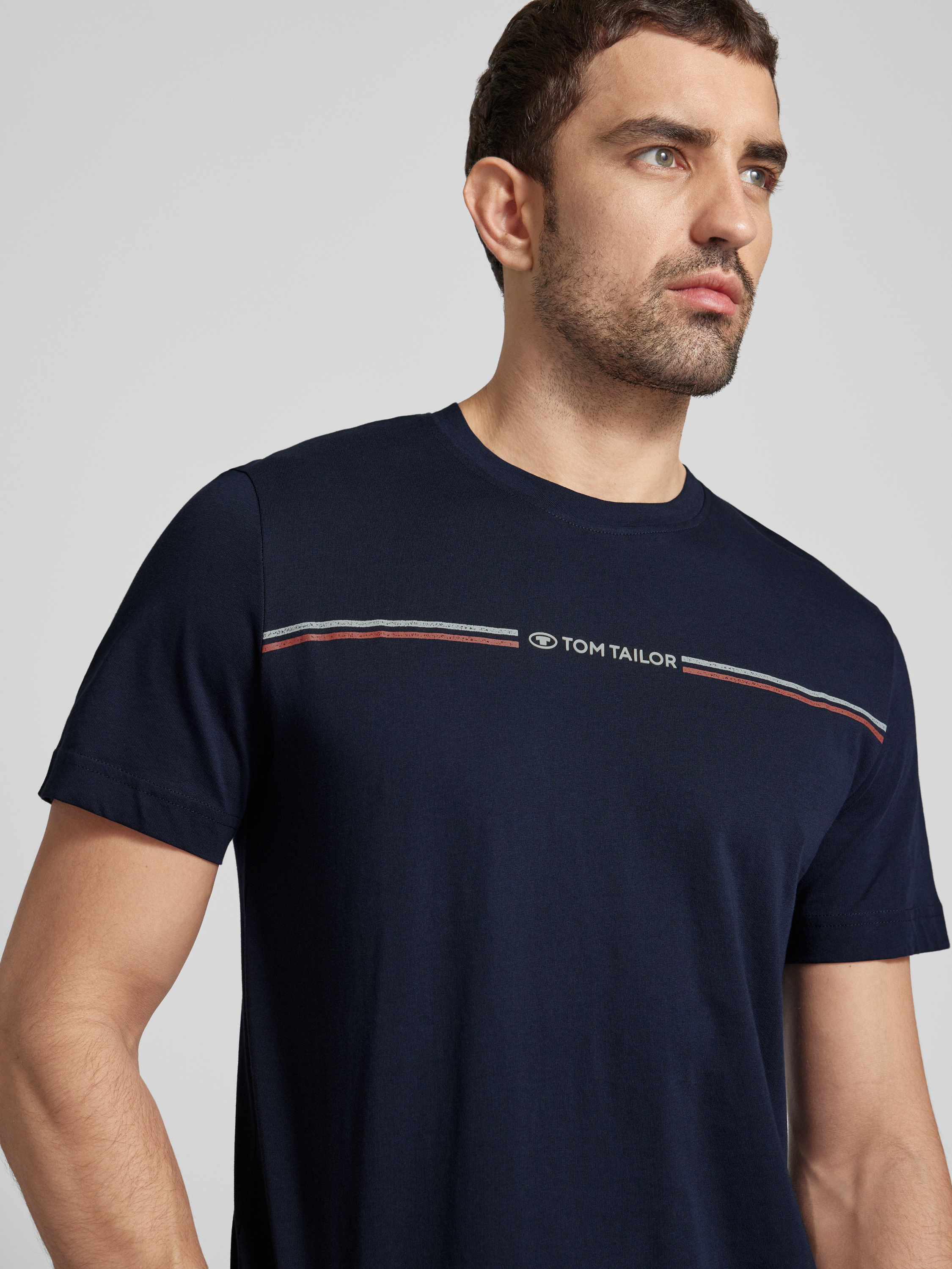 Das Herren T-Shirt von TOM TAILOR kombiniert einen geraden Schnitt mit einem Rundhalsausschnitt und einem dezenten Label-Print. Sein unifarbenes Design lässt sich vielseitig kombinieren und eignet sich hervorragend für den Alltag. Die hochwertige Baumwolle sorgt für ein angenehmes Tragegefühl.