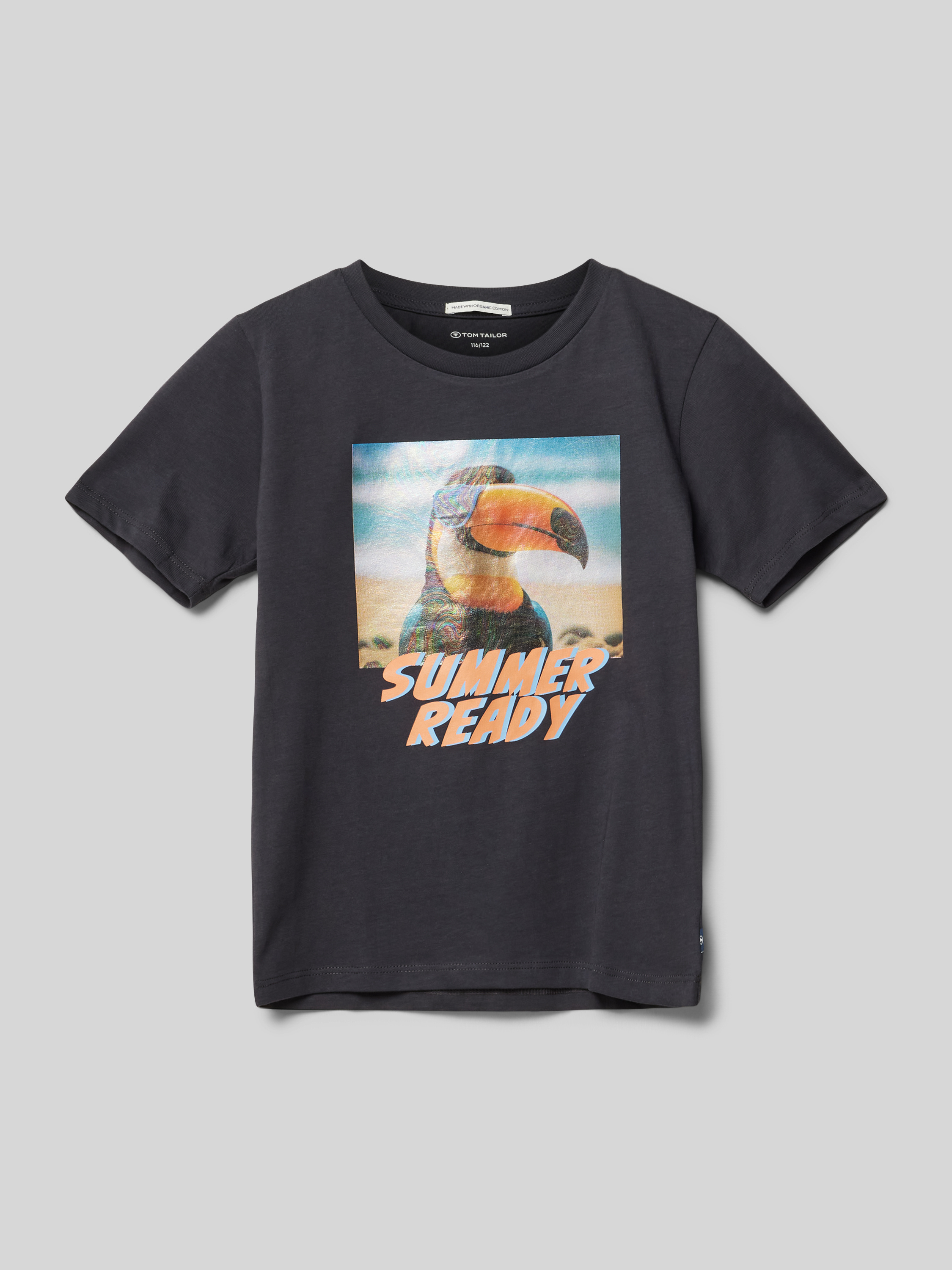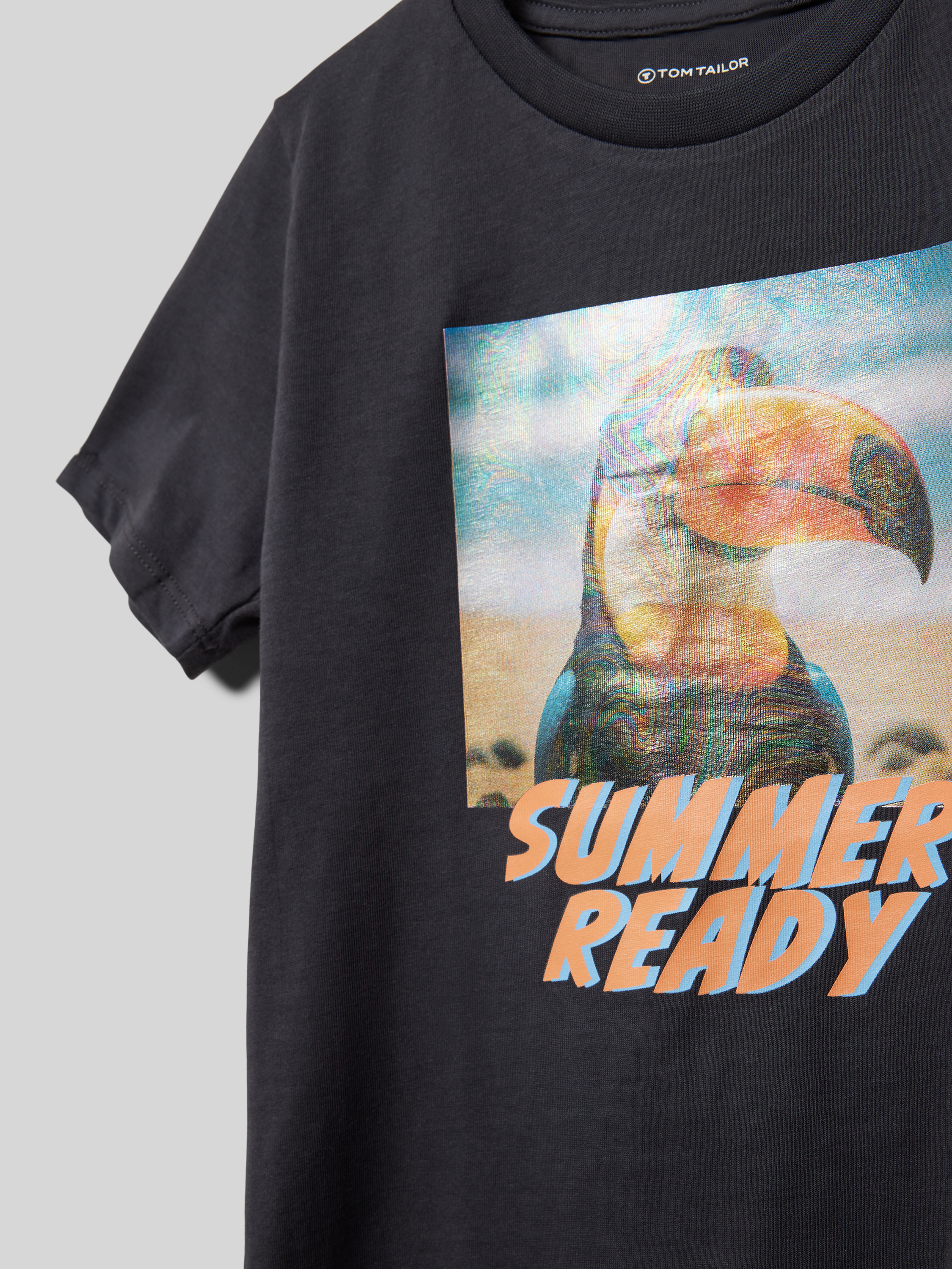 Das Kinder T-Shirt von TOM TAILOR besteht aus reiner Baumwolle, was ein angenehmes Tragegefühl ermöglicht. Der gerade Schnitt sorgt für eine lockere Passform, die Bewegungsfreiheit bietet. Ein auffälliger Motiv-Print verleiht dem T-Shirt eine verspielte Note.