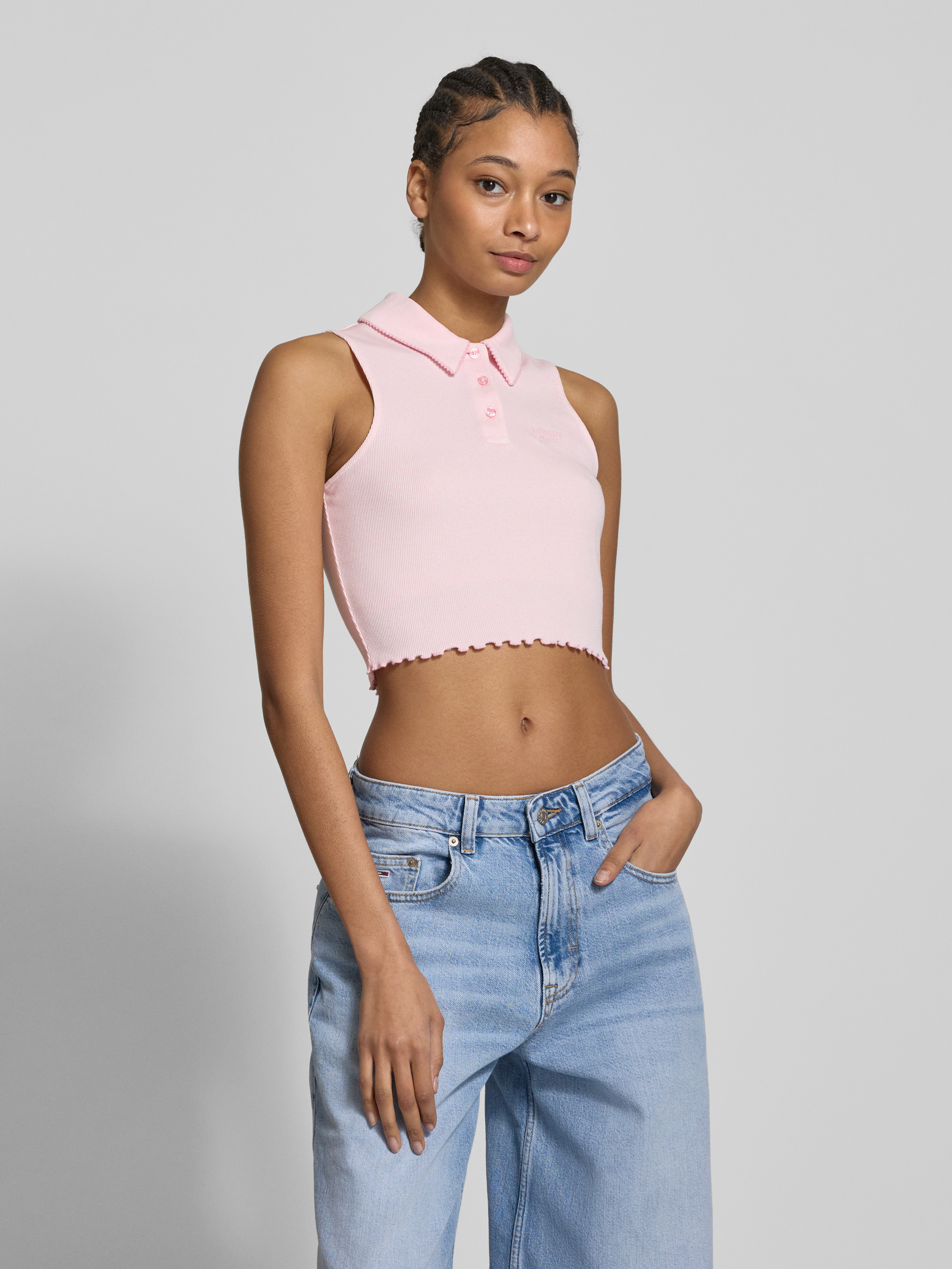 Tommy JeansCrop Top in Ripp-Optik in rosa