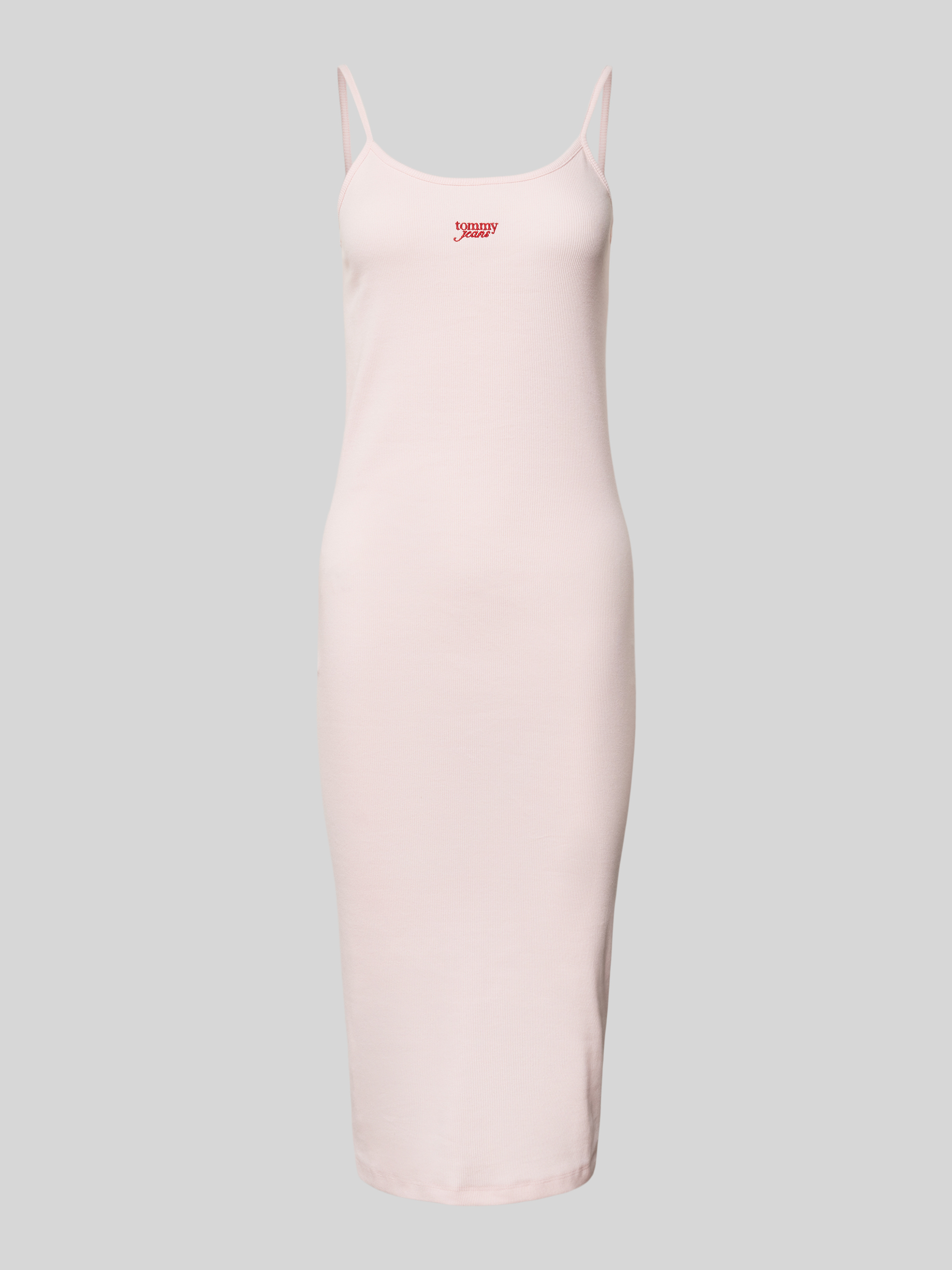 Das Midikleid von Tommy Jeans, gefertigt aus einem Baumwoll-Elasthan-Mix, schmiegt sich sanft an die Silhouette und betont gekonnt die Figur. Mit zarten Spaghettiträgern und einem dezenten Label-Detail kombiniert es Eleganz mit einem Hauch von Lässigkeit. Ideal für stilvolle Gelegenheiten.