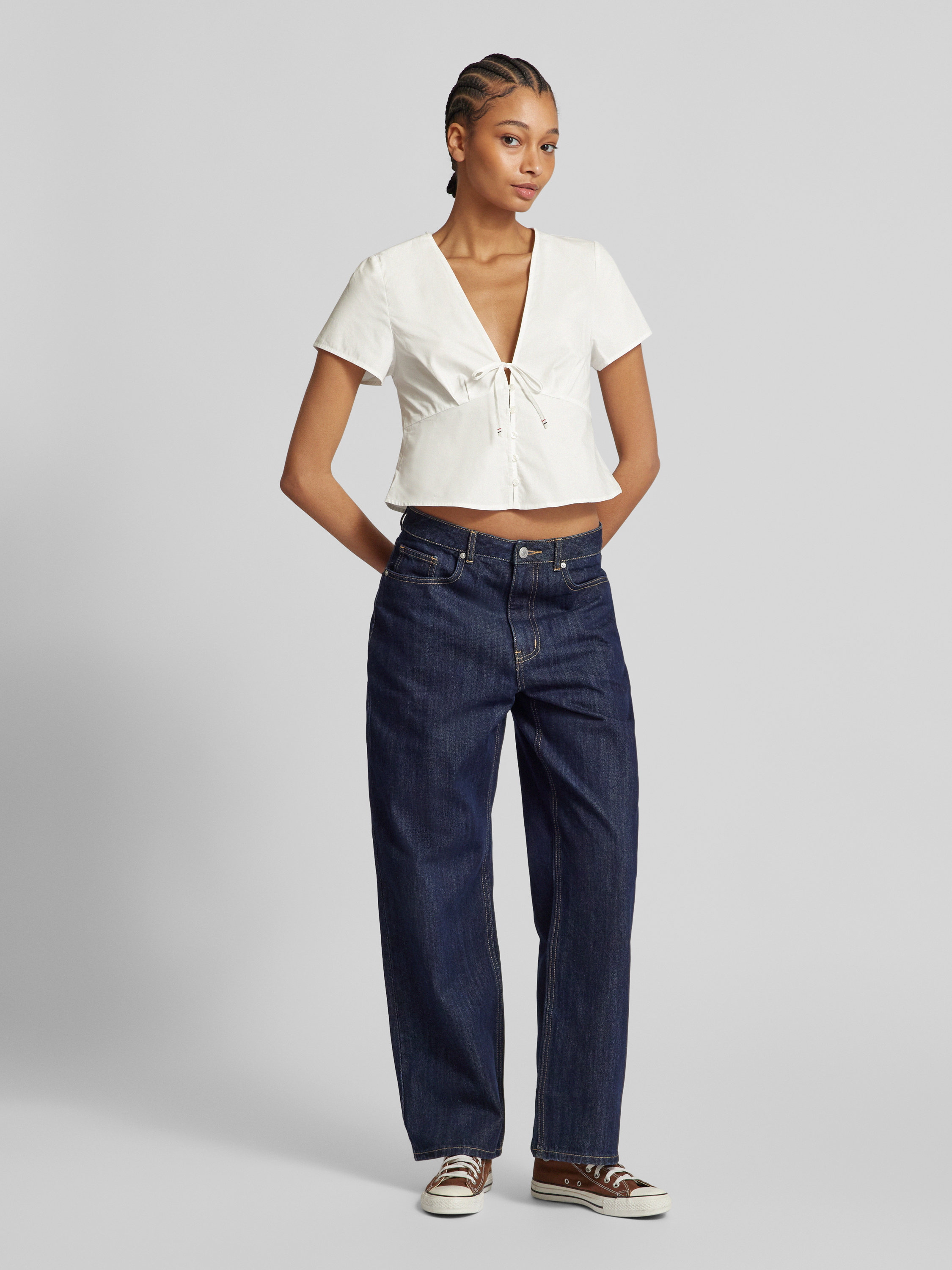 Die Regular Fit Bluse von Tommy Jeans aus reiner Baumwolle verbindet Komfort mit einem stilvollen V-Ausschnitt und einer praktischen Knopfleiste. Der 1/2-Arm-Schnitt sorgt für eine angenehme Passform, die sich mühelos in verschiedene Outfits integrieren lässt. Ideal für entspannte und gepflegte Looks.