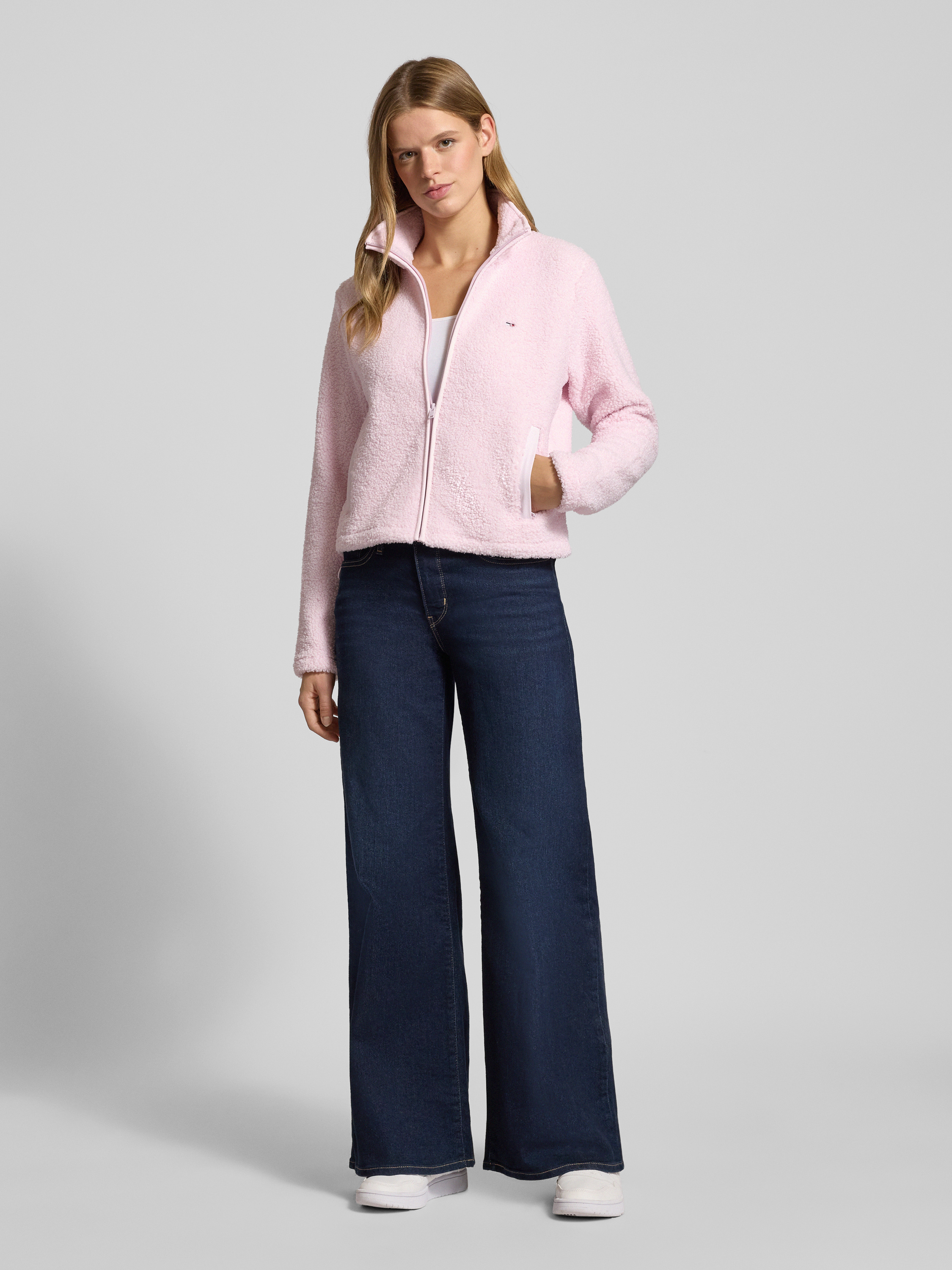 Die Regular Fit Teddy-Jacke von Tommy Jeans präsentiert sich in unifarbener Optik und lockerem Schnitt, wodurch sie vielseitig kombinierbar bleibt. Das angenehm weiche Teddyfell sorgt für eine behagliche Haptik, während der Stehkragen und die langen Ärmel Schutz bei kühleren Temperaturen bieten. Dezentes Logo-Stitching setzt einen feinen Akzent.