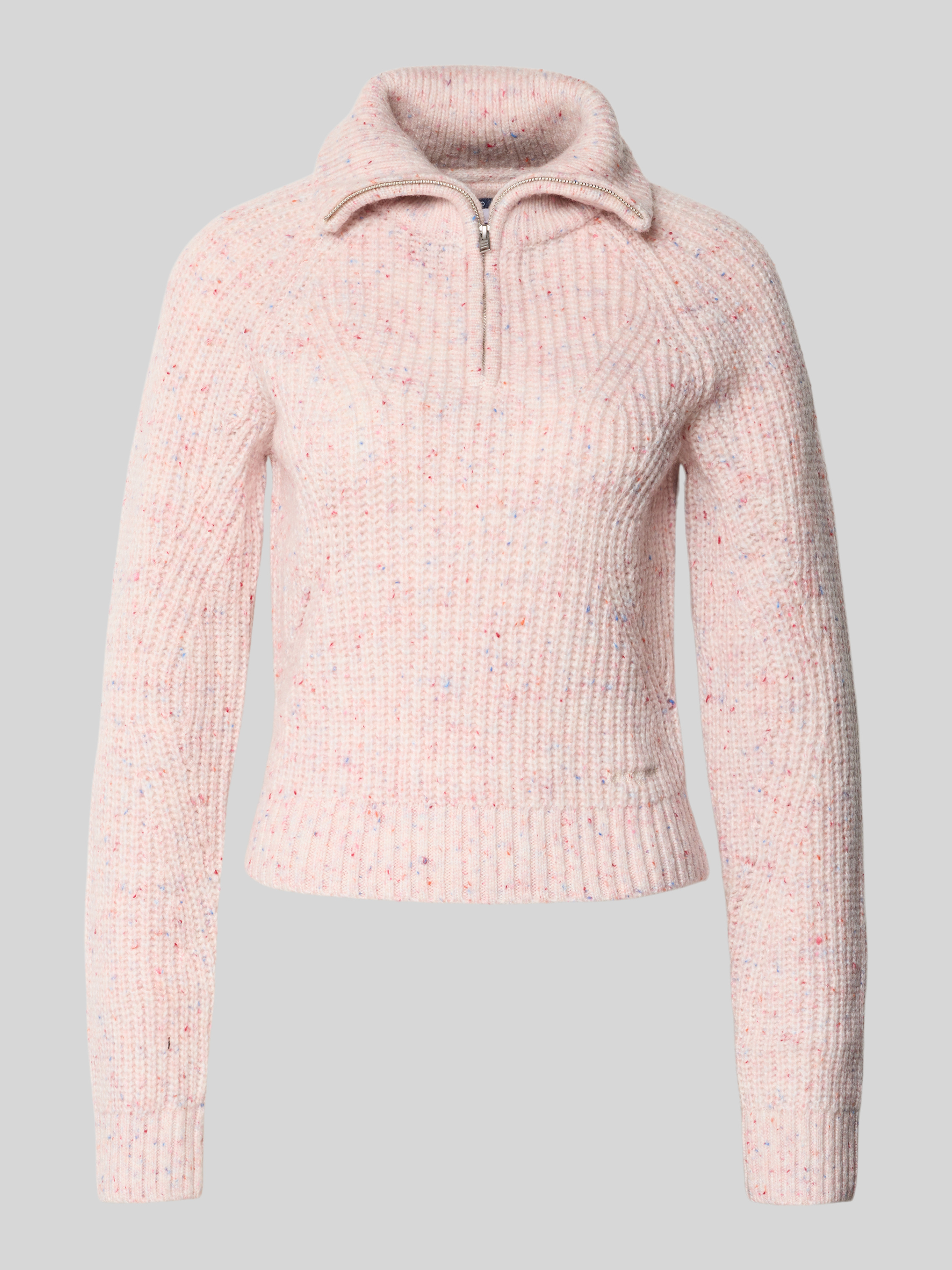 Der Damen-Troyer von Tommy Jeans, Modell Nep, zeigt sich in melierter Optik und angenehmem Regular Fit. Dank des Woll-Anteils im Rippstrick fühlt sich das Material weich an und wärmt an kühleren Tagen. Raglanärmel und der typische Troyerkragen ergänzen einen entspannten Alltagsstil.