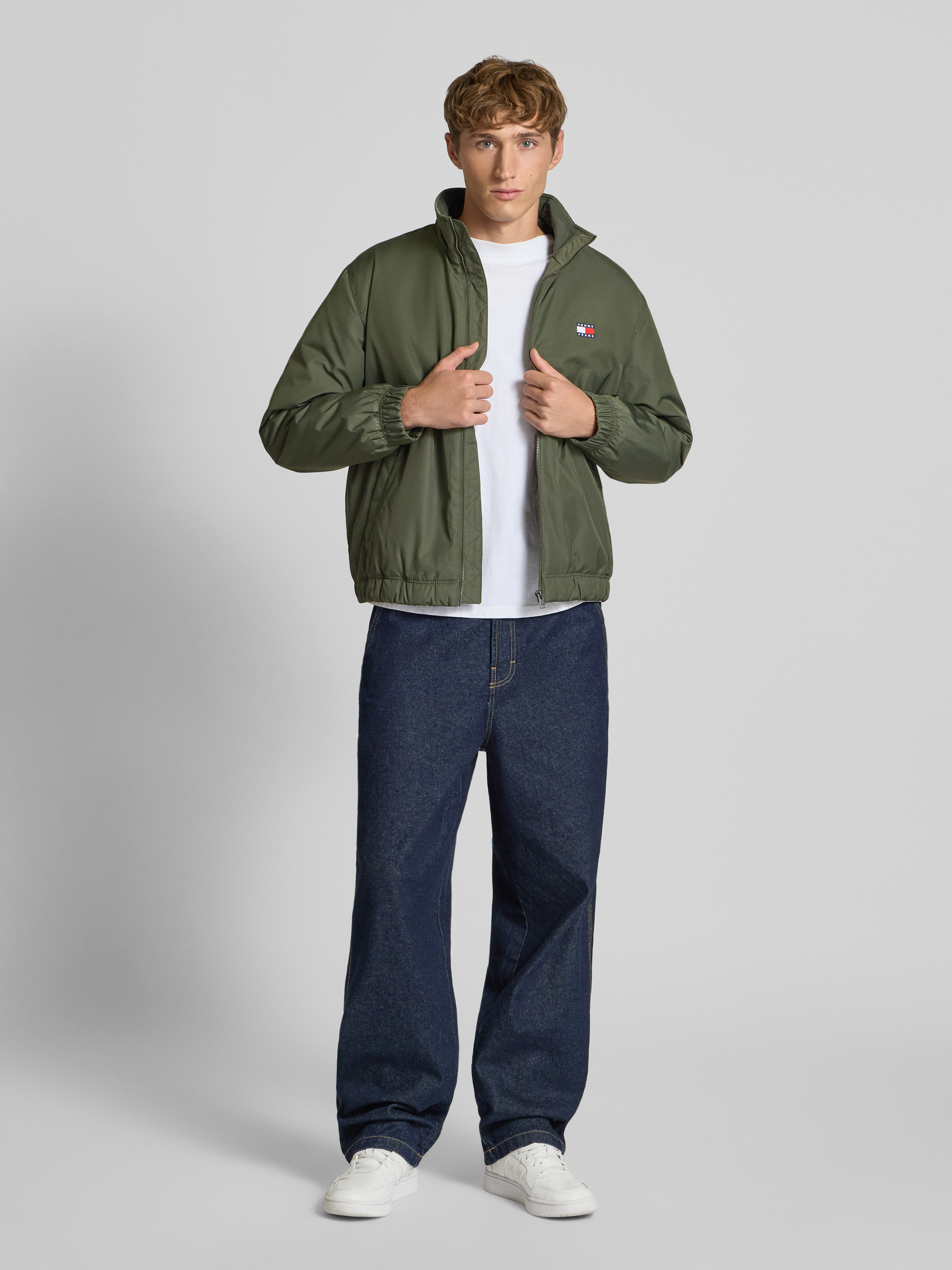 Die Herrenjacke Relaxed Fit Bomberjacke von Tommy Jeans kombiniert einen legeren Schnitt mit einem modernen Stehkragen und sorgt damit für angenehme Bewegungsfreiheit im Alltag. Die unifarbene Optik wirkt vielseitig und lässt sich unkompliziert kombinieren. Durch das lässige Design eignet sich das Modell besonders für entspannte Freizeitlooks.