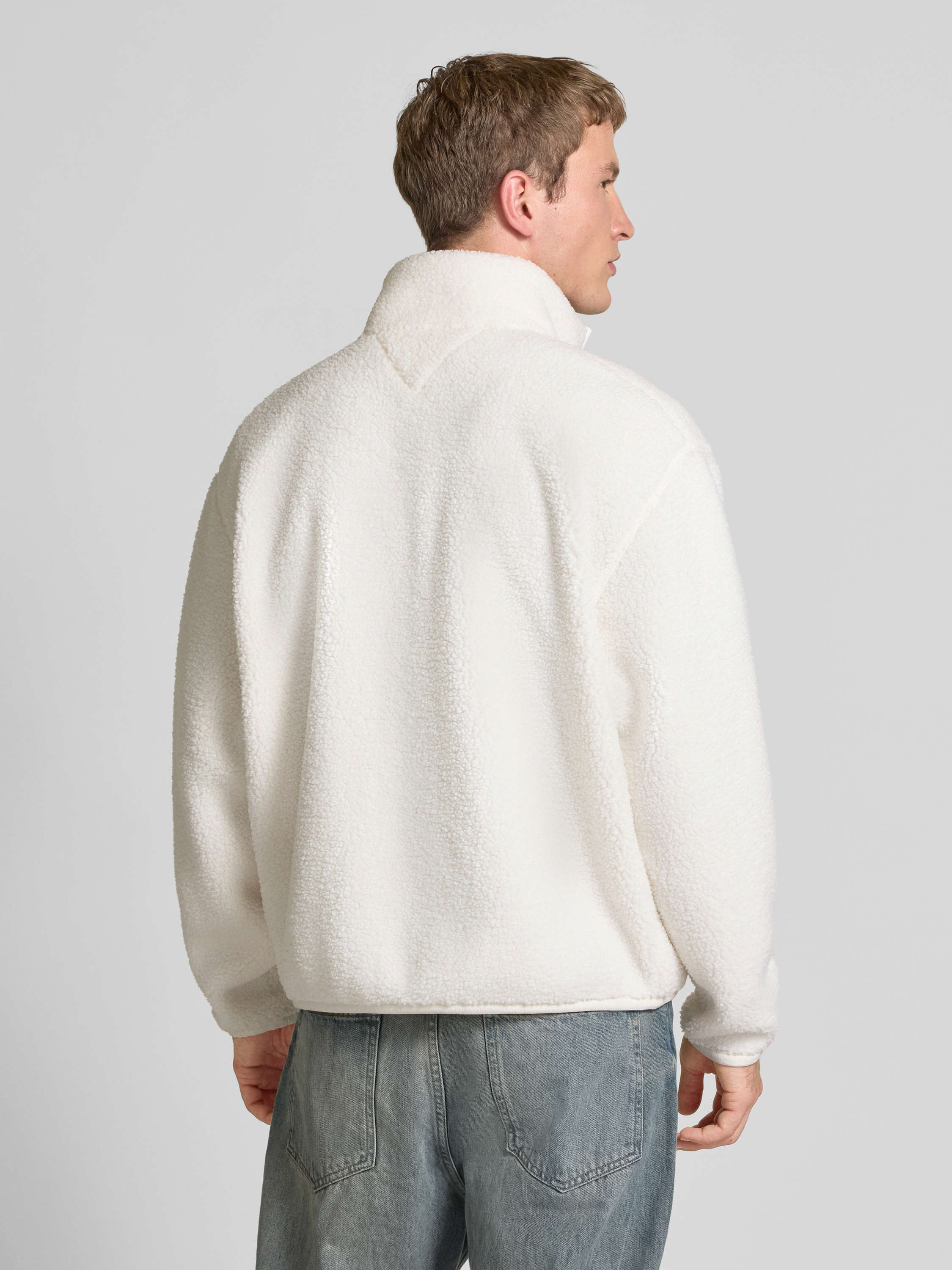 Die Relaxed Fit Jacke mit Teddyfell von Tommy Jeans zeichnet sich durch ihre strukturierte Optik und den legeren Schnitt aus, der Bewegungsfreiheit gewährt. Der Stehkragen und das weiche Fleece innen sorgen an kühleren Tagen für angenehme Wärme. Dezente Details wie ein Label Patch und praktische Eingrifftaschen runden das Design ab.