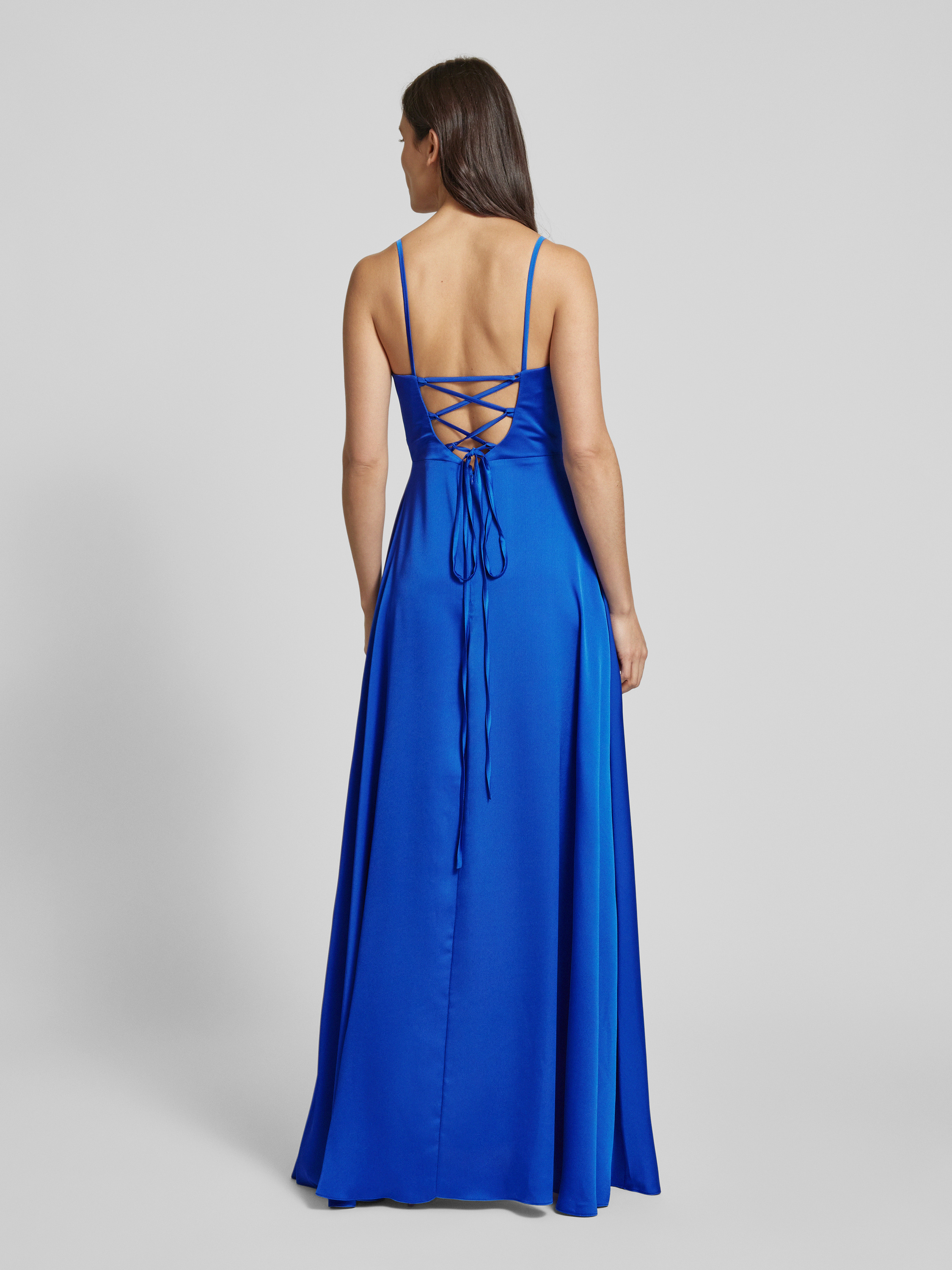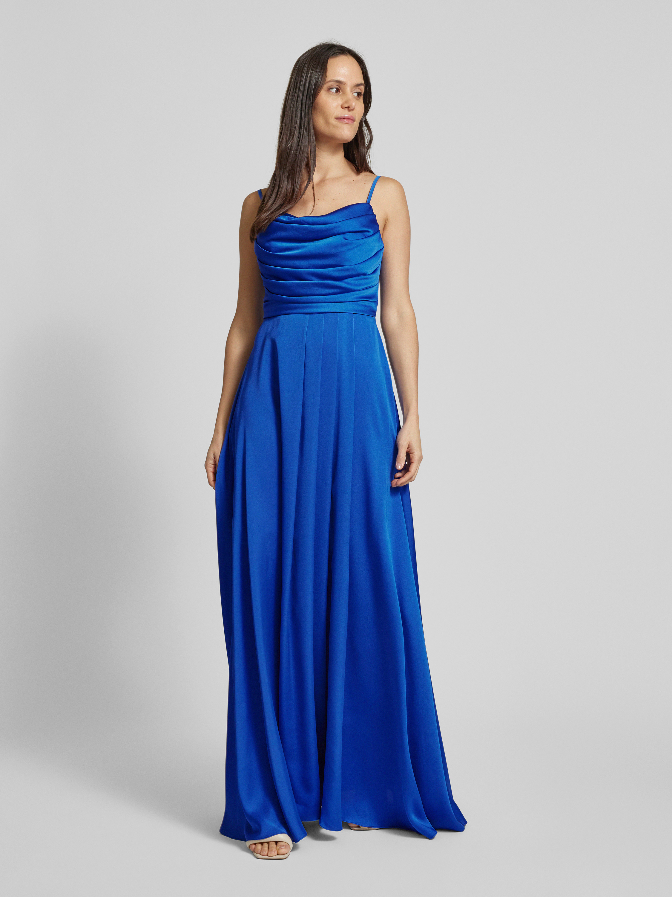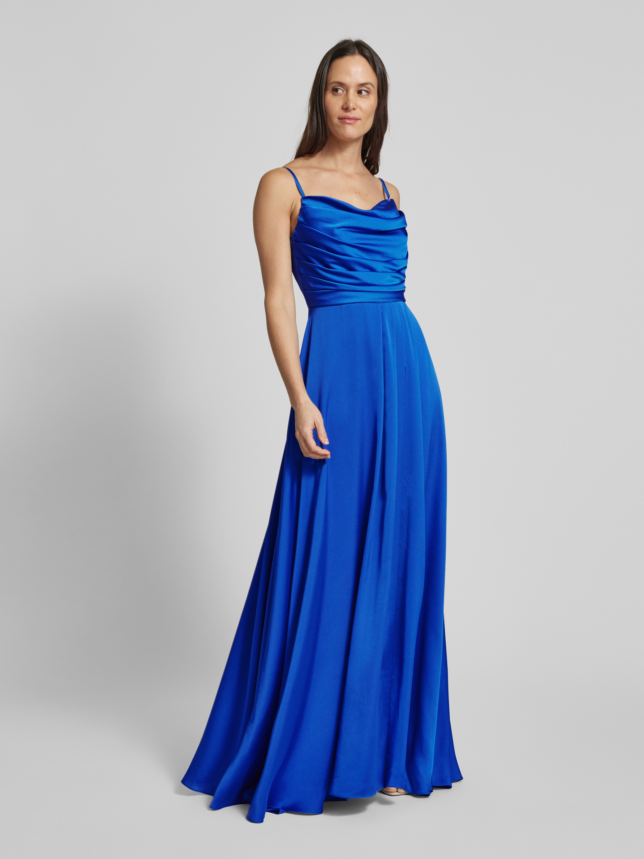 Das Abendkleid von TROYDEN COLLECTION aus fließendem Chiffon überzeugt durch seinen eleganten Wasserfall-Ausschnitt und den raffinierten Stufen-Look. Der taillierte Schnitt betont die Figur, während die feinen Spaghettiträger und gelegten Falten eine feminine Silhouette schaffen. Ideal für festliche Anlässe.