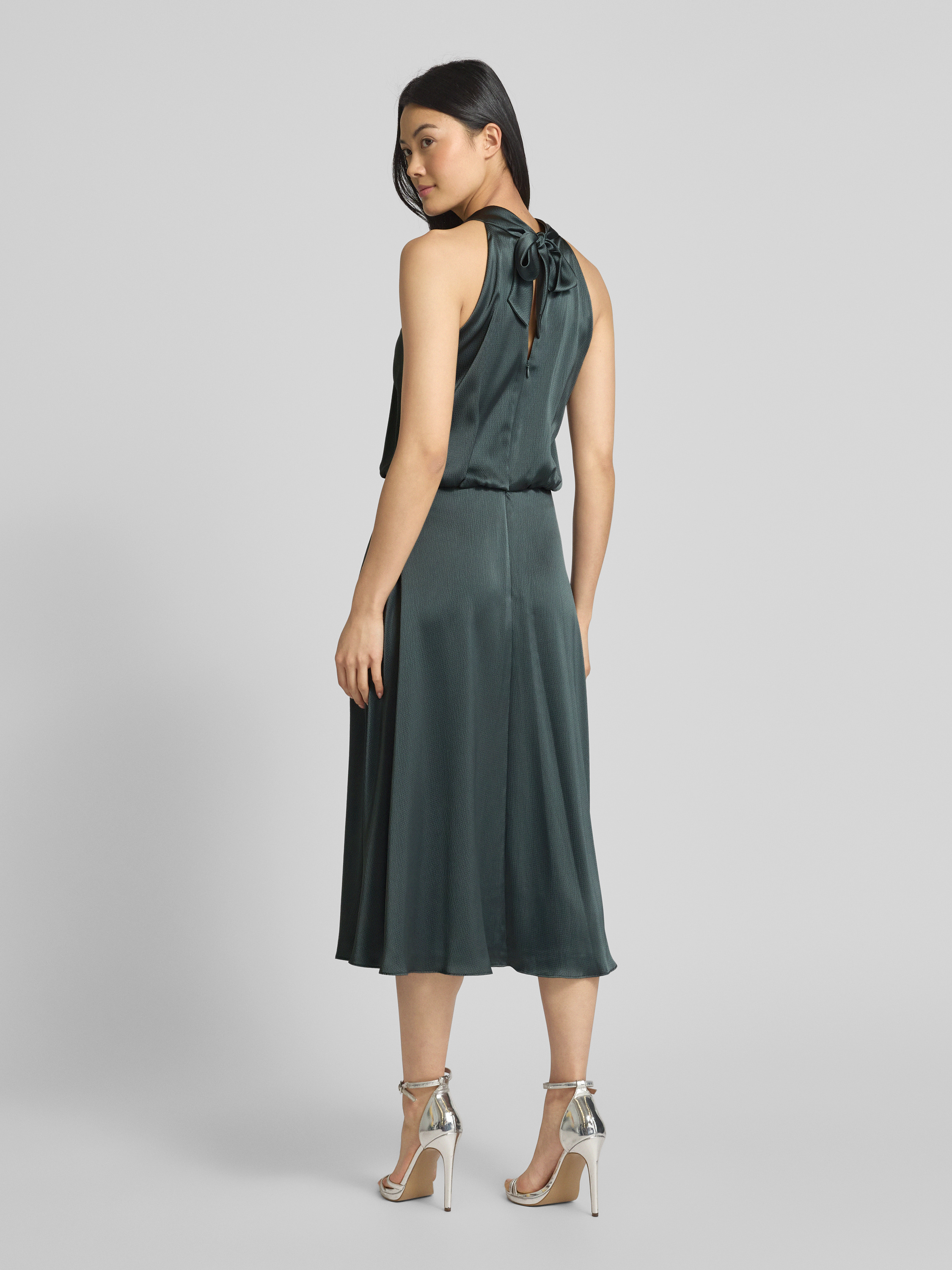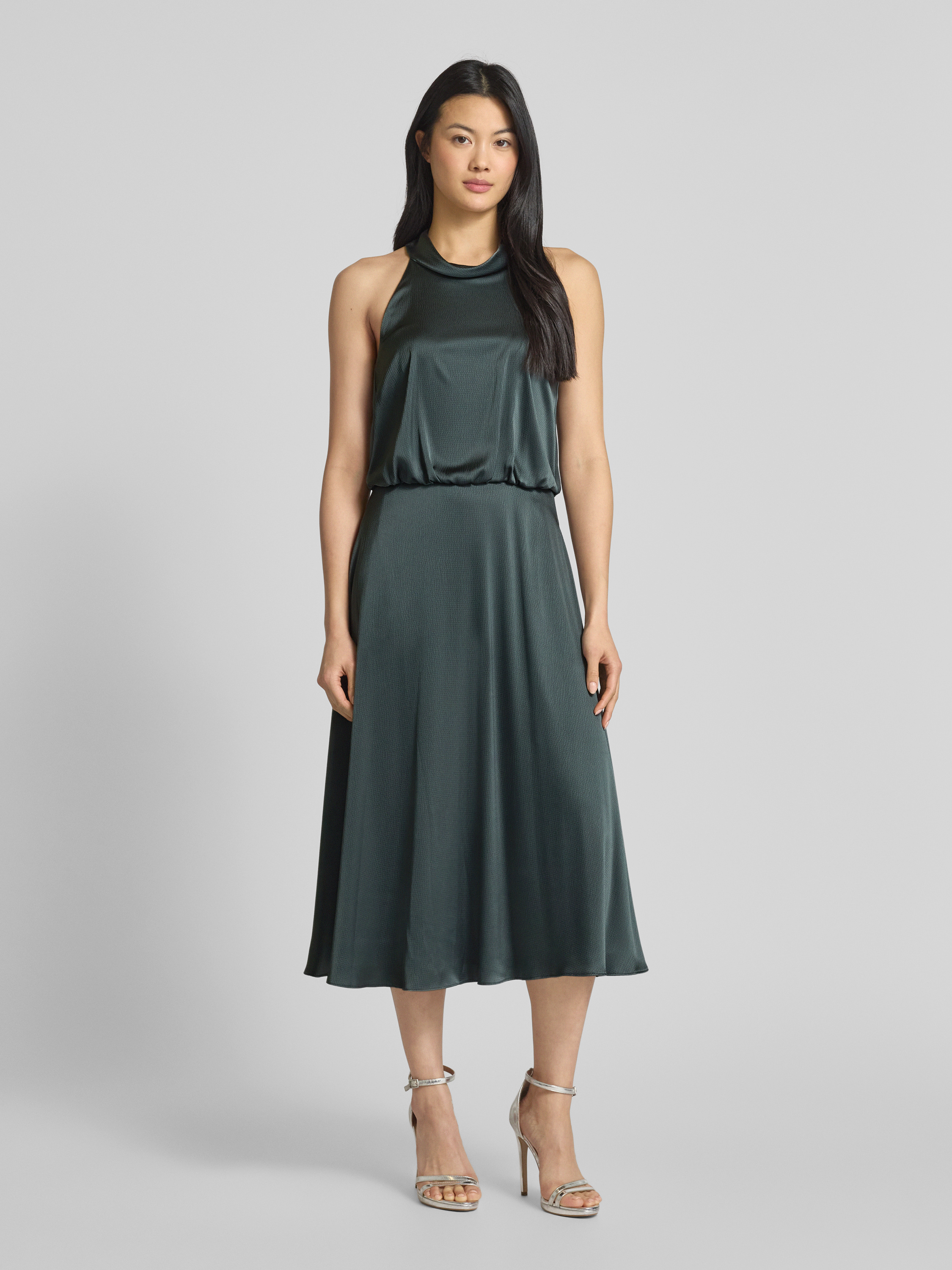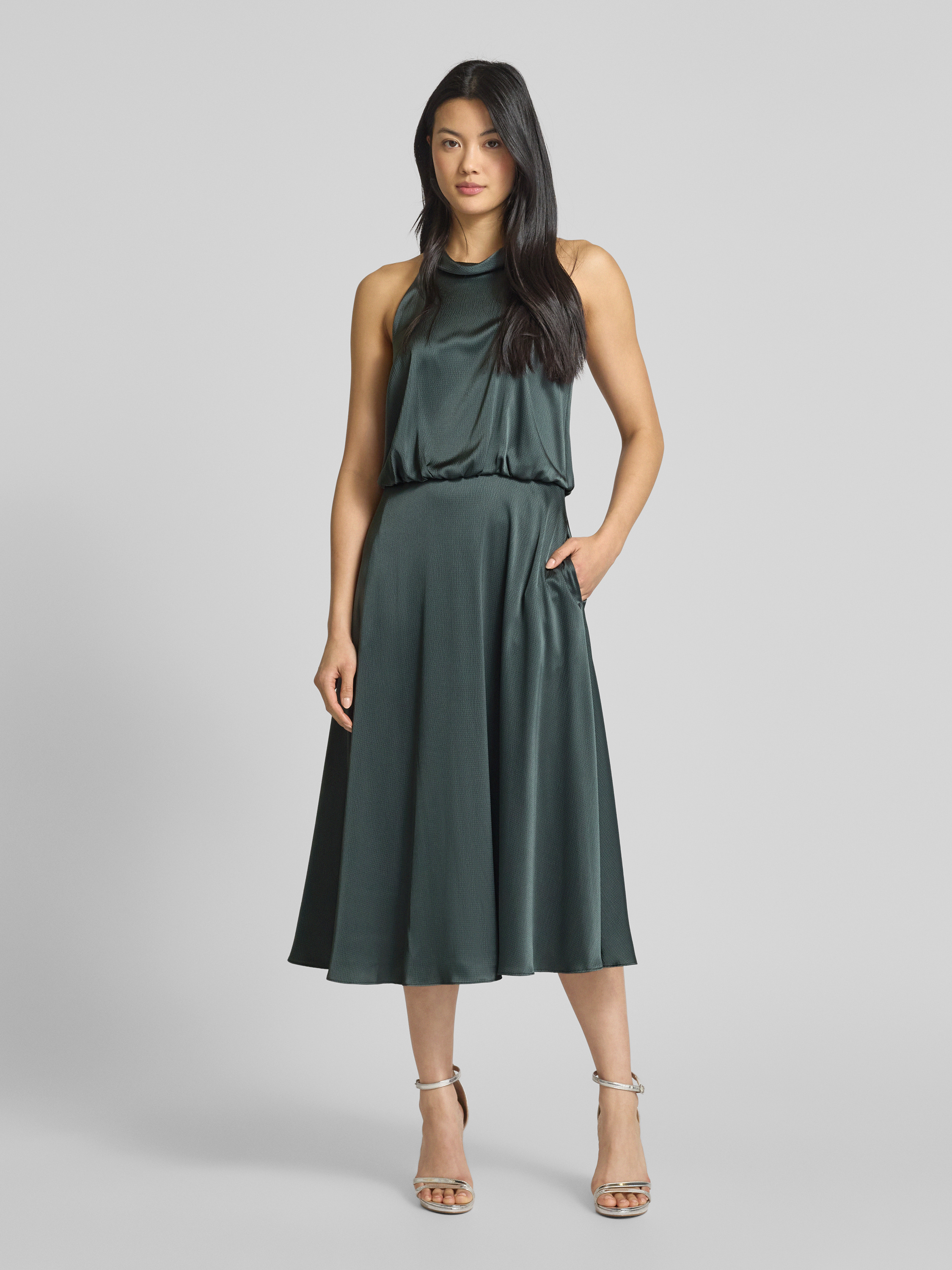 Das Damen Cocktailkleid von V by Vera Mont aus Satin zeigt sich in Midilänge mit lockerer Passform, wodurch Bewegungsfreiheit spürbar bleibt. Ein Neckholder und der Stufen-Look sorgen für einen modernen Akzent, während das Strukturmuster dem Look Tiefe verleiht. So eignet sich das Cocktailkleid mit Neckholder für festliche Anlässe.