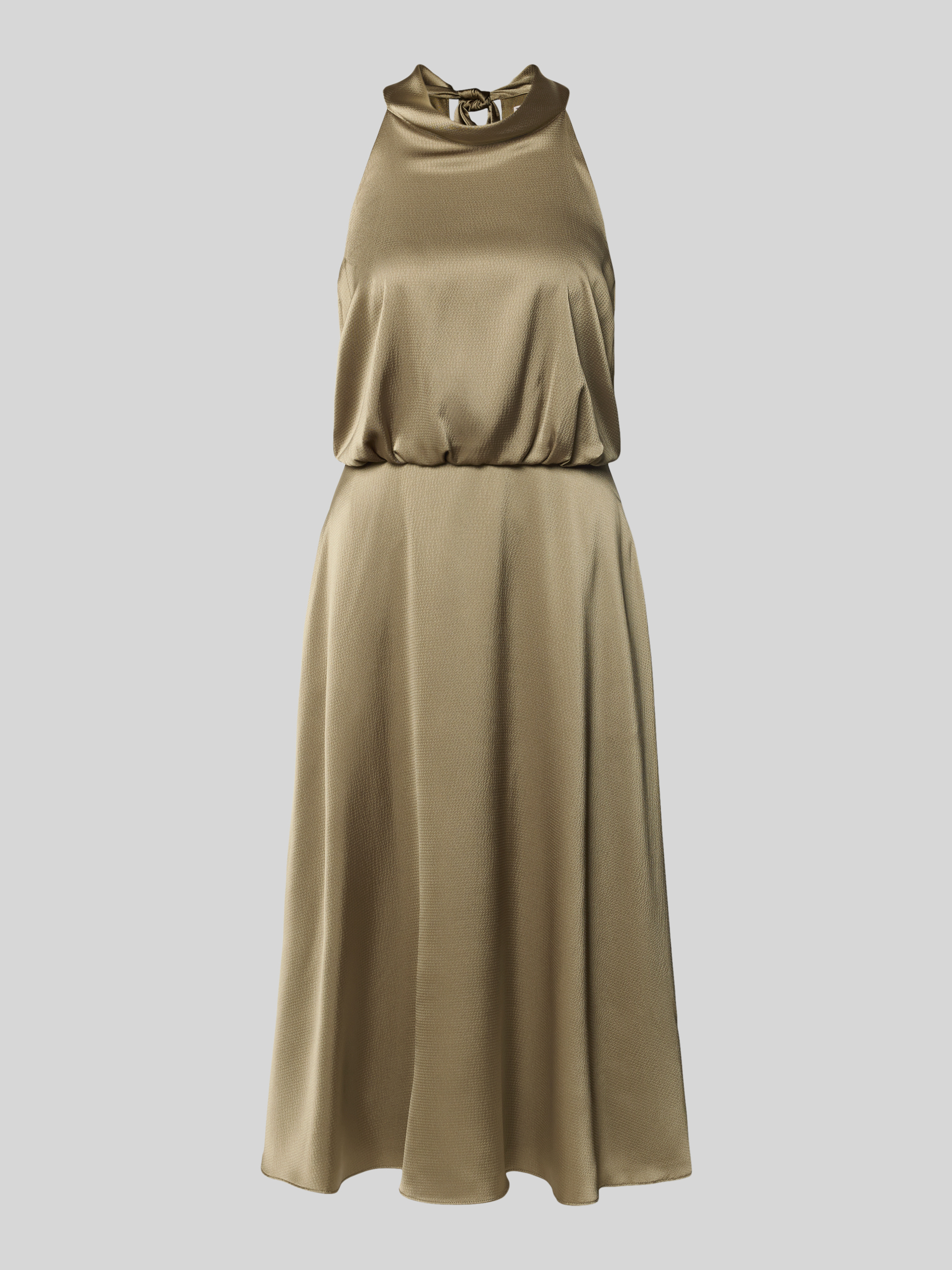 Das Damenkleid von V by Vera Mont zeichnet sich durch einen taillierten Schnitt und einen eleganten Neckholder aus, wodurch es eine feminine Silhouette formt. Durch den Material-Mix mit Stretch-Anteil sitzt das Midikleid angenehm und ermöglicht Bewegungsfreiheit. Eine rückseitige Schnürung unterstreicht die individuelle Passform.