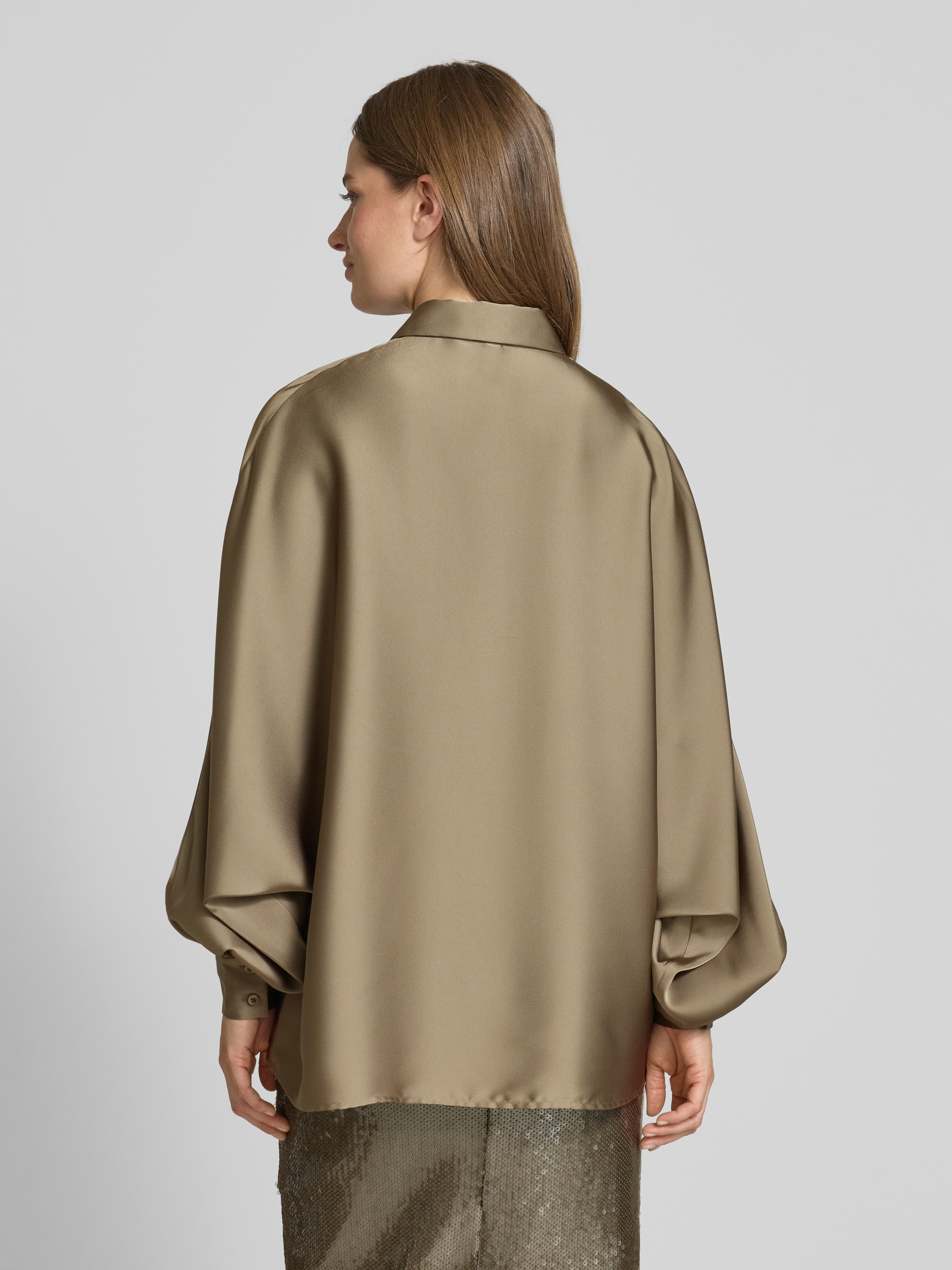 Die V by Vera Mont Bluse im entspannten Schnitt vereint stilvolle Eleganz mit lässigem Komfort. Der fließende Satin umschmeichelt die Haut, während der klassische Umlegekragen eine zeitlose Note hinzufügt. Ideal für vielfältige Anlässe, bietet sie Bewegungsfreiheit und mühelosen Chic.