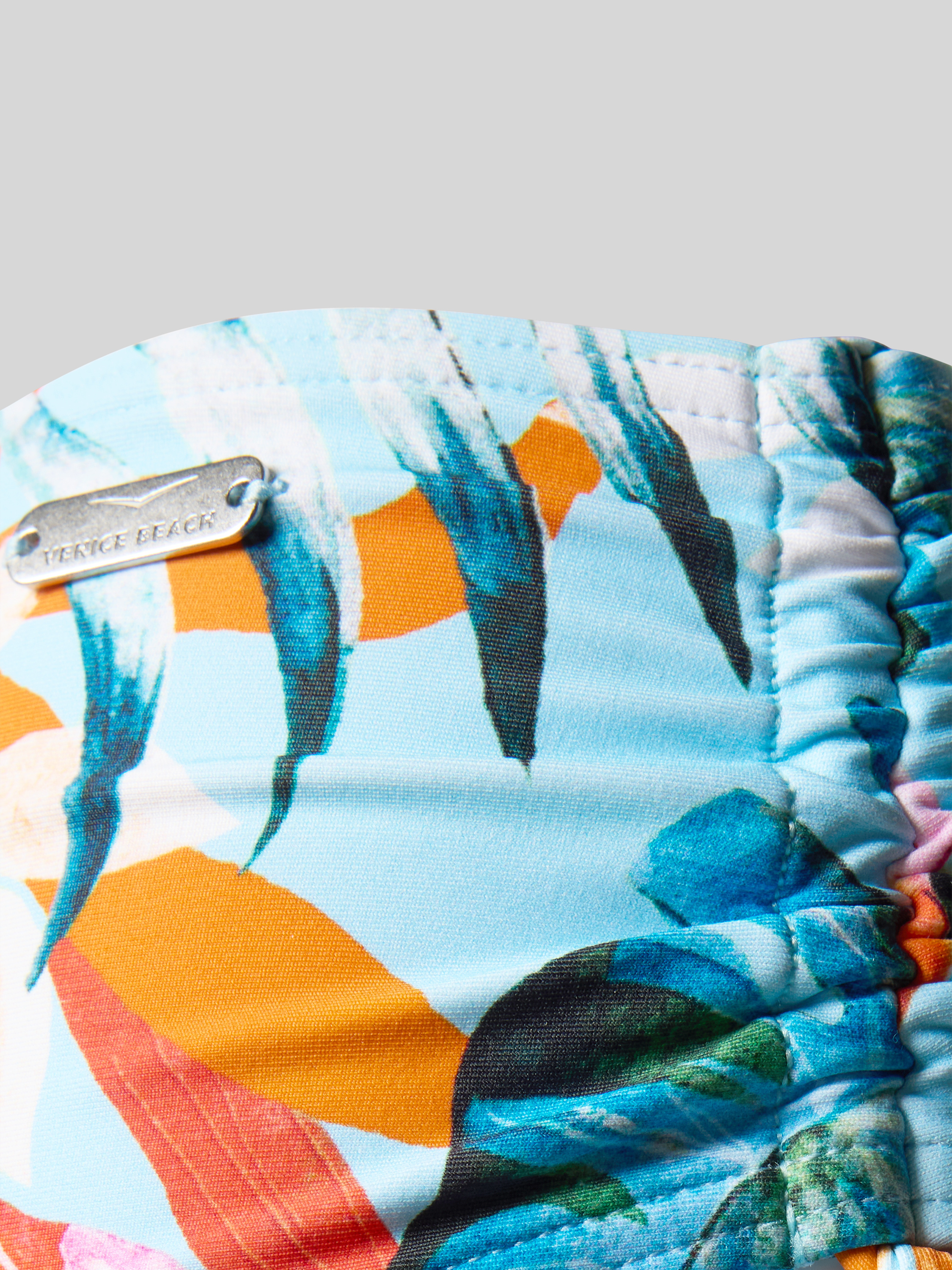 Die Bikini-Hose Modell 'Caru' von VENICE BEACH kombiniert einen elastischen Material-Mix mit einer eng anliegenden Passform, die sich angenehm an die Körperform schmiegt. Ein floraler Allover-Print verleiht dem Design eine frische Note, während dezente Raffungen interessante Akzente setzen. Die Logo-Applikation rundet das Gesamtbild harmonisch ab.