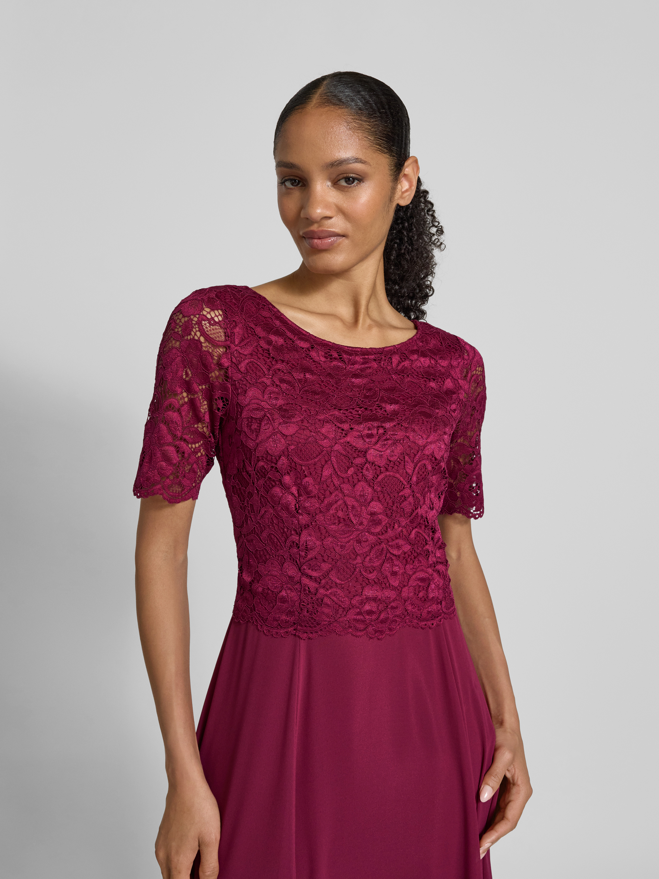 Vera MontAbendkleid mit Spitze und Rundhalsausschnitt in bordeaux