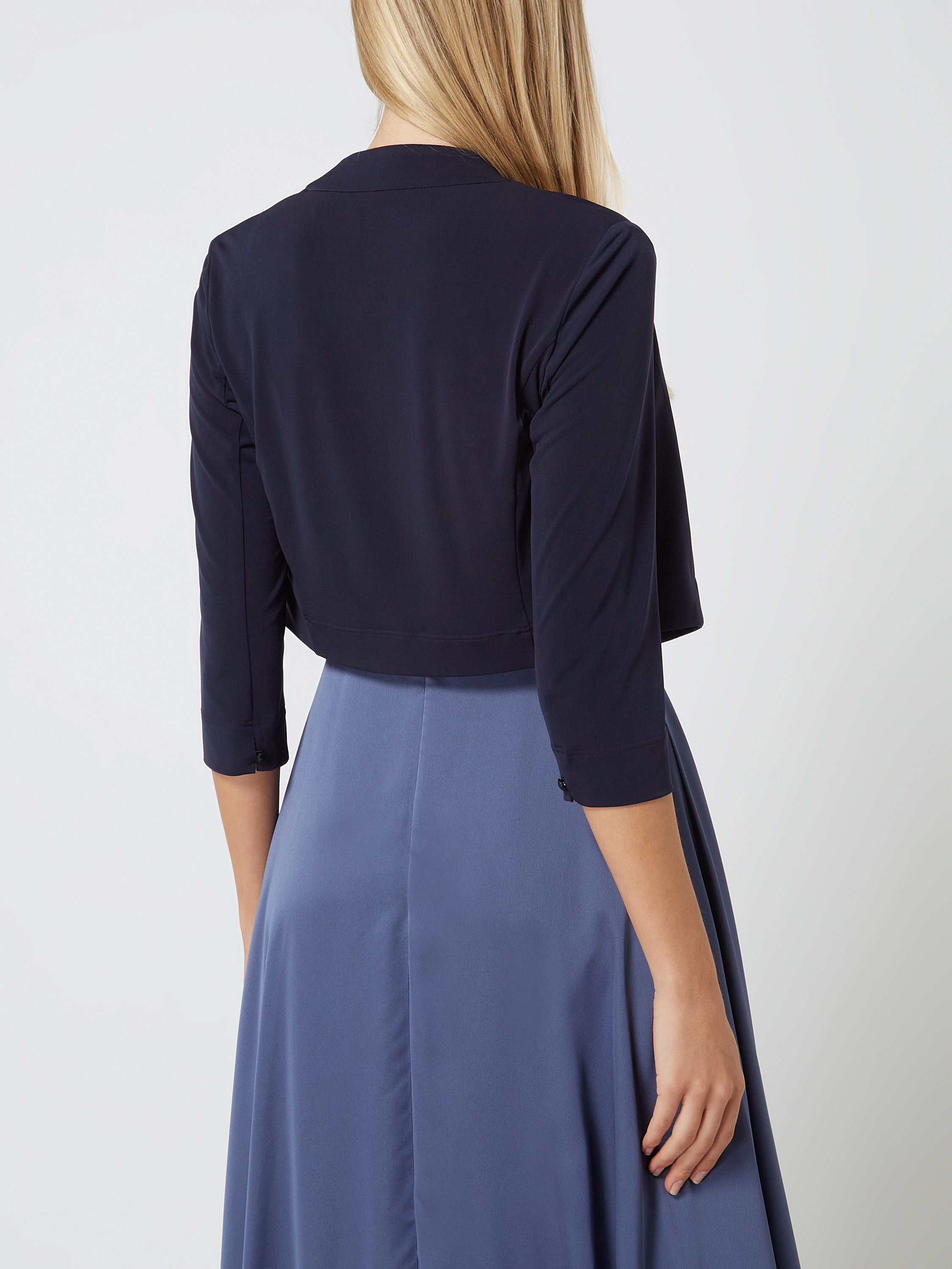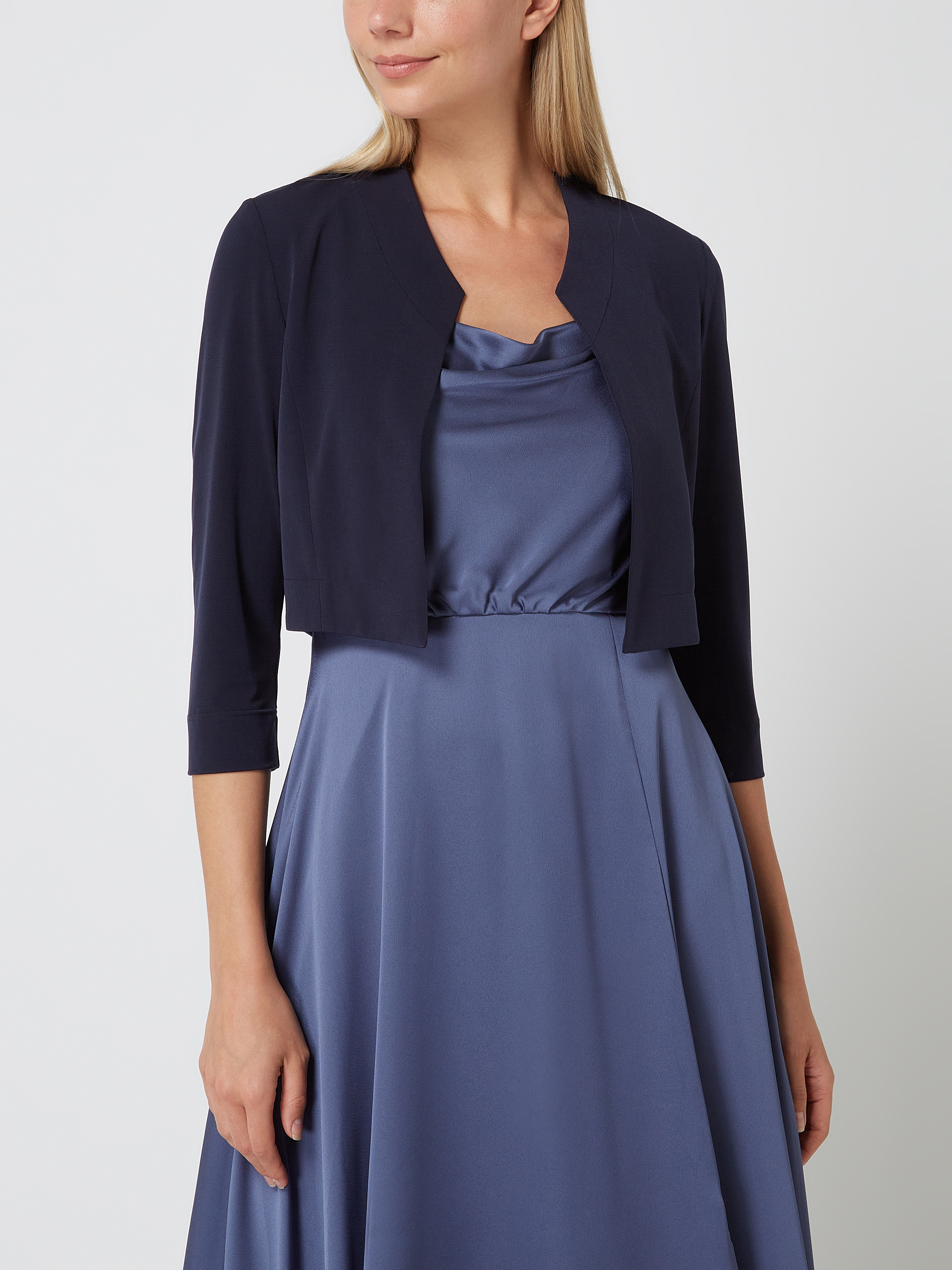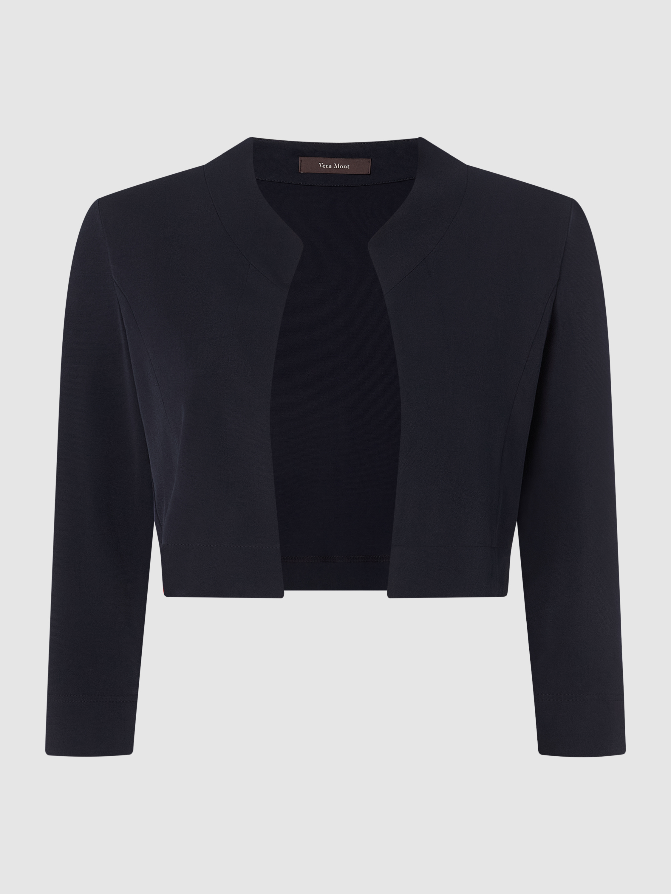 Der Bolero von VM Vera Mont kombiniert einen eleganten Material-Mix mit einem Hauch von Stretch, der für Bewegungsfreiheit sorgt. Der gerade Schnitt und die offene Vorderseite schaffen eine moderne Silhouette, während Sportmanschetten einen dezenten, sportlichen Akzent setzen. Ideal für vielseitige Stylingmöglichkeiten.