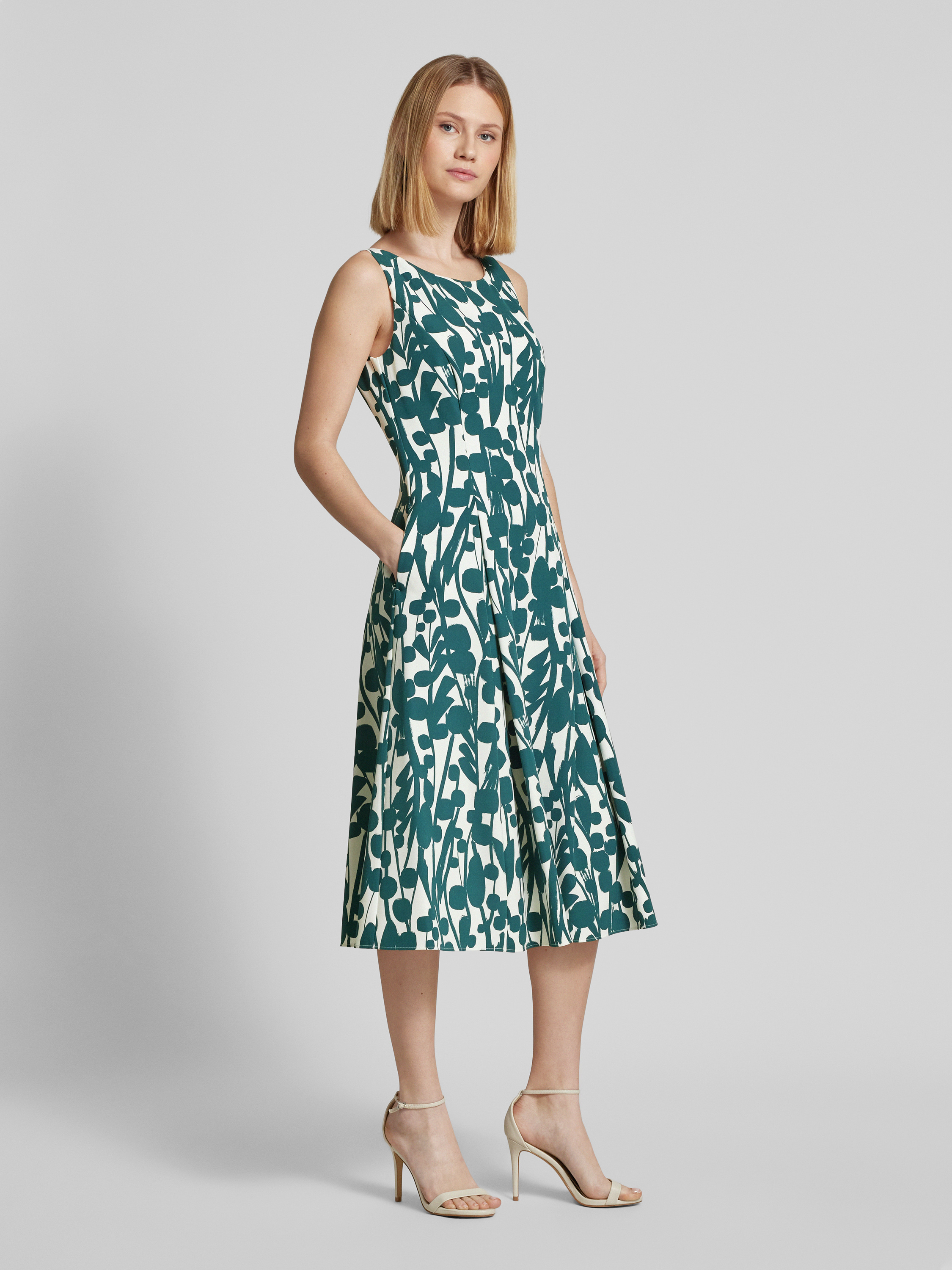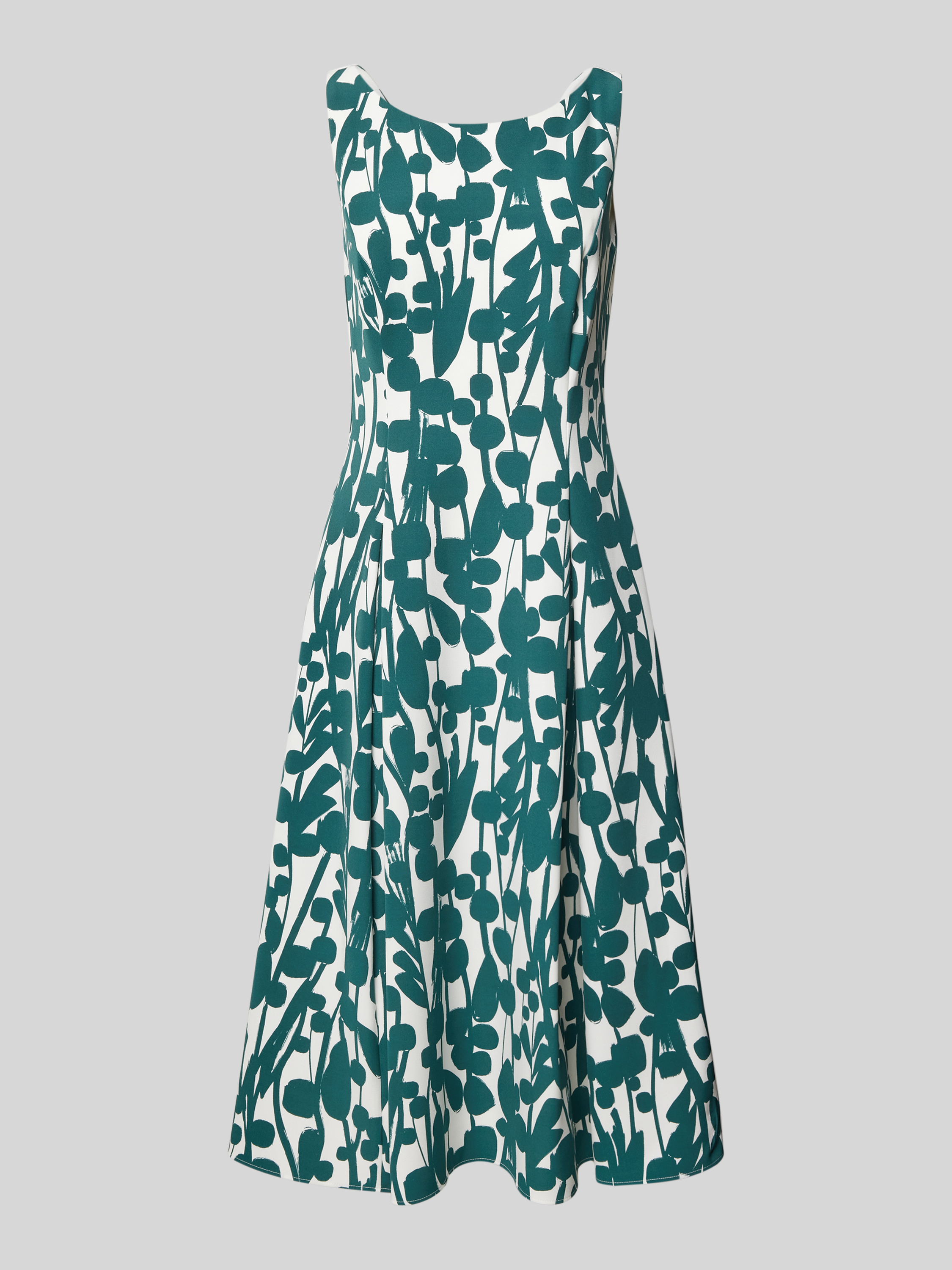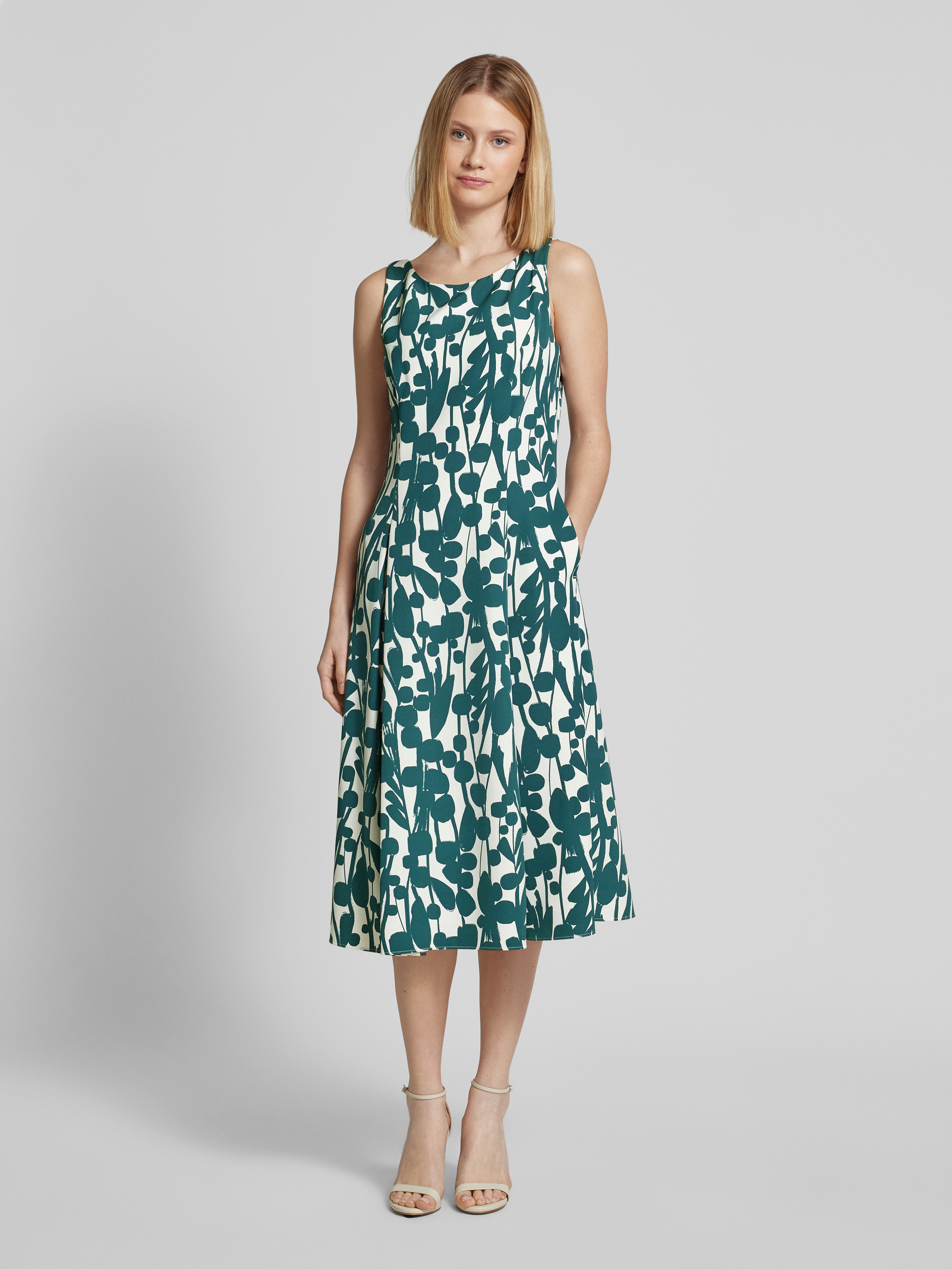 Das Cocktailkleid von Vera Mont vereint einen eleganten Material-Mix mit einer schmeichelhaften A-Linie und einem zeitlosen Rundhalsausschnitt. Die Kellerfalten verleihen dem Midikleid eine dynamische Silhouette. Es eignet sich für festliche Anlässe und unterstreicht einen stilvollen Auftritt.