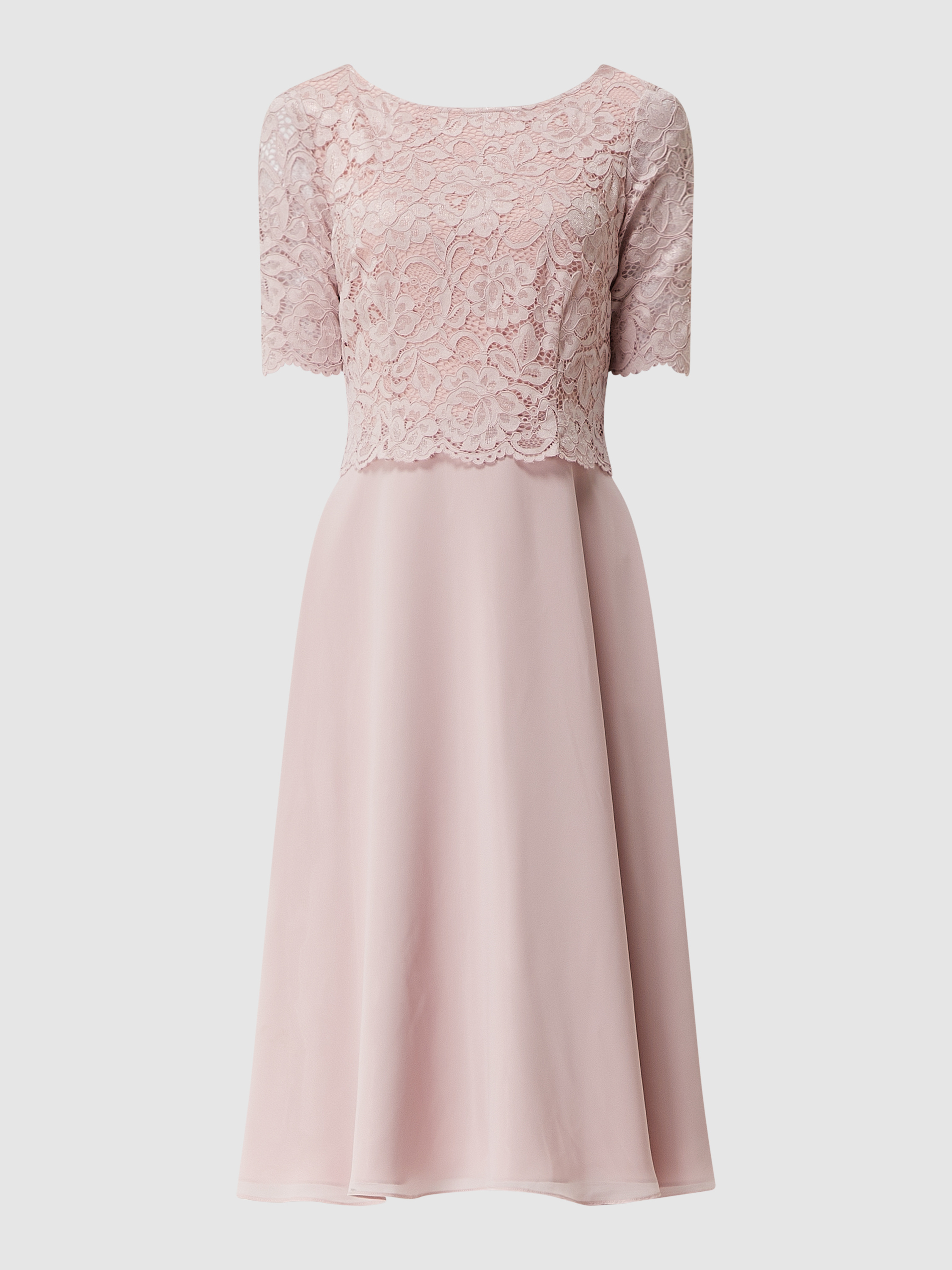Das Cocktailkleid von Vera Mont präsentiert sich in einem eleganten, taillierten Schnitt, der durch den hochwertigen Material-Mix mit Stretch-Anteil für eine angenehme Passform sorgt. Der zarte Spitzenbesatz verleiht dem unifarbenen Design eine besondere Note, während das blickdichte Unterkleid für ein sicheres Tragegefühl sorgt. Ideal für festliche Anlässe und stilvolle Abende.