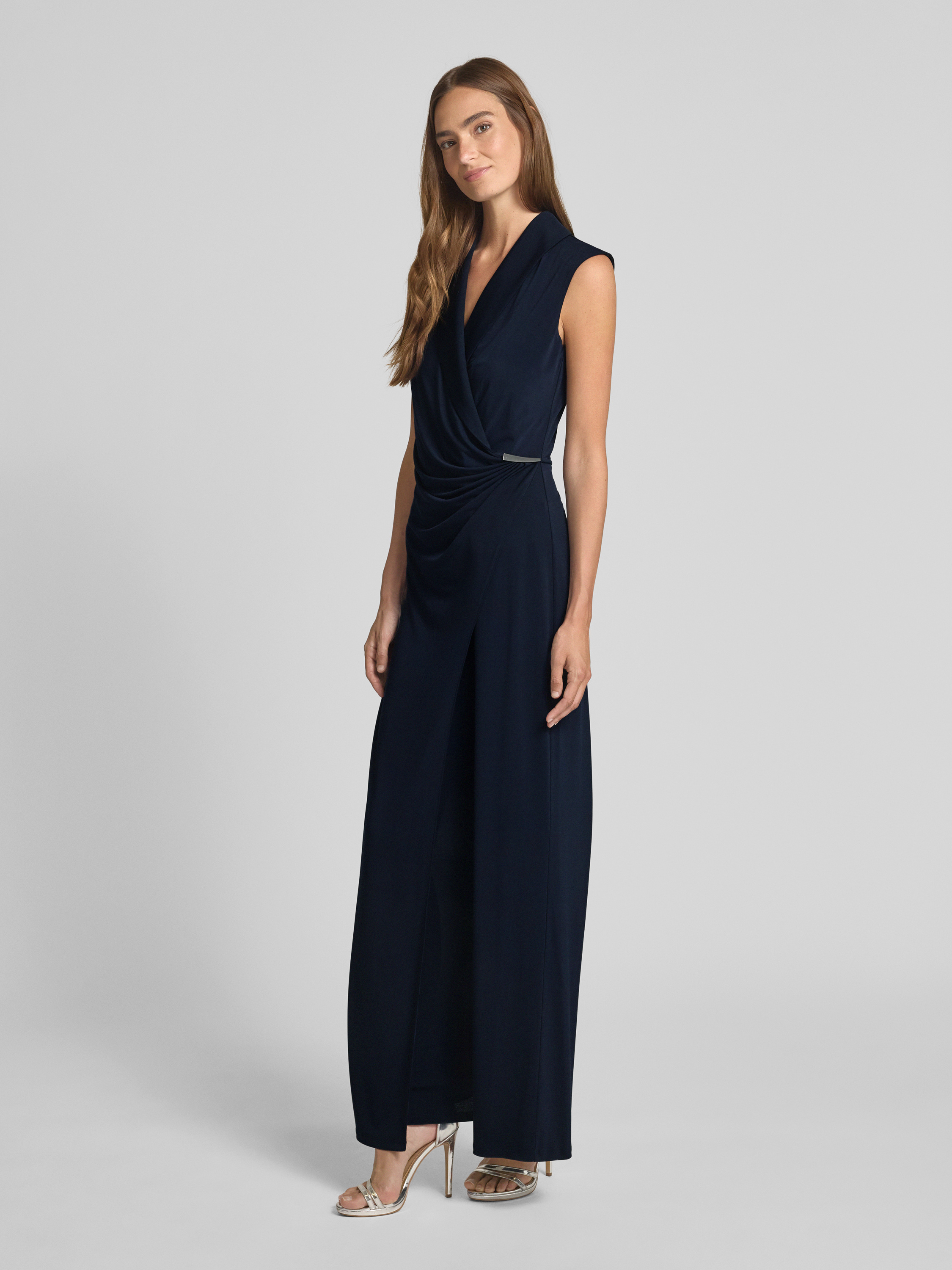 Der Damen Jumpsuit von Vera Mont beeindruckt durch seinen geraden Schnitt und die seitliche Raffung, die eine schmeichelhafte Silhouette erzeugt. Der Material-Mix mit Stretch-Anteil sorgt für Bewegungsfreiheit, während die Wickel-Optik mit Reverskragen und V-Ausschnitt Eleganz verleiht. Ideal für stilvolle Anlässe.