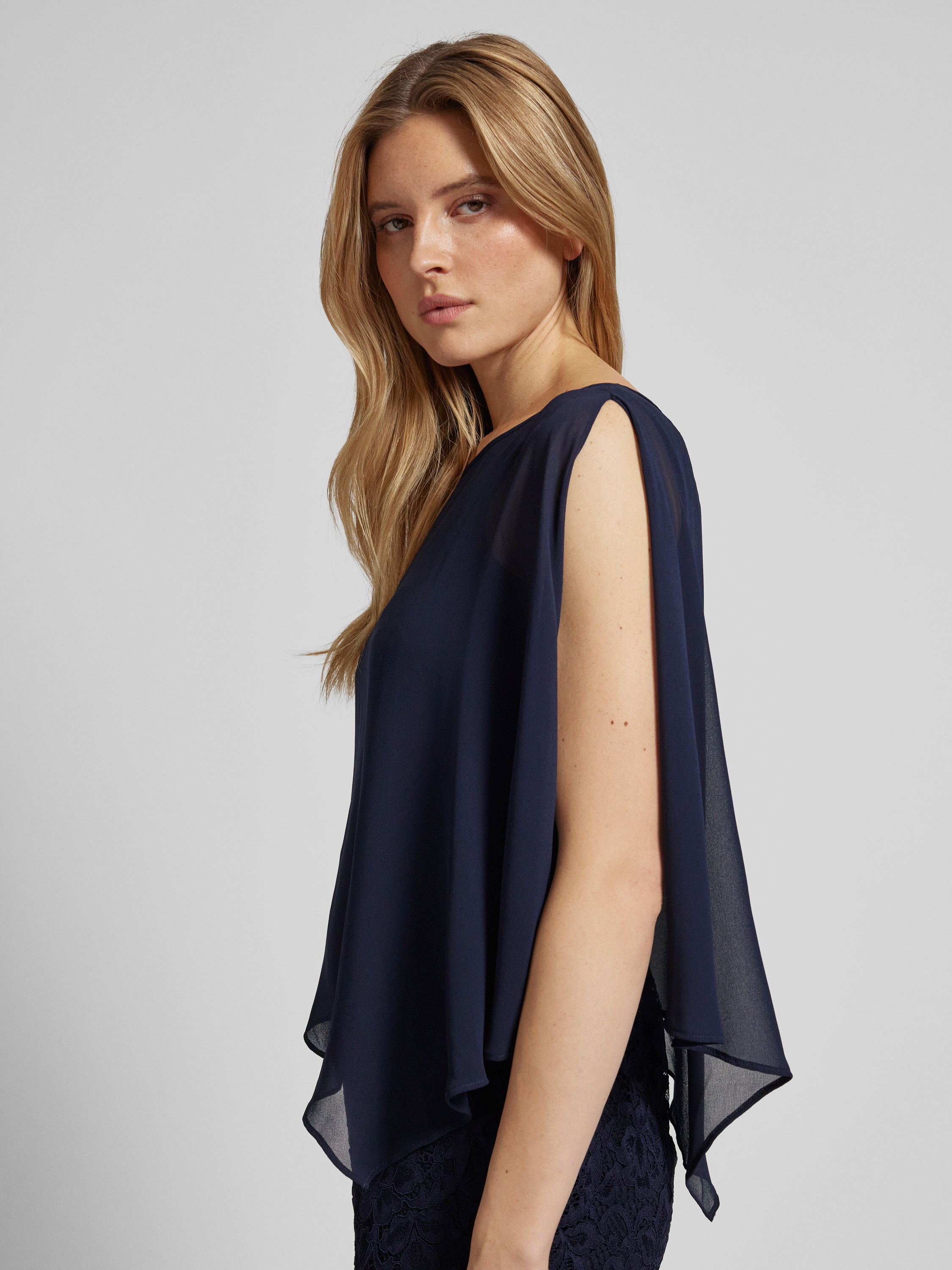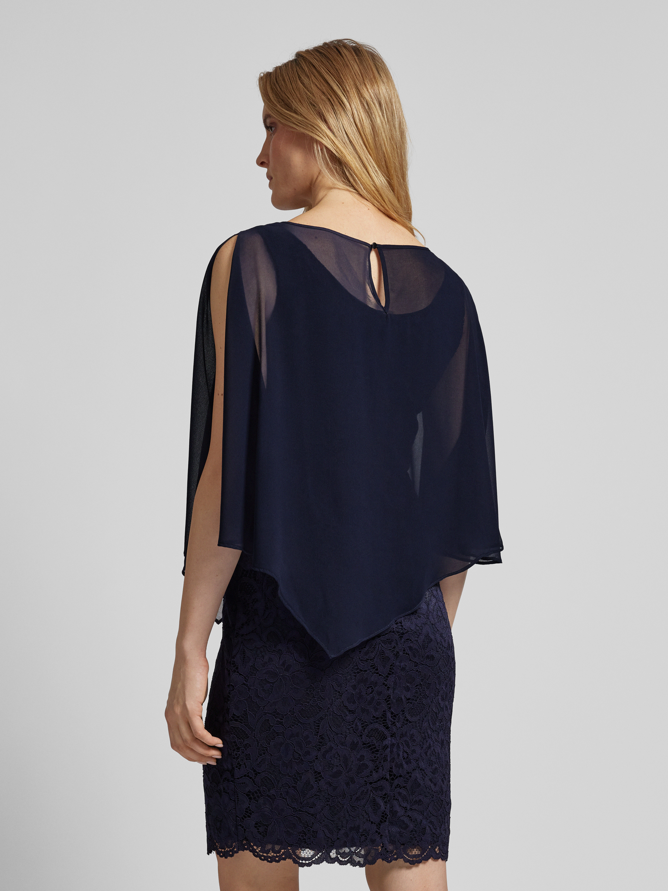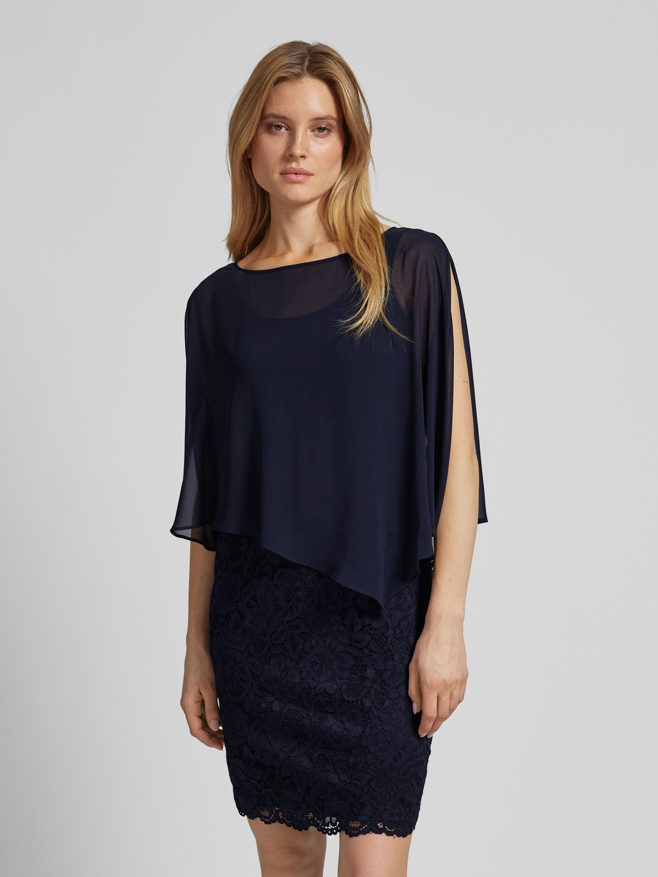 Vera MontKnielanges Cocktailkleid im Double-Layer-Look in dunkelblau