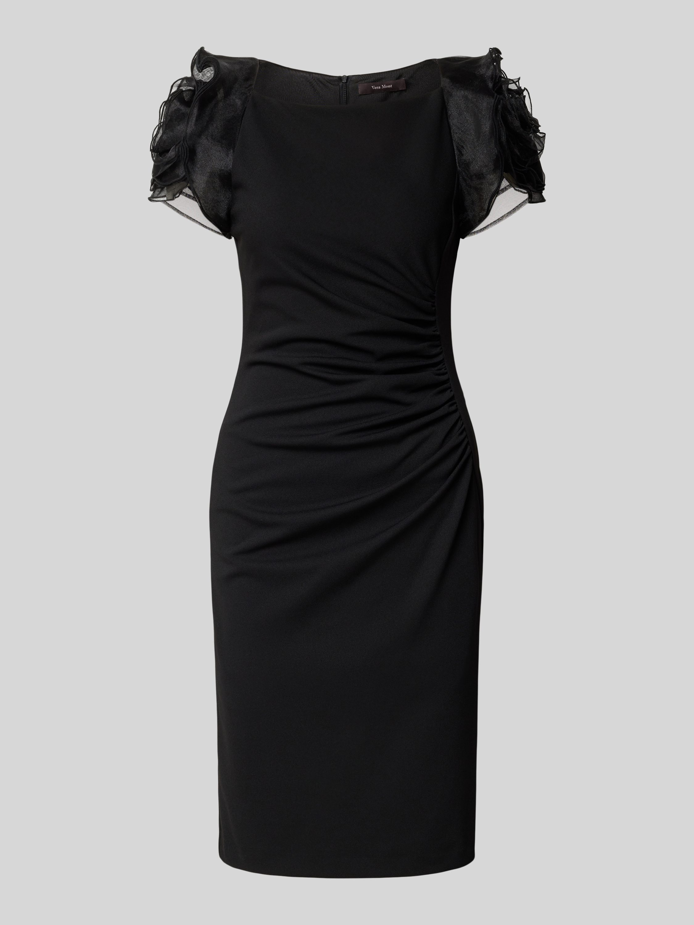 Das Damen Cocktailkleid von Vera Mont zeichnet sich durch einen geraden Schnitt aus, der in Kombination mit raffinierten Raffungen für eine schmeichelnde Silhouette sorgt. Der Material-Mix mit Stretch-Anteil ermöglicht Bewegungsfreiheit, sodass man sich auch bei längeren Anlässen wohlfühlt. Durch die Knielänge wirkt das Cocktailkleid vielseitig und eignet sich ideal für verschiedene Gelegenheiten.