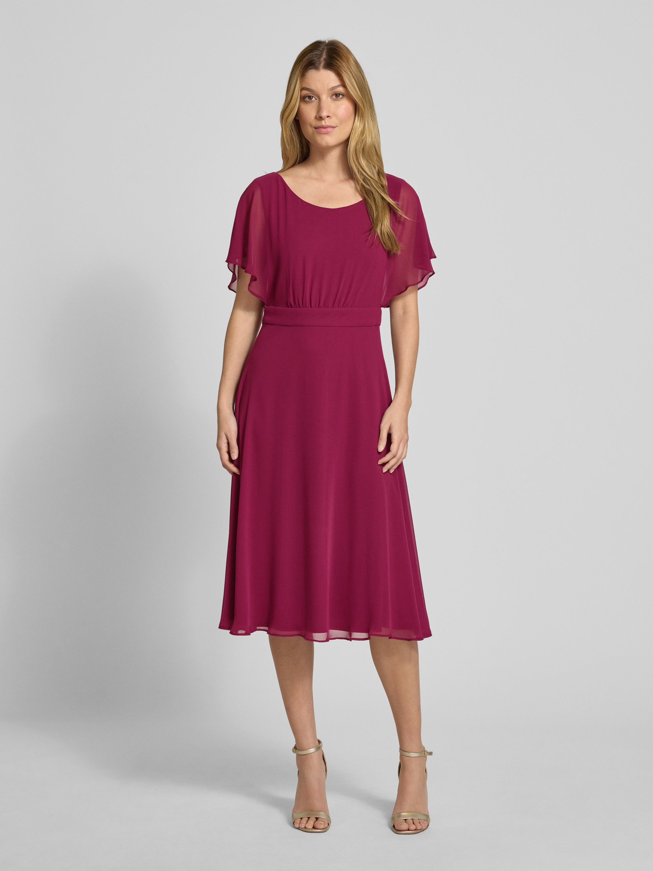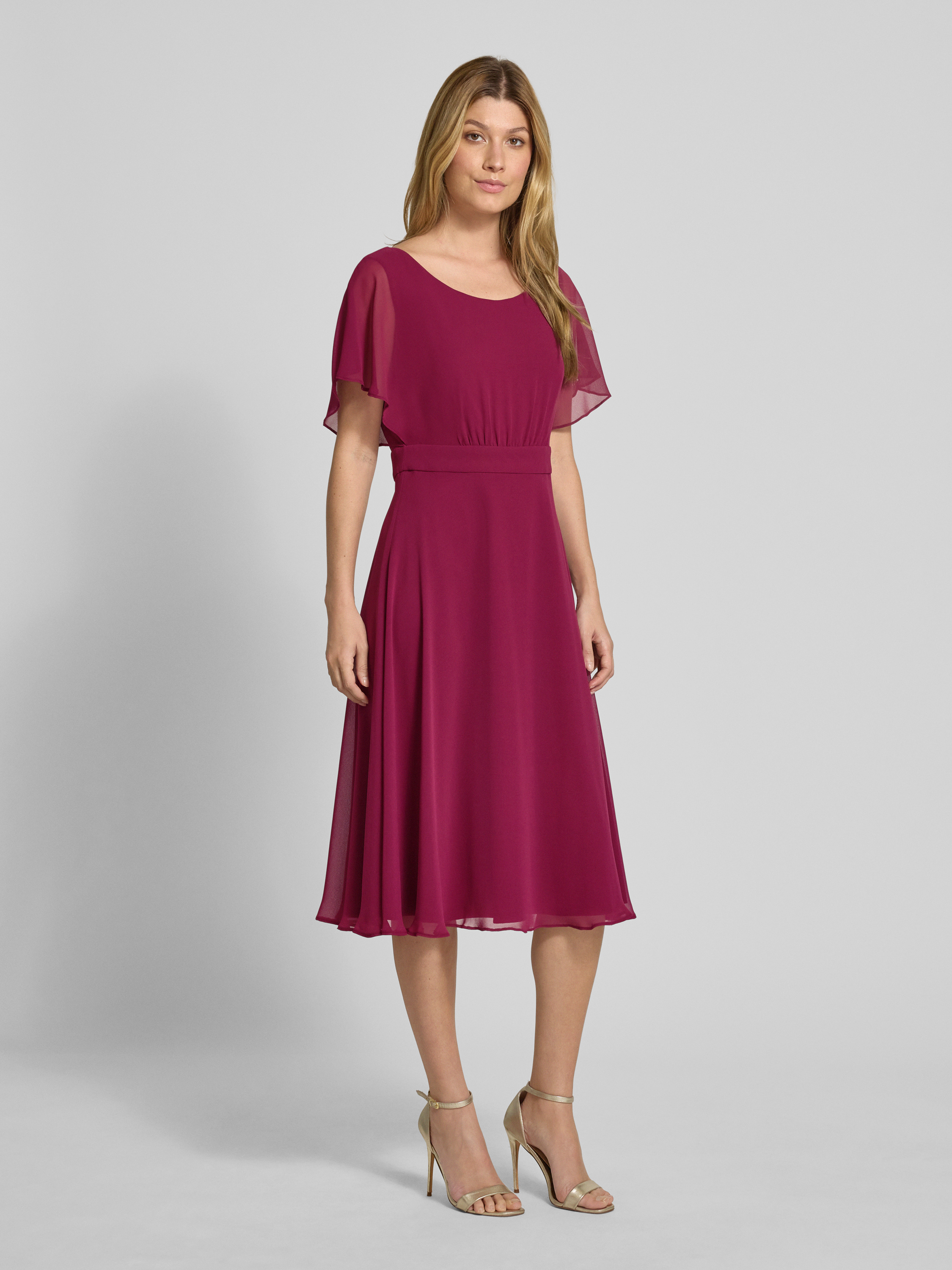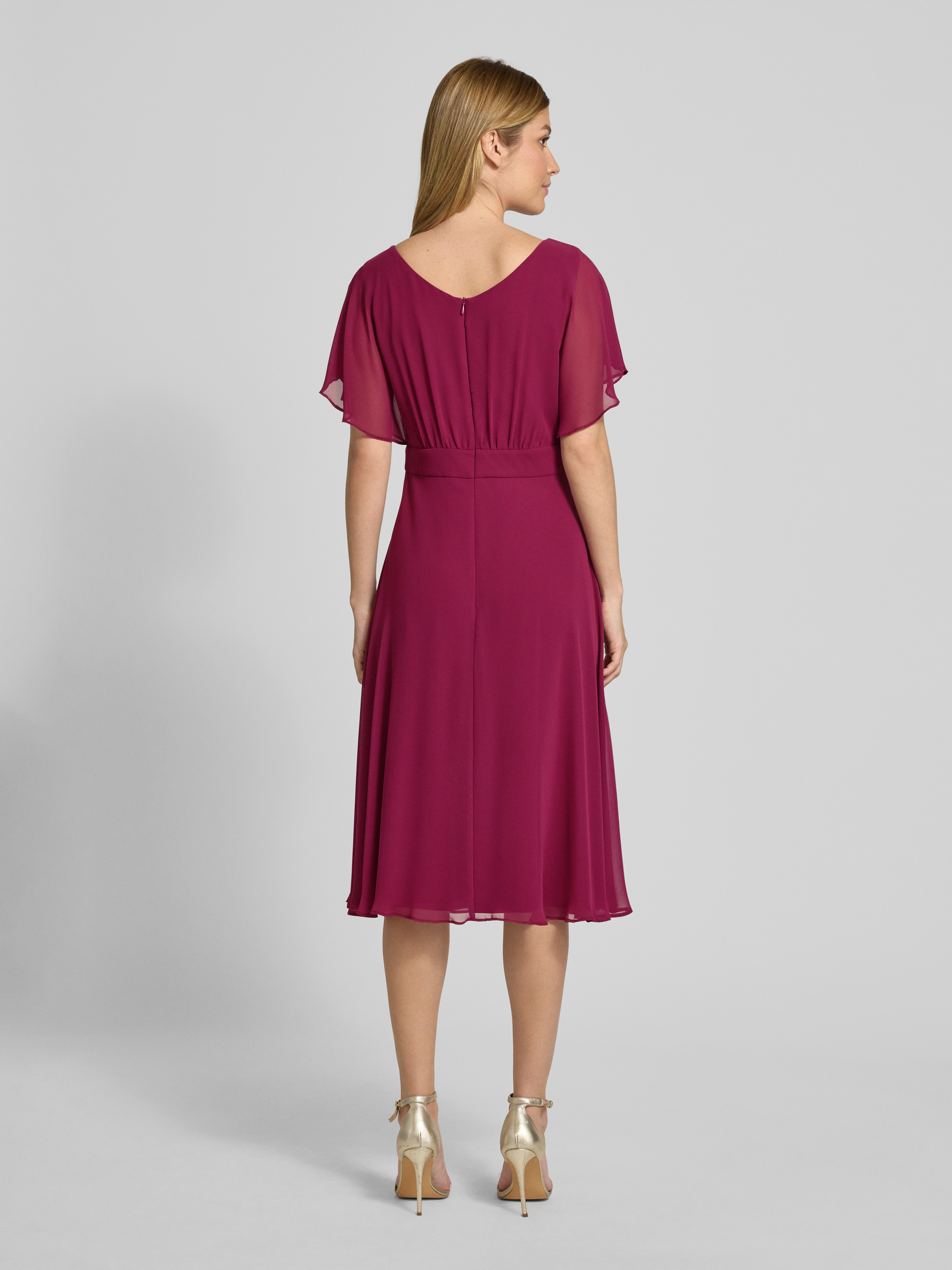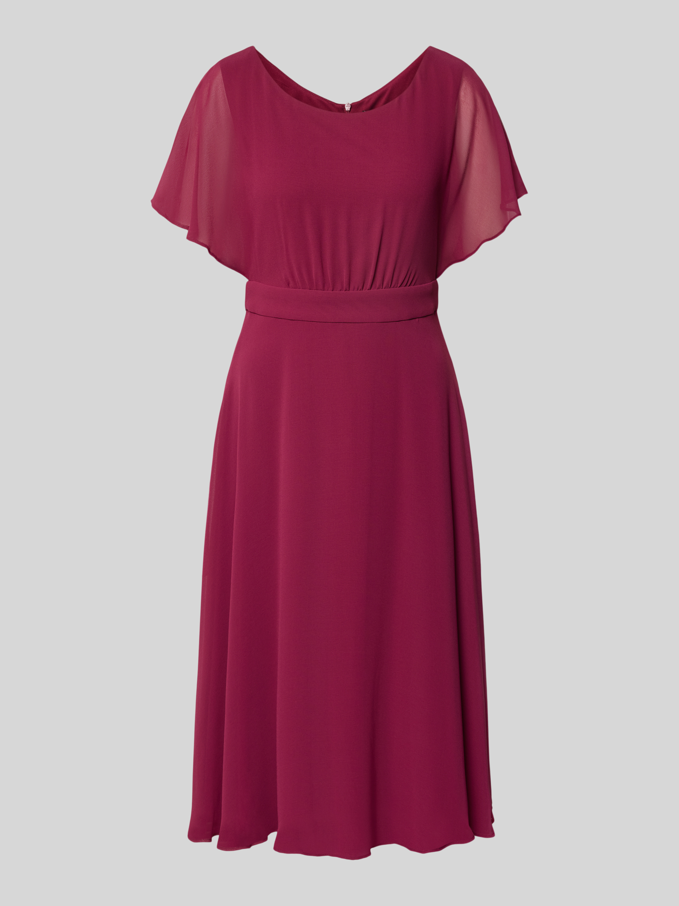 Vera MontKnielanges Cocktailkleid mit Rundhalsausschnitt in bordeaux