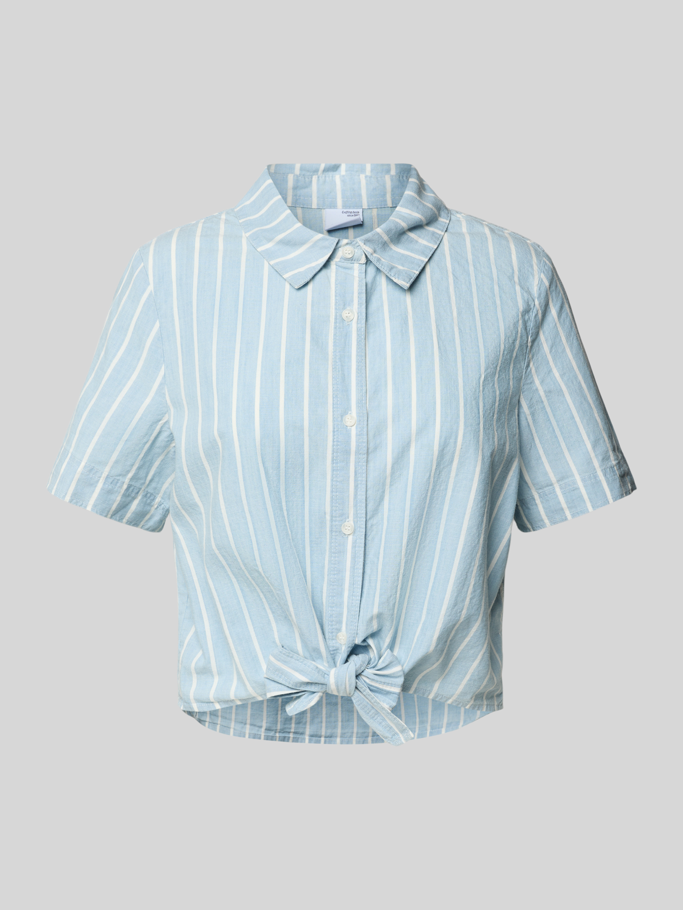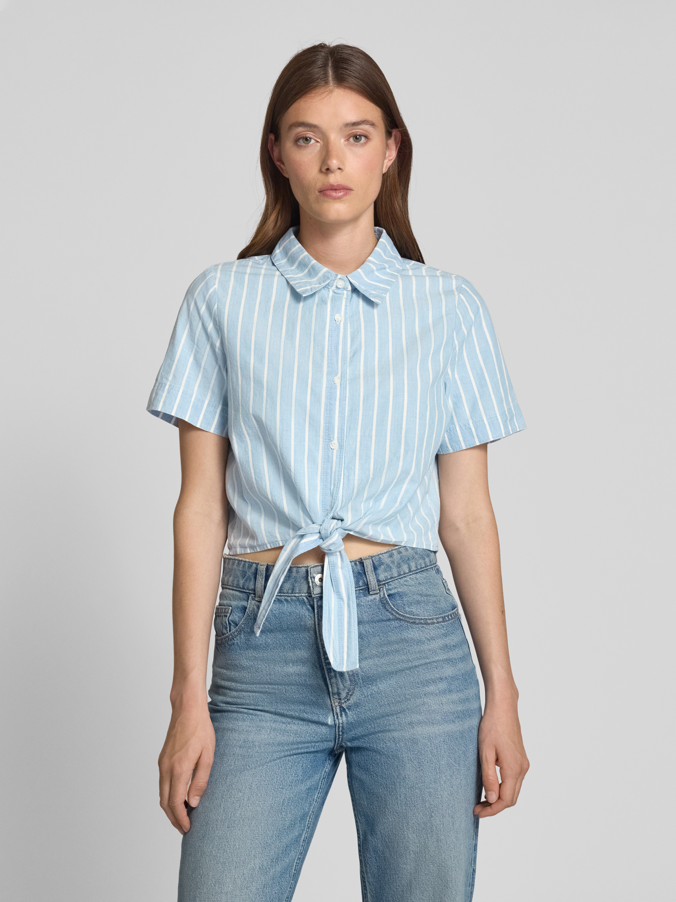Vero ModaCropped Hemdbluse aus reiner Baumwolle Modell 'LEONIES' in jeansblau