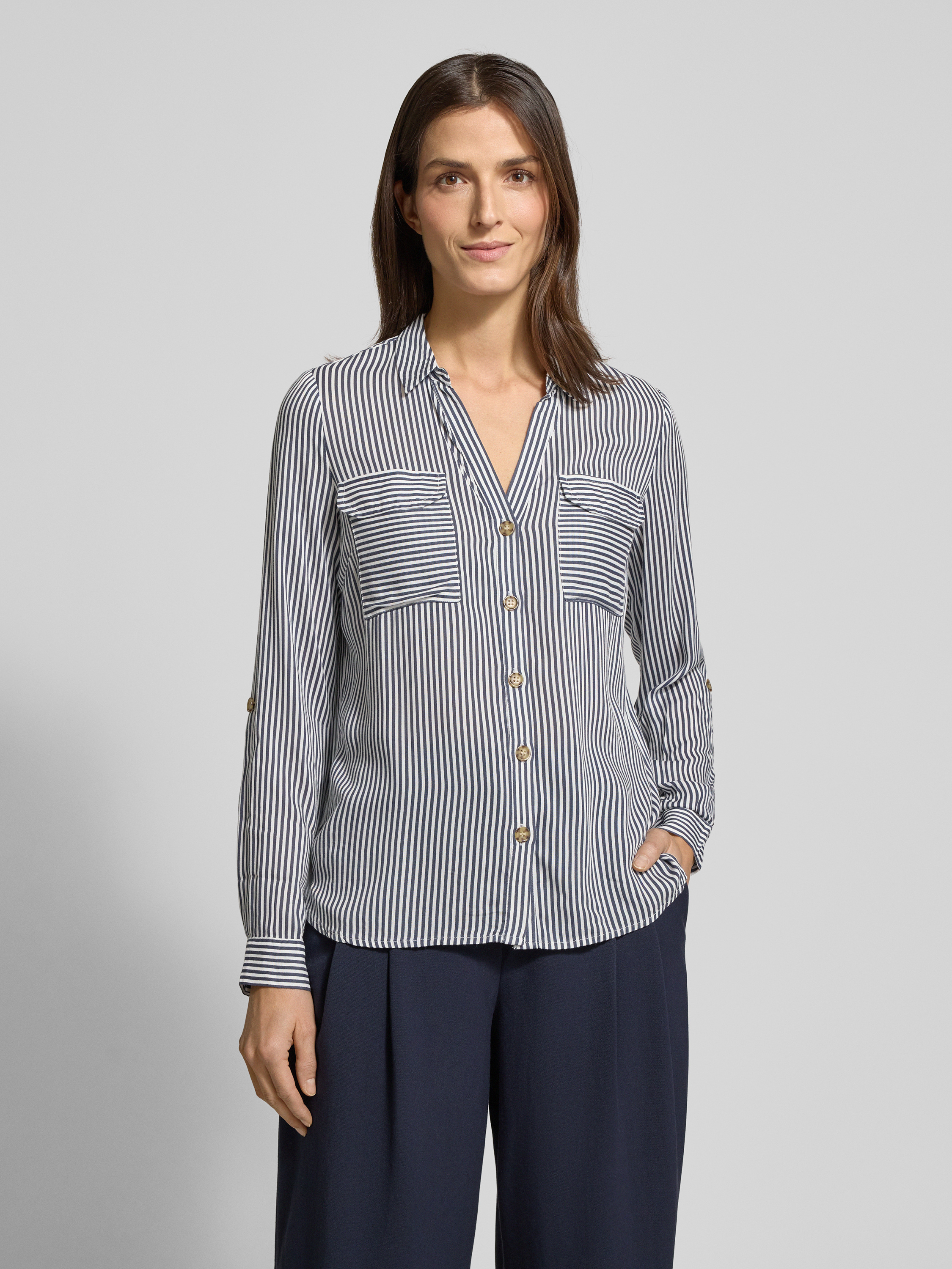 Vero ModaHemdbluse mit aufgesetzten Brustpattentaschen Modell 'BUMPY' in marine
