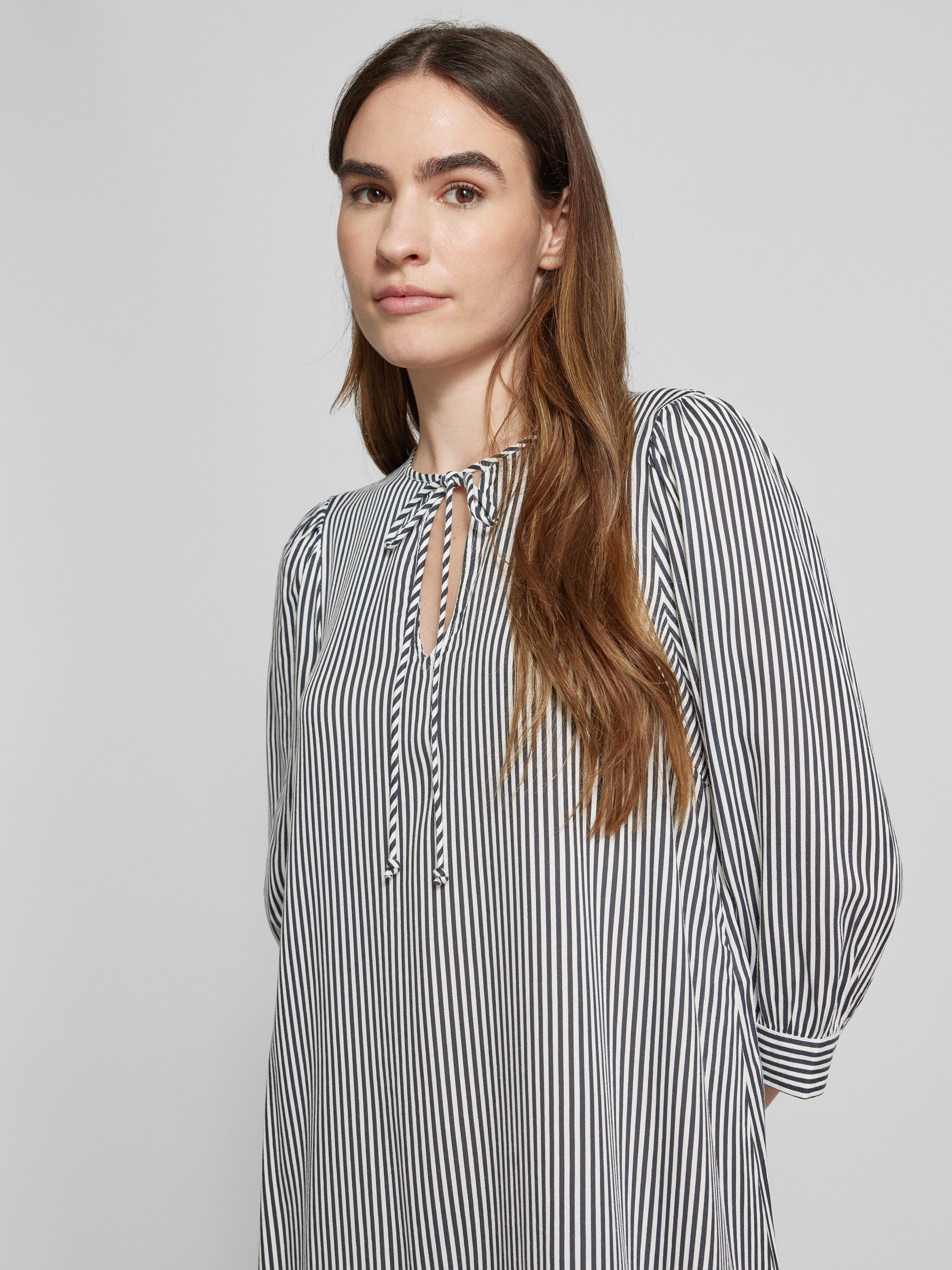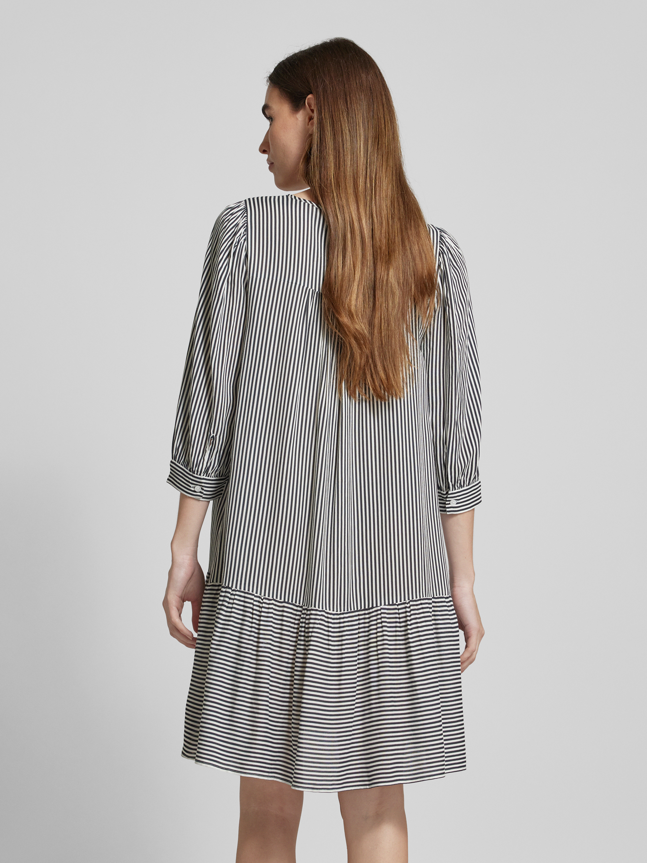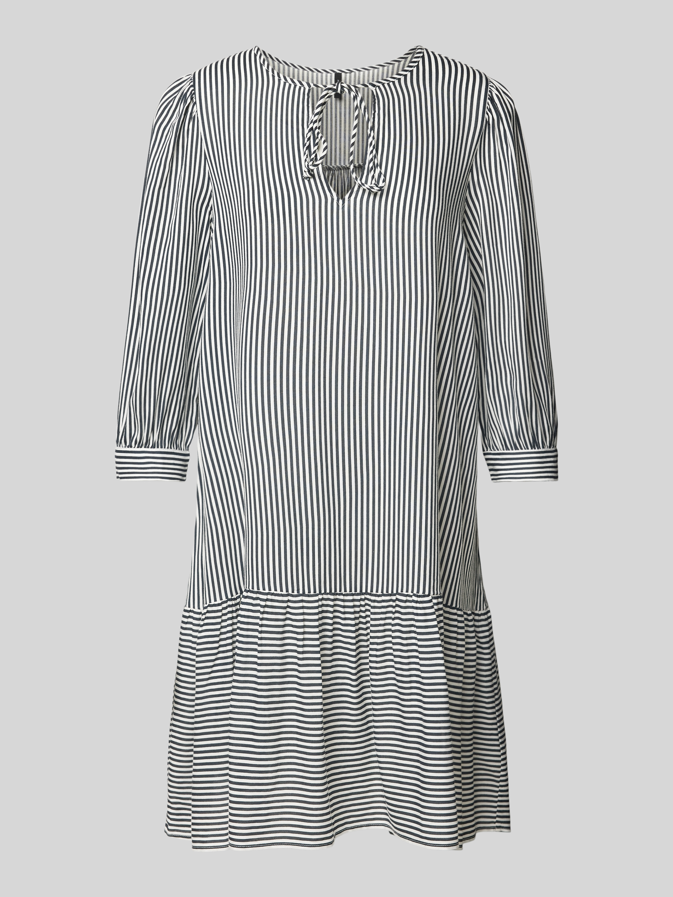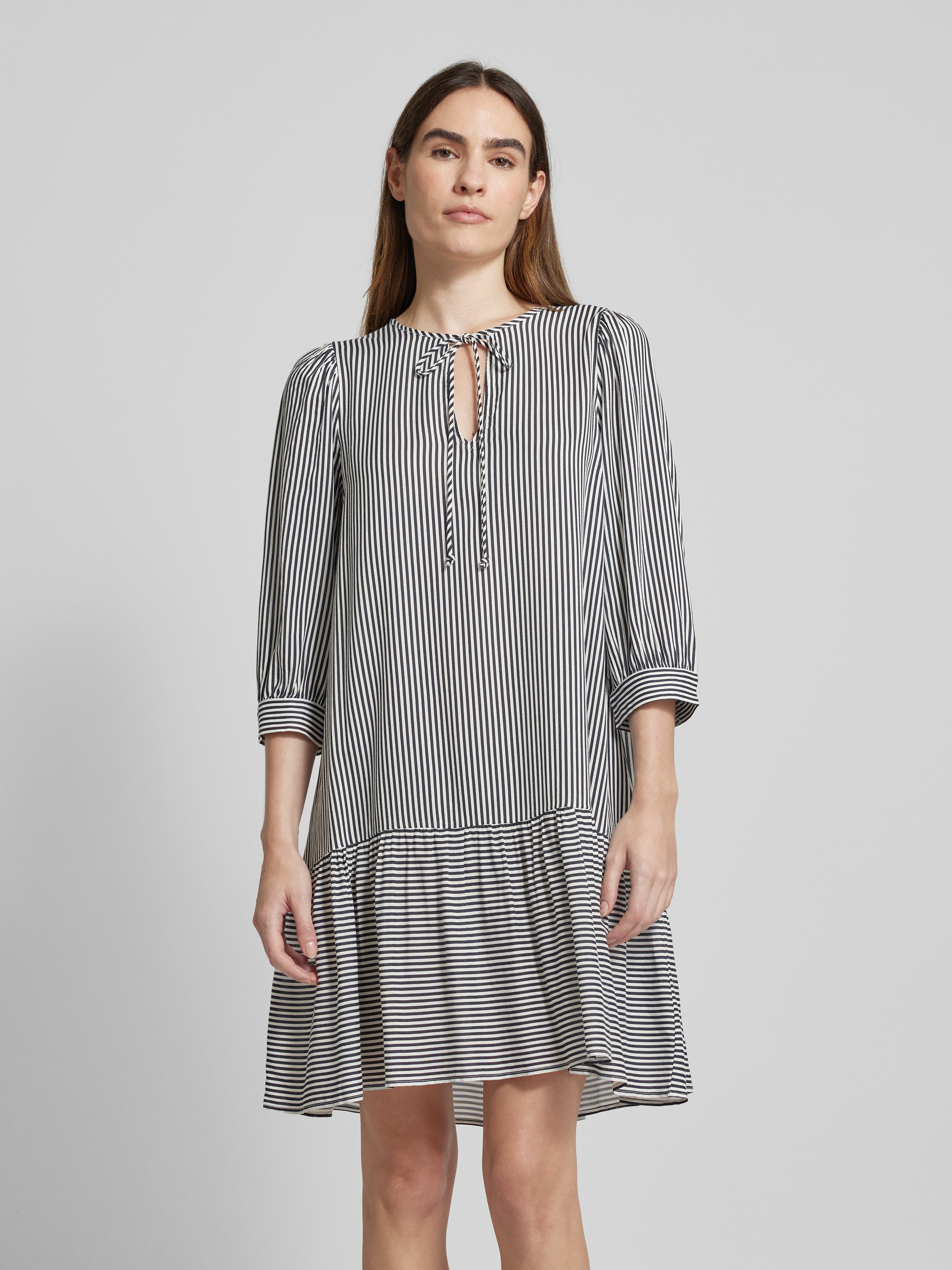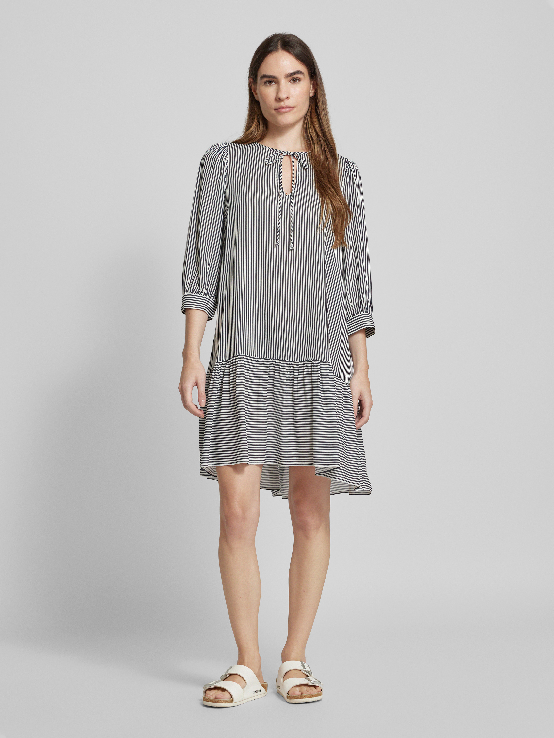 Das Damenkleid von Vero Moda wirkt durch seine gestreifte Optik und die figurumspielende Passform angenehm lässig, während der V-Ausschnitt und dezente Rüschen feminine Akzente setzen. Die knielange Länge eignet sich für viele Gelegenheiten und sorgt für Bewegungsfreiheit. Dank der leichten Viskose trägt sich das knielange Kleid mit V-Ausschnitt auch an wärmeren Tagen komfortabel.