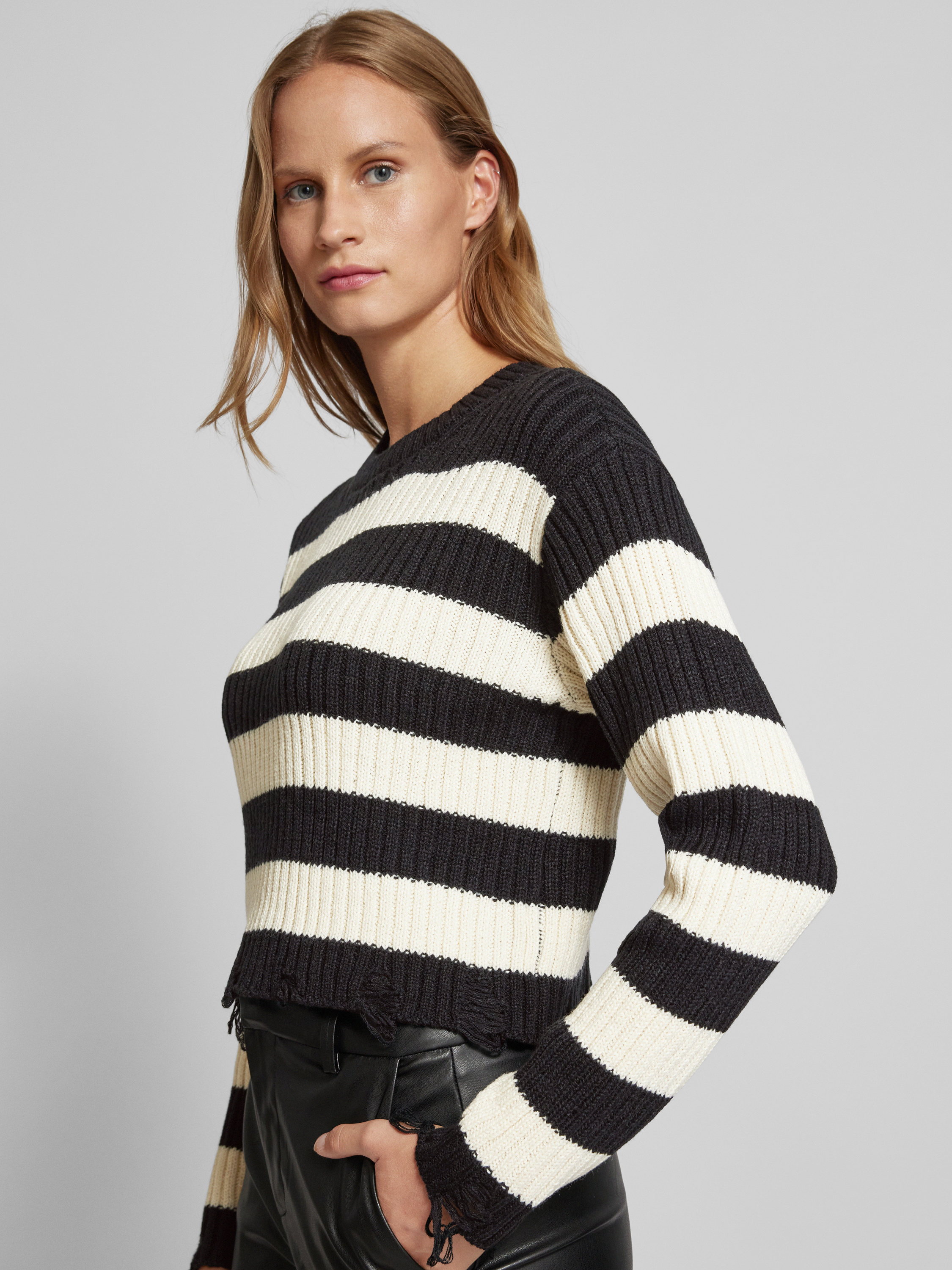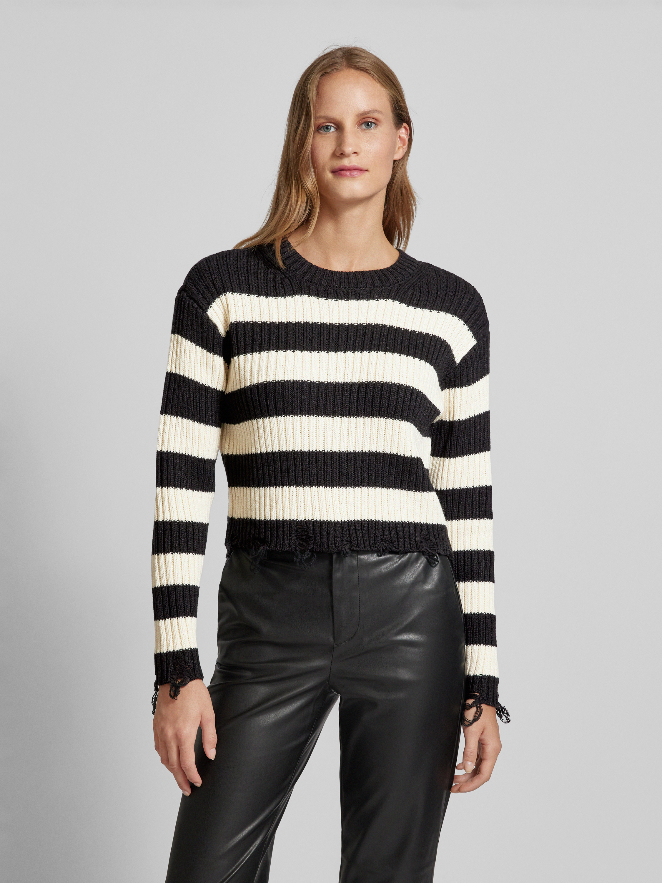 Der Langarmpullover mit Rundhalsausschnitt Modell 'MERCER' von Vero Moda kombiniert einen geraden Schnitt mit einem gestreiften Design. Der Acryl-Baumwoll-Mix sorgt für ein angenehmes Tragegefühl, während die langen Ärmel an kühleren Tagen wohltuende Wärme schenken. Ideal für vielseitige, stilvolle Outfits.