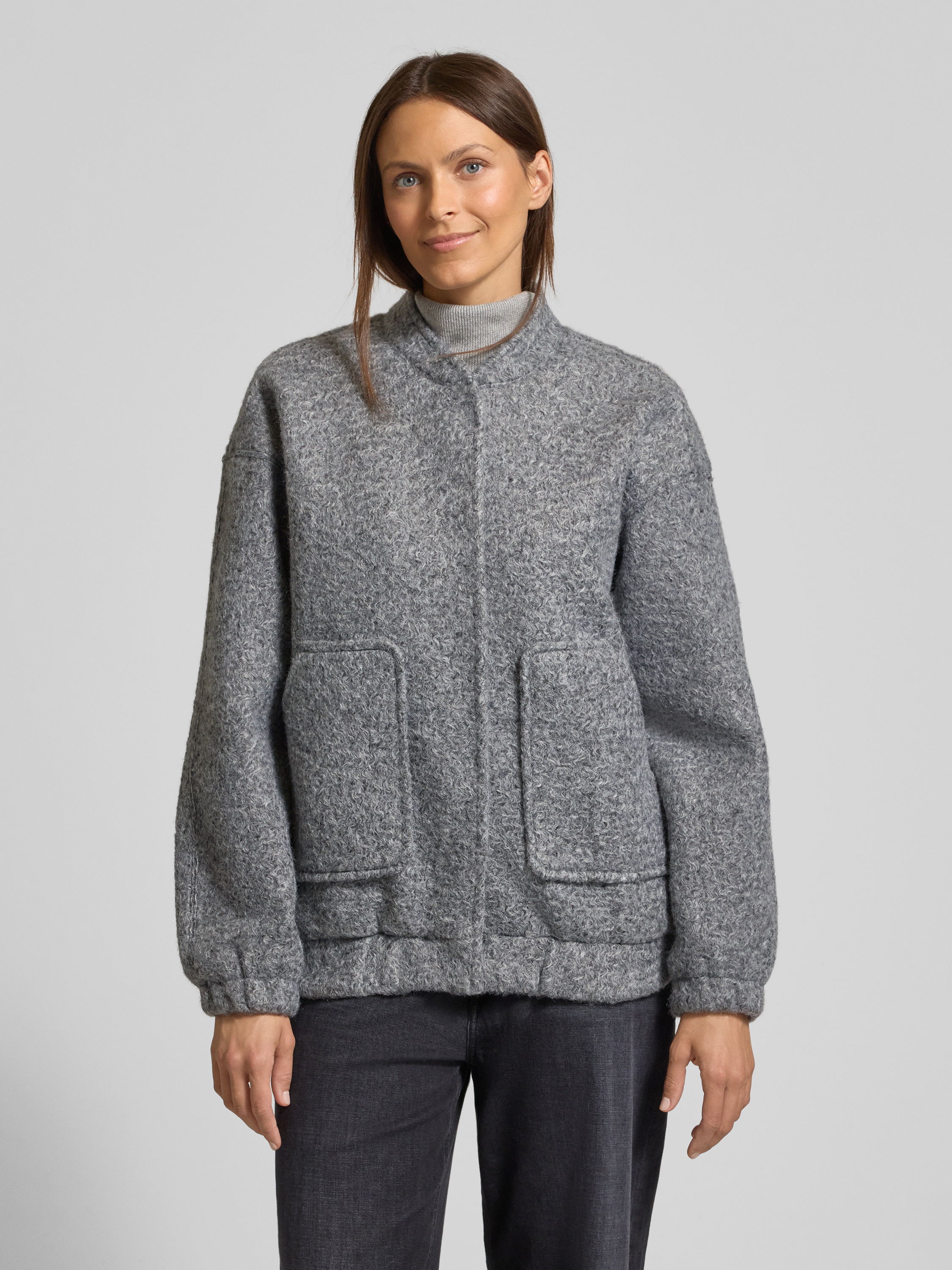 Vero ModaLoose Fit Blouson mit College-Kragen Modell 'AMBER ELITE' in mittelgrau