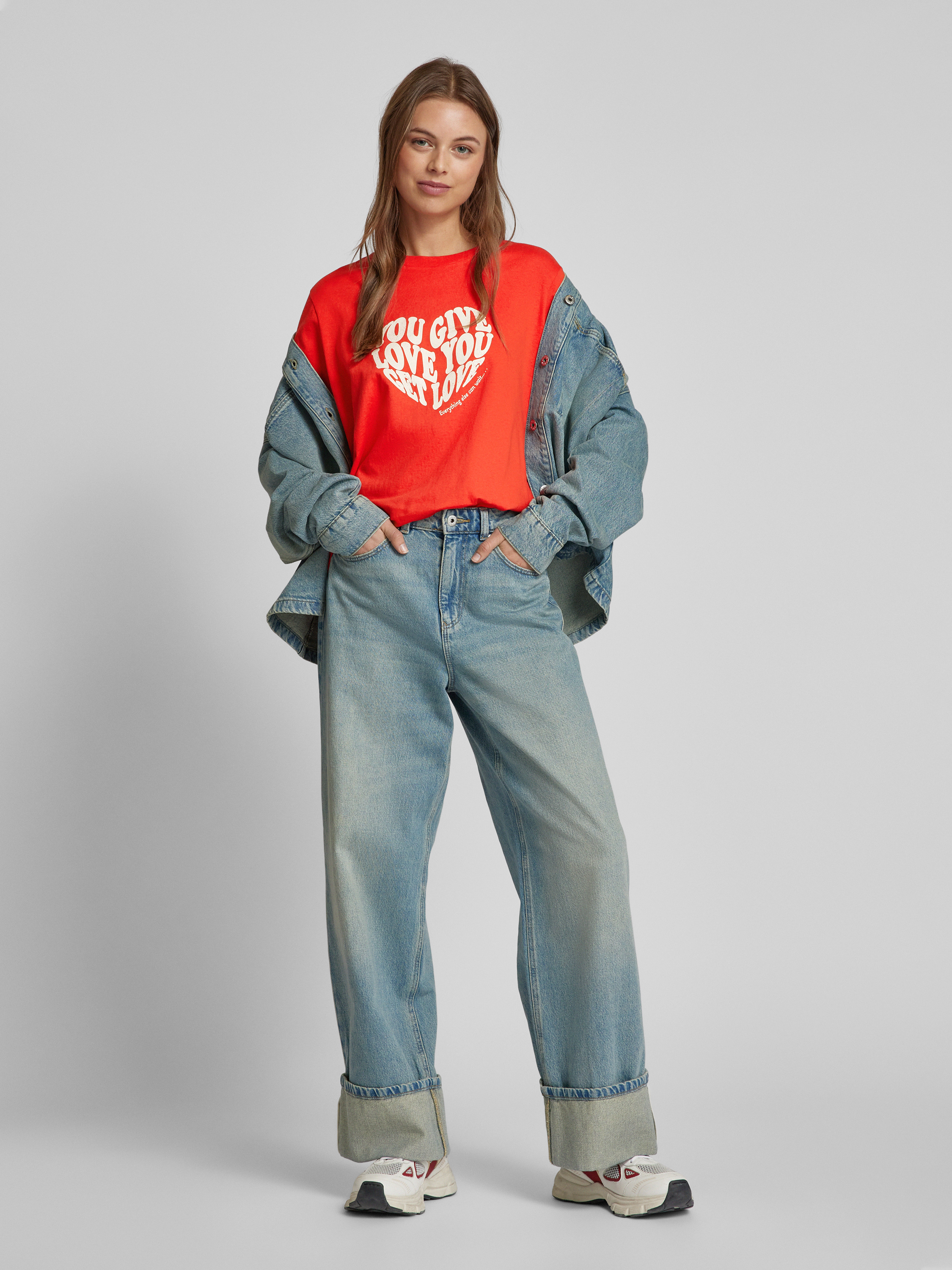Vero ModaLoose Fit T-Shirt mit Statement Print Modell 'VALERIE' in rot